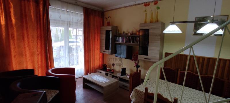 A Balatontól sétatávolságra csendes, rendezett utcában IKERFÉL nyaraló eladó!Az épület kivett hétvégi ház besorolású.Az ingatlan osztatlan közös telken, a másik féltől kerítéssel elválasztva helyezkedik el. A használati megosztásnak nincs akadálya, a másik tulajdonos beleegyezik.Az épület fűtéssel nem rendelkezik, de kémény van, így könnyedén kialakítható.A melegvíz ellátásról villanybojler gondoskodik.A ház téglából épült, palafedésű.A nyílászárók kétrétegű üveggel ellátott fémszerkezetűek.A bejáratnál nagyméretű teraszról lehet belépni az ingatlanba, ahol nappali, két hálószoba, konyha, fürdőszoba és külön wc található. Az emeleten három hálószoba (az egyik erkélyes) és egy fürdőszoba található.Az udvarban van egy garázs is, jelenleg tárolóként használják. A családi összejöveteleknek, szabadtéri sütögetéseknek kényelmes fedett kerti kiülő ad helyet.Balatonmáriafürdő a déli part egyik legkedveltebb települése köszönhetően a több kilométeres lassan mélyülő vizű partszakaszának, melyen több szabadstrand és a központi fizetős strand található.Kitűnő infrastruktúra, parti sétány, különféle üzletek teszik élvezetessé a nyaralást.Amennyiben lát fantáziát ebben az ingatlanban, kérem hívjon, nézzük meg közösen. |