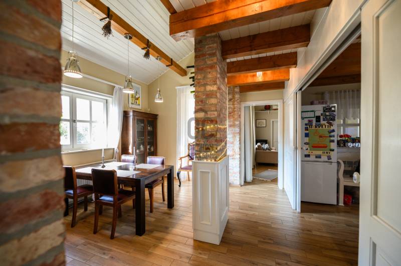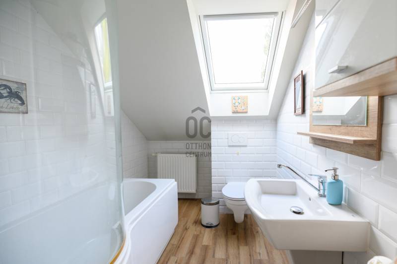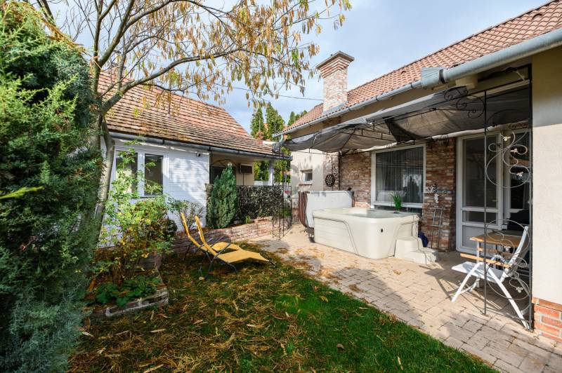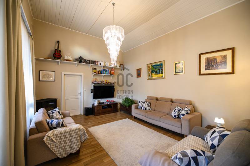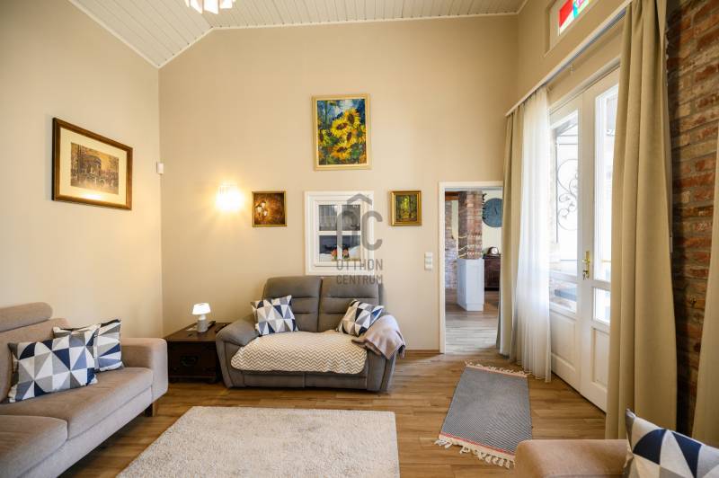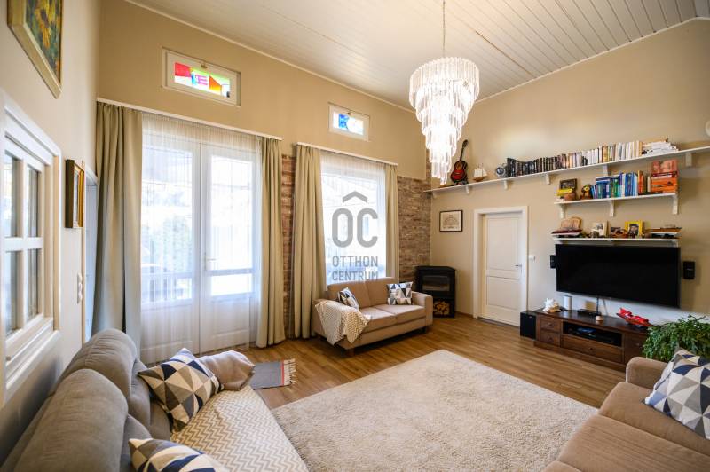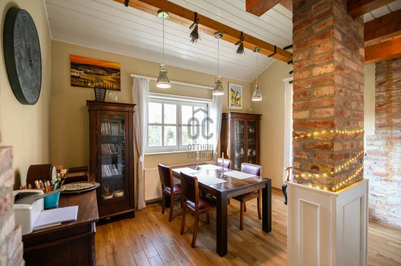Szentendre egyik legfelkapottabb és legkeresettebb környékén, a csendes Bükkös-patak szomszédságában kínálunk eladásra egy igazán különleges, használt családi házat, illetve egy kisebb házat, amely tökéletes választás lehet családosok számára. A két ingatlan összesen 205 négyzetméteren helyezkedik el, amelyhez egy 563 négyzetméteres rendezett kert tartozik, így bőséges teret biztosít a szabadidős tevékenységekhez és a családi együttlétekhez. Csendes, forgalomtól mentes utcában egy osztatlan közös telken található, amely ügyvédi használati megosztással rendelkezik.A főépületet Turi Attila építész tervezte, aki Makovecz Imre tanítványa volt. Tágas, magas belmagasságú nappalija világos és barátságos légkört teremt, amely ideális helyszín a közös programokhoz. A nappaliba, valamint az emeleti szobákban Aknay János neves festőművész színes ablakai adnak egyedi fényeket. A két házban összesen 7 szoba található, melyek között három fürdőszoba is helyet kapott, így a család minden tagja számára elegendő hely és kényelem biztosított. A modern beépített bútorok és szekrények praktikus megoldásokat kínálnak, míg a 16 négyzetméteres terasz tökéletes helyszín a reggeli kávézáshoz vagy a baráti összejövetelekhez. A kandalló és a gázfűtés, valamint a klíma garantálja az ingatlan kellemes hőmérsékletét télen és nyáron egyaránt. Az épületben központi porszívó rendszer, riasztó és kamerarendszer üzemel. A kisház 120 éves múltra tekint vissza, melyben 1 szoba, gardrób szoba, konyha, fürdőszoba és egy kisebb tetőtéri szoba található. A kellemes hangulatot fokozza a hozzá tartozó régi borospince. A környék ellátottsága kiváló, így a mindennapi szükségletek könnyedén kielégíthetők. A közeli üzletek, iskolák és óvodák mindössze néhány percnyi távolságra találhatók, ami különösen fontos lehet a családok számára. A csendes utcák és a barátságos szomszédság garantálják a biztonságos és nyugodt életkörülményeket. A közlekedés is kedvező, hiszen a helyi buszjáratok gyorsan elérhetők, így Szentendre belvárosa és a főváros is könnyen megközelíthető. A kertben található jakuzzi és a kerti tároló további lehetőségeket kínál a szabadidő eltöltésére, míg a nagy belmagasságú helyiségek légies érzést kölcsönöznek az otthonának. Ez az ingatlan nem csupán egy ház, hanem egy otthon, ahol a család minden tagja megtalálhatja a maga helyét és kényelmét. Ha Ön is szeretne egy exkluzív, világos és tágas otthont, ahol a családja biztonságban és boldogan élhet, ne habozzon kapcsolatba lépni velünk. Kérdéseivel és érdeklődésével bizalommal fordulhat hozzánk, hiszen célunk, hogy segítsünk Önnek megtalálni álmai otthonát. |
