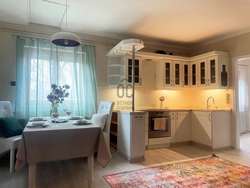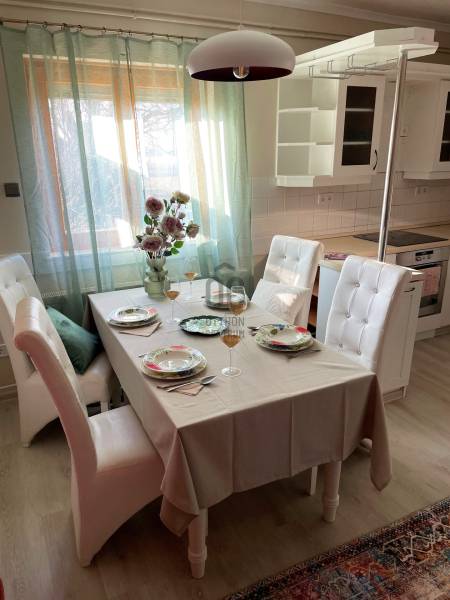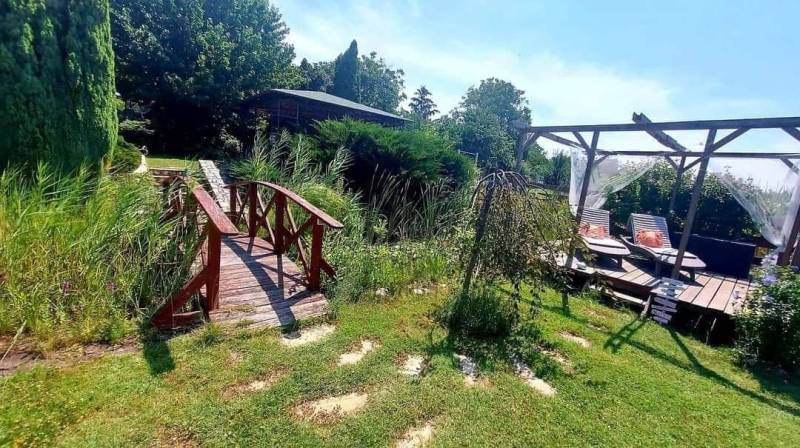 Ritka lehetőség! Balatonlelle-Rádpusztán kínálunk megvételre paradicsomi környezetben, három hálószobás felújított családi házat.Az ingatlan 2061 nm-es telken fekszik. Az épület belső hasznos alapterülete 81 nm, melyhez egy déli tájolású fedett, fákkal körülölelt, hangulatos 26 nm-es terasz kapcsolódik.Az ingatlanba belépve az előtérbe jutunk, innen tárul elénk a nappali-konyha étkező hármasa. Ebből a térből nyilik a három hálószoba, valamint a fürdőszoba-wc.Az ingatlan letisztult, mégis vidám-romantikus hangulatot áraszt.A házba korszerű szigetelt fa és műanyag nyílászárók kerültek beépítésre.Az otthon melegéről tartályos gázszolgáltatás segítségével gázcirkó kazán, valamint kandalló gondoskodik.A melegvizet villanybojler szolgáltatja.Az épület alatt egy 8nm-es tökéletes állapotú pincehelyiség található.A kertben egy 13nm-es fa tároló teszi lehetővé a szerszámok és kinti bútorok megóvását.A telken szemetgyönyörködtető környezetben, halastó, két szaletli és egy medence biztosítja a gondtalan kikapcsolódást.Balatonlelle a déli part egyik központi települése. Bevásárlási lehetőségben, szolgáltatátókban gazdag város. Aldi. Lidl, Spar, Rossmann, DM, Diego, a környék legjobb cukrászdái, minőségi éttermek, kikötő... gondoskodnak az élhető mindennapokról. Rádpuszta közigazgatásilag Balatonlelléhez tartozik, de mégis szeparáltan, természetközeli környezetben helyezkedik el, csendre és nyugalomra vágyók kedvelt célpontja.Amennyiben kérdése merülne fel az ingatlannal kapcsolatban vagy szeretné azt megtekinteni, kérem keressen amegadott elérhetőségek egyikén! |