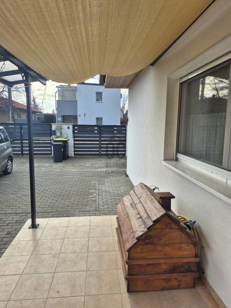 Ingatlan leirás Siófok-Szabadi fürdőEladóvá vált Siófok-Szabadi fürdő csendes, rendezett utcájában egy 3 éve épült, modern két bejárattal rendelkező, két önálló egységből álló családi ház, mindössze 800méterre a Balaton partjától.Ingatlan jellemzői:Telek mérete:350m2 , összes hasznos alapterület 85m2 , fedett tereszok, eggyenként 8 m2 Mindkét lakóegység saját fedett terasszal rendelkezik.Az udvarra két kocsival lehet beálni.Lakóegységek elrendezése1. Lakóegység / Külön bejárat /-nappali amerikai konyhával -szoba-fürdő wc2. Lakóegység/ Külön bejárat /-amerikai konyhás nappali -2 szoba -fürdőszobaMűszaki tartalom , extrák Az ingatlan korszerű , kimagasló energetikai felszereltséggel 5 kw-os napelemes rendszernek köszönhetően gyakorlatilag nullás villany rezsivel működik 3x16 A , elektromos kapuval felszerelt .Novopanel fütés , és klíma hütés van az ingatlanban..A falak 15cm grafit szigetelést kaptak , a tetőn pedig 30cm üveggyapot van. Minden ablak redőnyel és szitahálóval van , valamint három rétegü üvegezést kapott. Kérem keressen ha felkeltette érdeklődését ! |