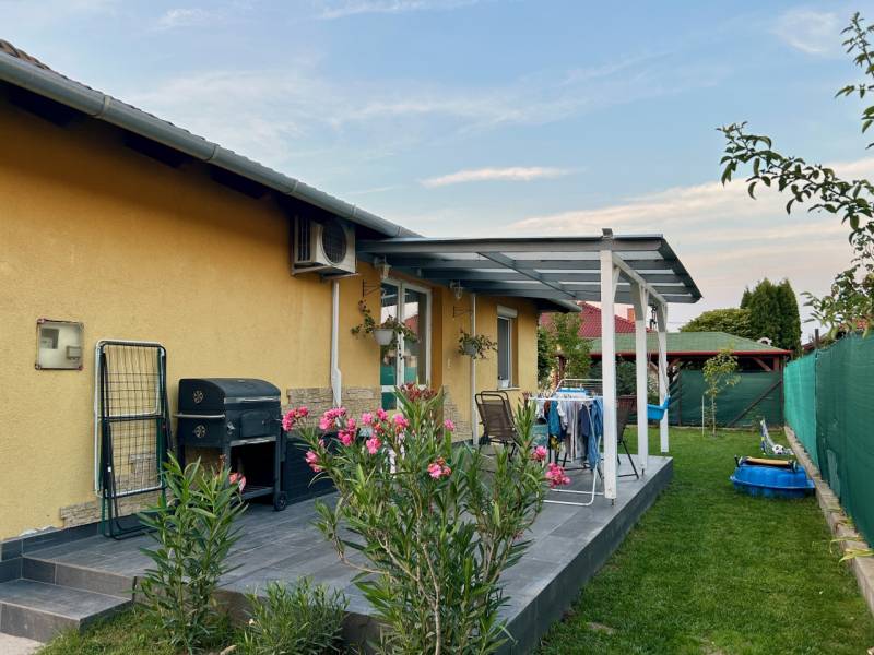 Csak a mi irodánk kínálatában elérhető ingatlan!Halásztelken újszerű és igényes ingatlanok szomszédságában, csendes kertvárosi övezetben, eladásra kínálok egy 2009-ben épült és 2023-ban esztétikailag felújított EGYSZINTES CSALÁDI HÁZAT.Az telken kettő egyszintes különálló ingatlan található, egymástól teljesen szeparált bejáratokkal és telekrészekkel.Az eladó ingatlan az utcáról nézve a telek hátsó részén helyezkedik el.Az ikerházi lakás nettó hasznos alapterülete 78,77 m² , jelenlegi kialakítása szerint amerikai konyhás nappali-étkezővel, 3 db. hálószoba, fürdőszoba, WC, terasz valamint egy kamra helyiséggel rendelkezik.Az ingatlan jogilag külön albetéttel (helyrajzi számmal) és társasházi alapító okirattal rendelkezik.Szerkezetileg 30-as téglából épült, 5 cm dryvit szigeteléssel, fűtése és a melegvíz új gáz kombi cirkóról megoldott, műanyag 2 rétegű hő és hangszigetelt nyílászárók.További információk: 1 db. inverteres Daikin klíma, redőny és szúnyoghálóval kiépítve, öntöző rendszer, fedett terasz, gépesített konyhával (az ár tartalmazza).Saját telekrésze 445 m² amely szépen parkosított, 3 db. kocsibeállási lehetőséggel, a kertben található egy kisház is amely kb. 5 m²-es.Tájolása: D-K-i, méretek és elrendezés az alaprajzon látható.Tömegközlekedés: kb. 10-12 perces sétára.Az ingatlan tehermentes, várható birtokba adás az adásvétel megkötésének napjától számított minimum 90 nap.Amennyiben Önnek a vásárláshoz szüksége lenne hitelre (OTTHON START), babaváró kölcsönre, stb., kezdeményezheti a kapcsolatfelvételt bankfüggetlen hitelügyintézőinkkel, teljesen DÍJMENTESEN.Az ingatlan részletes ismertetése és bemutatása, előre egyeztetett időpontban lehetséges, akár hétvégén is.Bővebb információkkal kapcsolatban várom jelentkezését, keressen bizalommal a hét minden napján! |