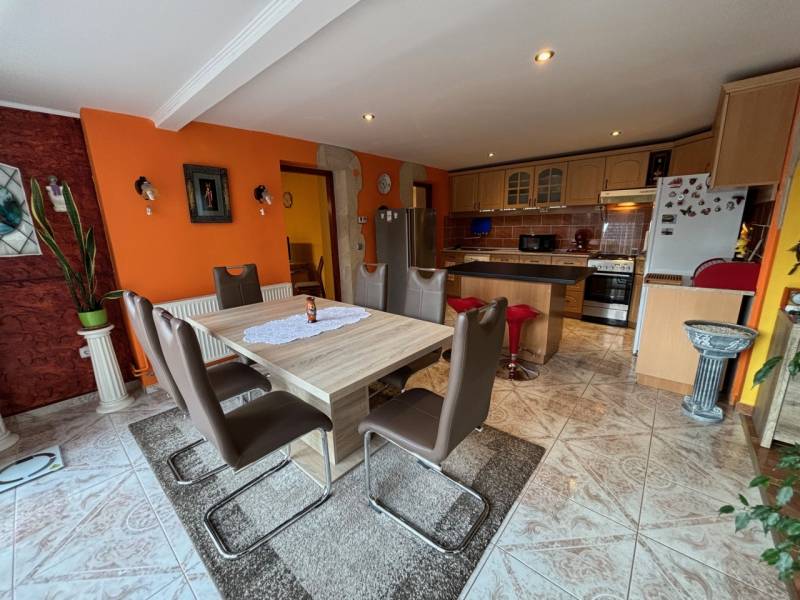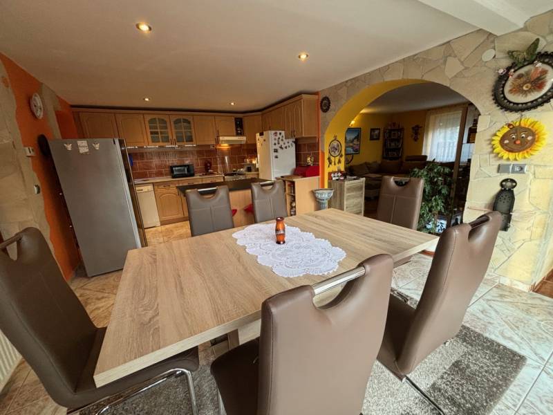 Bana csendes mellékutcájában nappali + 3 szobás családi ház eladó.Az ingatlan az 50-es években épült vályog falazattal, majd a 2000-es évek elején tégla falazattal kibővítették.Nyílászárói korszerű műanyagok, az ablakok redőnnyel és szúnyoghálóval vannak felszerelve.A fűtést gázkazán biztosítja lapradiátorokon keresztül, valamint a nappaliban egy cserépkályha is helyet kapott.A ház mellett kétbeállós garázs, nyárikonyha, kerti faház, és fatároló helyezkedik el . Az udvar egy része térkövezett, egy része parkosított, a kertben pedig rengeteg termő gyümölcsfa található.Az 1.277 nm nagyságú telek 2 utcáról is megközelíthető, körbe kerített.Az udvarra elektromos kapun keresztül lehet bejutni, az épületet riasztórendszer védi.Az ingatlan teljes elektromos hálózata felújításra került, új mérőóra, új biztosítékok és védelmi relé beépítés történt. Áramellátás 32 A.Ha jó állapotú lakást és gondozott, rendezett telket keres megfizethető áron, ezt az ingatlant mindenképp tekintse meg személyesen! |