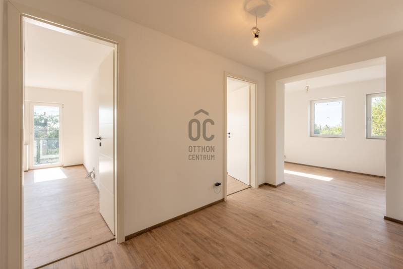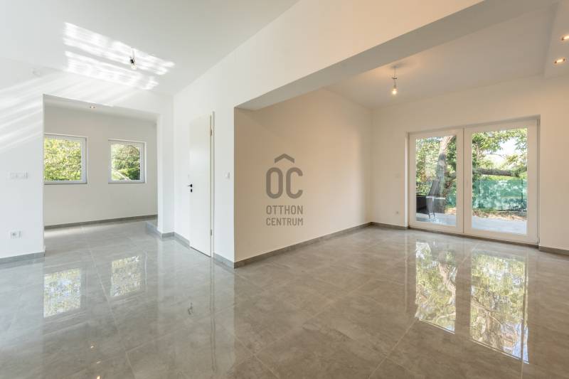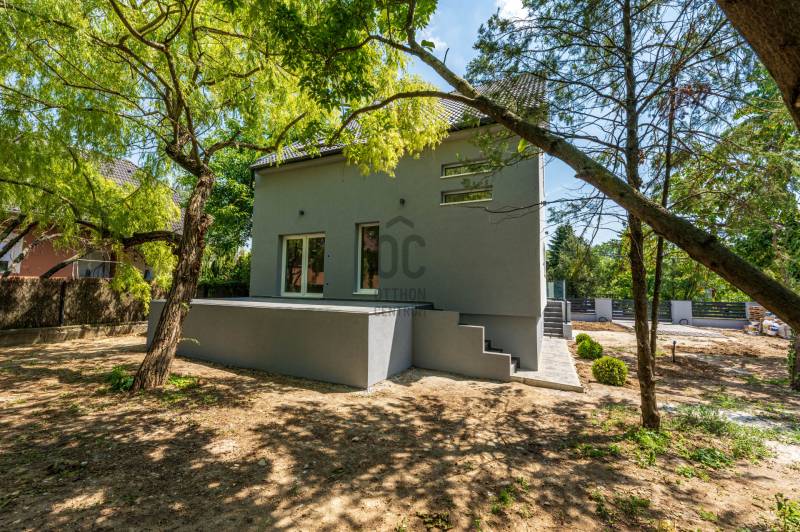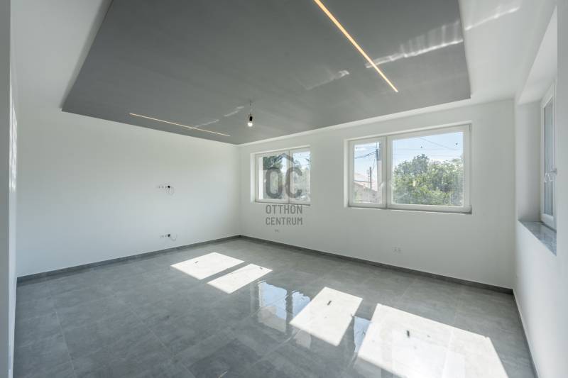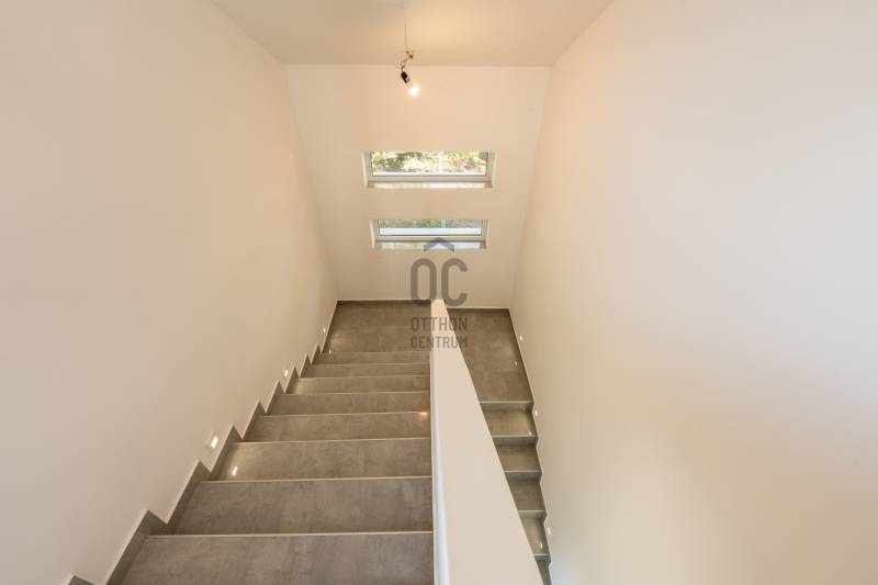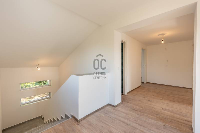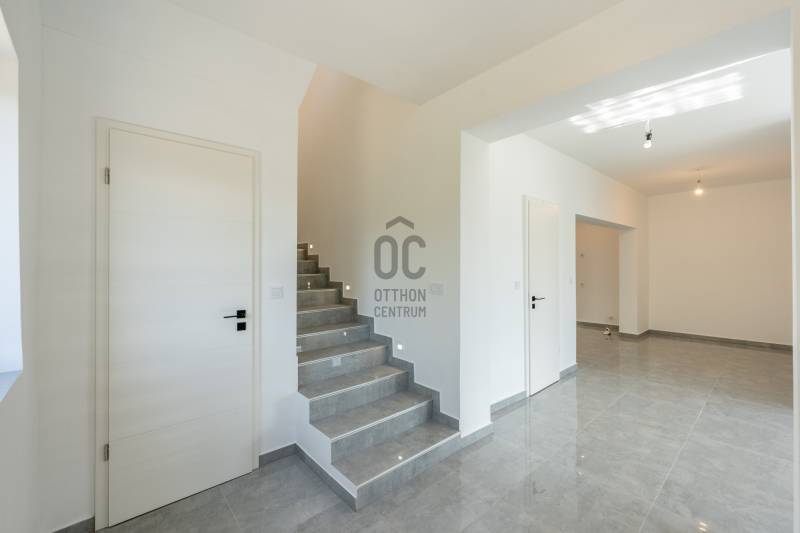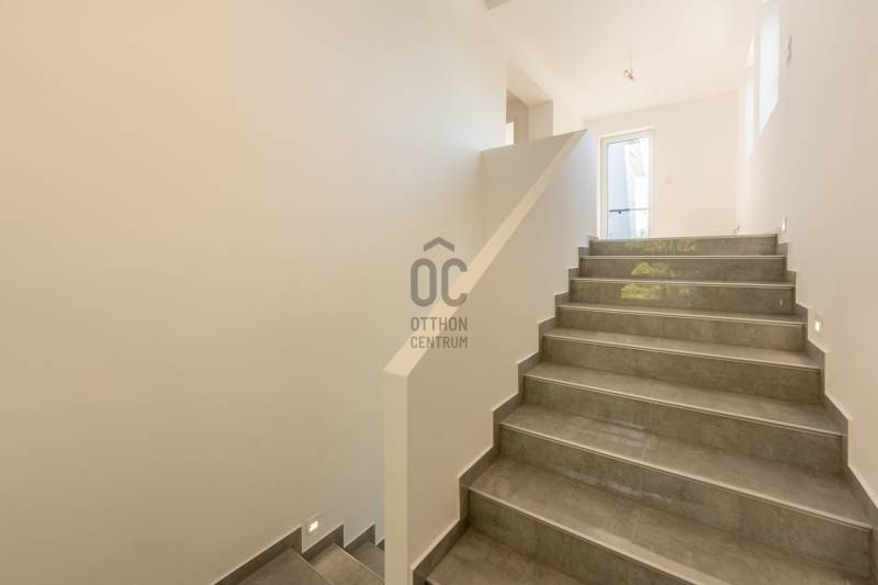 XVII. kerület egyik csendes, zöldövezeti mellékutcájában eladó egy napfényes, 195 m²-es, 671 m²-es telken álló, 4 szobás, 2 fürdőszobás családi ház garázzsal, terasszal és erkélyekkel.Az épület külső homlokzata elkészült, a belső terei kialakításra kerültek. Az ingatlan ára nem tartalmazza a konyhabútor árát. Főbb jellemzők:Modern padlófűtés Ariston gázkazánnal200 literes melegvíz-tárolóMinden helyiségben klíma kiállásElektromos redőny előkészítésRiasztórendszer bekötési lehetőség2 elektromos garázskapu + 2 elektromos kertkapu előkészítésHelyiségek elosztása:Földszint: tágas nappali (30 m²), amerikai konyha-étkező (25 m²), zuhanyzós fürdőszoba, közlekedő, tároló, 25 m²-es teraszEmelet: 3 hálószoba, kádas fürdőszoba, gardrób, külön teraszAlsó szint: garázs, kazánház, tárolókA környék csendes, rendezett, családi házakkal beépített. Buszmegálló (97/E, 162, 197, 262, 990-es járatok) 650 méterre találhatók (9 perc séta), iskola, óvoda, orvosi rendelő, gyógyszertár, bevásárlási lehetőség szintén rövid idő alatt elérhetők.Ez az ingatlan ideális választás azoknak, akik szeretnének egy csendes, zöldövezeti környezetben élni, de mégis közel maradni a városhoz.Egyedi igényekre szabott lakáshitelekkel állunk rendelkezésére.Bankfüggetlen Hitelcentrumunk az országban elérhető összes bank és hitelintézet ajánlatát versenyezteti az Ön számára díjmentesen.Munkatársaink nagy szakmai tapasztalattal, teljes körű CSOK PLUSZ és OTTHON START PROGRAM ügyintézéssel várják Önt előre egyeztetett időpontban akár a normál munkaidő után is. |