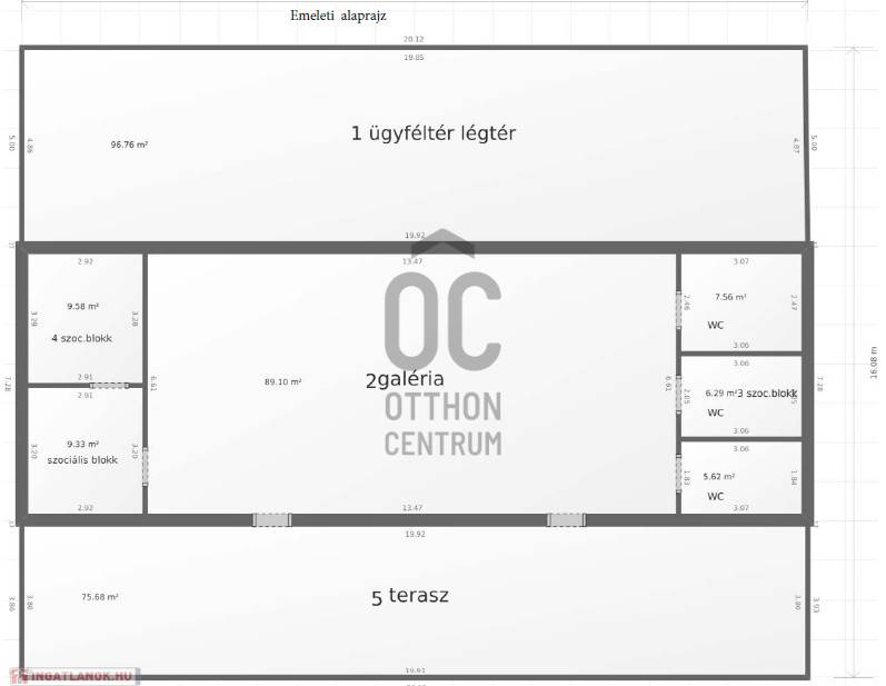 Az ingatlan elhelyezkedéseAz ingatlan Kalocsa város központjában helyezkedik el a Hunyadi János utcában. Az ingatlan földszintje a Hunyadi utcára néz, míg emelete és terasza a Negyvennyolcasok terére. Közvetlen környezetében intézményi, kereskedelmi és szolgáltató létesítmények találhatók. A környező házakban üzletek, szolgáltató egységek működnek, melyek a szépen felújított szökőkutakkal, szobrokkal díszített térről érhetők el. Megközelíthetősége autóval és tömegközlekedéssel is egyaránt jó, buszmegállók mintegy 100 méterre elérhetők. Ingatlan bemutatásaAlapterület: 343 m²Tulajdoni viszonyok: 1/1Megnevezés a tulajdoni lapon: üzletA társasház az 1900-as évek első felében épült. Jelenleg üzletsorként működik. Néhány évvel ezelőtt Alexandra könyvesboltként működött, de jelenleg használaton kívül áll. Az épület téglalap alaprajzú, földszint + emelet/galéria szintosztású, a zártsorú beépítés utolsó épülete. Az üzlethelyiség két szintes, melyből az emeleti szint valójában galéria. Bejárata a tér és a Hunyadi utca közötti parkolóból, átjáróból nyílik. Kirakatai a tér felé néznek. Belső tere a földszinten nagy ügyféltér, valamint szociális rész és gépház. Az emeleten galériaszint kapott helyet szociális blokkokkal és egy tér felé néző és nyíló terasszal. Az épület szerkezete hagyományos, szilárd alapon tégla felmenő falazat, faanyagú födémekkel. A tető fa anyagú magastető, cserép héjalással. Homlokzata vakolt, kőporos dörzsölésű, nyílászárói fa szerkezetűek. Az ingatlan kisebb vakolat és lábazati hibákkal rendelkezik. Az ingatlan összközművesEladási ár: 64.000.000Ft + Áfa |