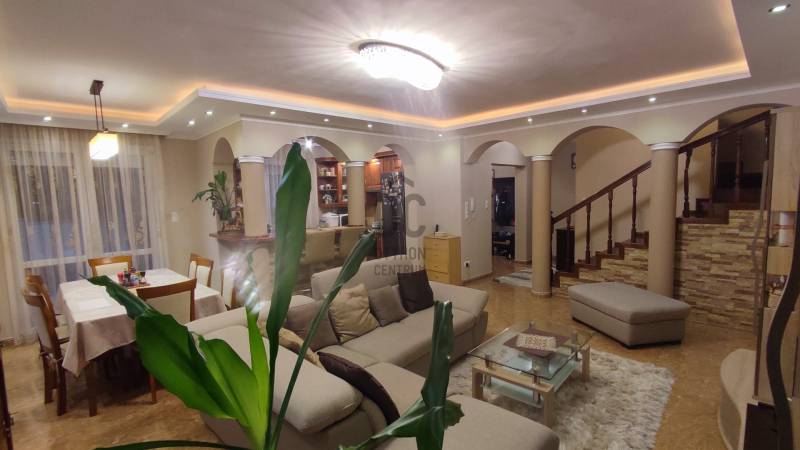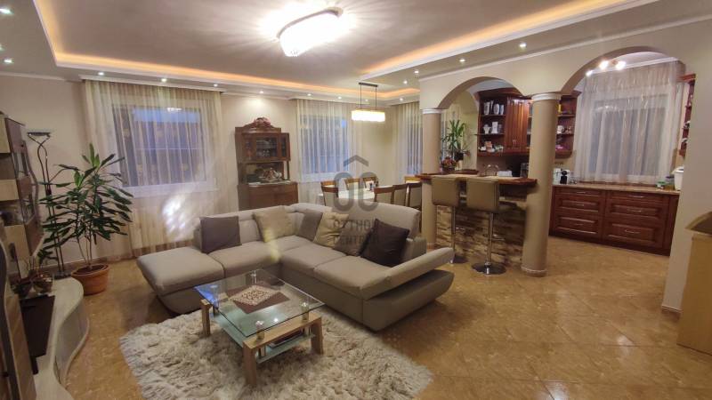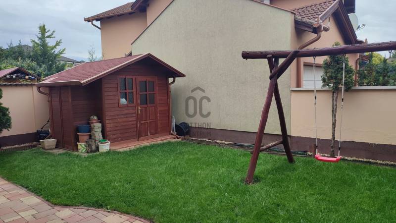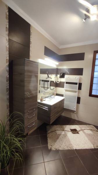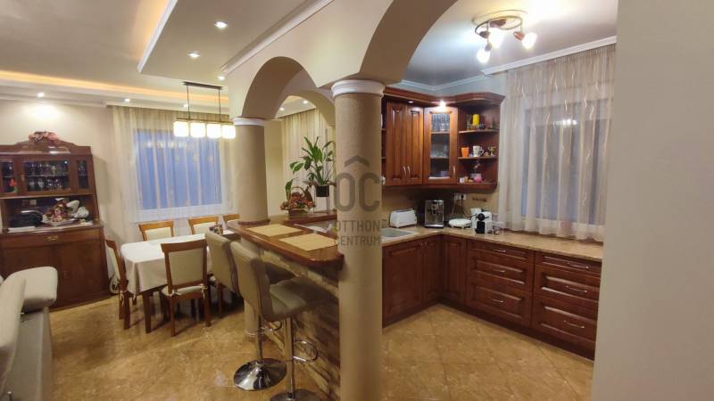 Eladó Debrecen egyik legfelkapottabb környékén, Úrrétjén ez a lenyűgöző, 2009. évben épült, 2 szintes, szigetelt, kiváló állapotú, saroktelken elhelyezkedő ingatlan, amely tökéletes választás lehet családok számára. Itt a modern életstílus találkozik a nyugalommal és a természet közelségével. Az ingatlan egy 203 nm alapterületű családi ház, amelyből 170,5 nm a lakórész, 32,5 nm pedig gépkocsitároló. A tégla építésű ház stabil beton alapra épült, a homlokzatra 10 cm-es Nikecell szigetelés került. A ház egy 436 nm-es telken helyezkedik el és minden igényt kielégítő életteret biztosít. Az ingatlanban öt tágas szoba található, amelyek közül a nappali különösen figyelemre méltó, hiszen világos, napfényes terével, valamint LED hangulatvilágítással várja új lakóit. A három fürdőszoba kényelmet és praktikus megoldásokat kínál, így a család minden tagja számára elegendő hely áll rendelkezésre. A ház fűtése klímával, valamint gáz cirkó rendszerrel működik radiátoros hőleadókkal és a járólapos helyiségekben padlófűtéssel. A nyári forróságban szintenként elhelyezett a klímaberendezés biztosítja a kellemes hőmérsékletet. A családi házba többrétegű műanyag nyílászárók kerültek beépítésre redőnnyel és rovarhálóval felszerelten. A konyhába magas minőségű gépesített konyhabútor található. Az ingatlanra 2023.évben 3 kW-os napelem rendszer került telepítésre szaldós elszámolással, mely az egész ház energiaigényét fedezi. Az elektromos kapu kaputelefonnal működtethető, a bejárati kapu is elektromos működésű.A földszinten lévő 15 nm-es terasz tökéletes helyszín a szabadidős tevékenységekhez, legyen szó egy baráti összejövetelről vagy egy csendes, pihentető estéről. A rendezett kertben fúrott kútról üzemeltetett automata öntözőrendszer segíti a növények ápolását, míg a 12 nm-es kerti tároló praktikus megoldást kínál a kerti eszközök tárolására. A 16,23 nm-es tetőterasz pedig egyedi panorámát nyújt a környékre, így igazán különleges élményt biztosít. Az ingatlan biztonságát riasztórendszer garantálja. A kertben egy filagória és egy gyermekjátszótér is helyet kapott. A garázs férőhely 2 autó számára biztosított. A csendes környék ideális helyszínt biztosít a családok számára, miközben a város közlekedési lehetőségei is kiemelkedőek. A közeli tömegközlekedési megállók könnyedén elérhetők, így a város bármely pontja gyorsan és egyszerűen megközelíthető. Az Úrrétje városrész közelében található iskolák, óvodák, boltok és egyéb szolgáltatások minden igényt kielégítenek, így az itt élők kényelmesen élhetik mindennapjaikat. Ez az ingatlan nem csupán egy ház, hanem egy otthon, ahol a család minden tagja megtalálhatja a számításait. Ha bármilyen kérdésed van, vagy szeretnéd megtekinteni ezt a csodás ingatlant, bátran keress meg! Örömmel állunk rendelkezésedre, hogy megtaláld a tökéletes otthont! |