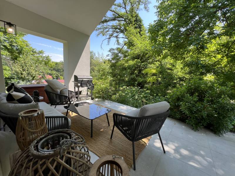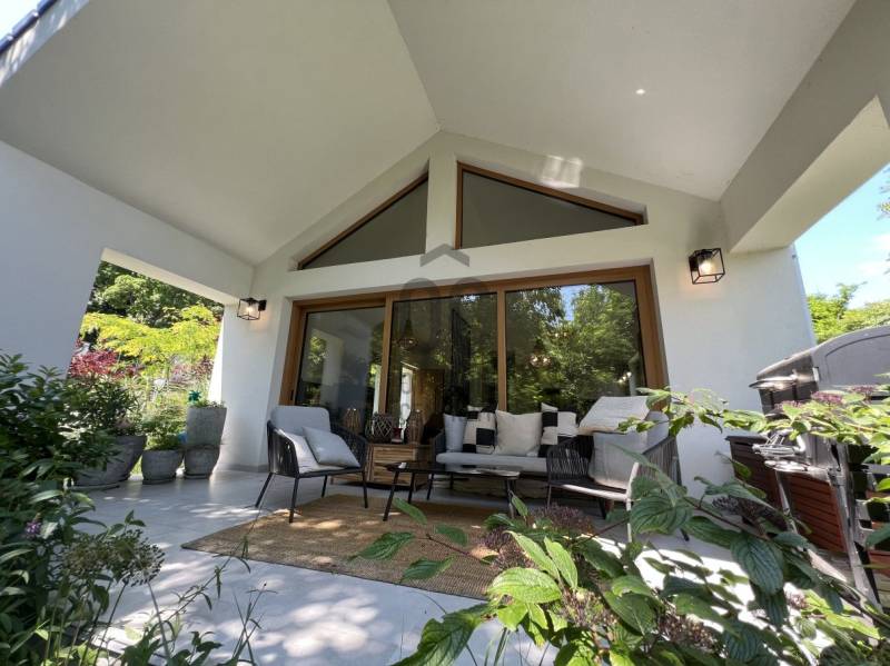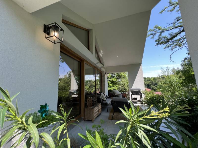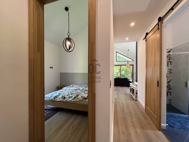 VARÁZSLATOS ZÖLD KÖRNYEZET, EGYEDÜLÁLLÓ STÍLUS és a BALATONI ÉLET hármasa találkozik ebben a páratlan ingatlanban.Balatonföldvár legszebb részen, az erdővel körülölelt Karika völgyben, saját részre építetett, exkluzív adottságokkal rendelkező, kiváló minőségi alapanyagokból, bútorokkal berendezett, napfényes családi ház/nyaraló keresi új gazdáját!A 2020-ban épült ingatlan, egy gyönyörűen parkosított 890 nm-es telken fekszik.Hasznos alapterülete 83 nm, melyhez egy 19 nm-es déli tájolású fedett terasz csatlakozik.Jellemzői:*3 hálószóba, konyha-étkező-nappali, fürdőszoba, WC, terasz*Porotherm 30K klímatégla*nyílászárók nagy keménységű trópusi fából, alumínium redőnnyel és szúnyoghálóval*egyedi fa beltéri ajtók, tolóajtó*Varilight réz villanykapcsolók*CLIFF konyhabútor*Beépített konyhai gépek (mosogatógép, sütő, mikrohullámú sütő, hűtőszekrény, páraelszívó)*egyedi stílusú gránit mosogató*bioetanol kandallóA ház klímájáról padlófűtés (cirkó gázkazán) valamint hűtő-fűtő klíma gondoskodik.A magas minőségű szigetelésnek köszönhetően, a nagy belmagasság ellenére, nagyon alacsony a fűtési költség.A ház egészéről a teljes műszaki dokumentáció rendelkezésre áll.Ne hagyja ki ezt a páratlan ingatlant!Bővebb felvilágosításért várom megtisztelő hívását! |