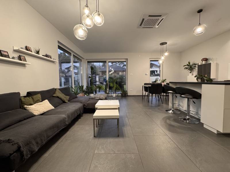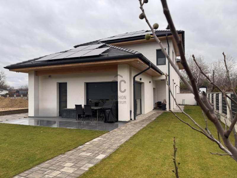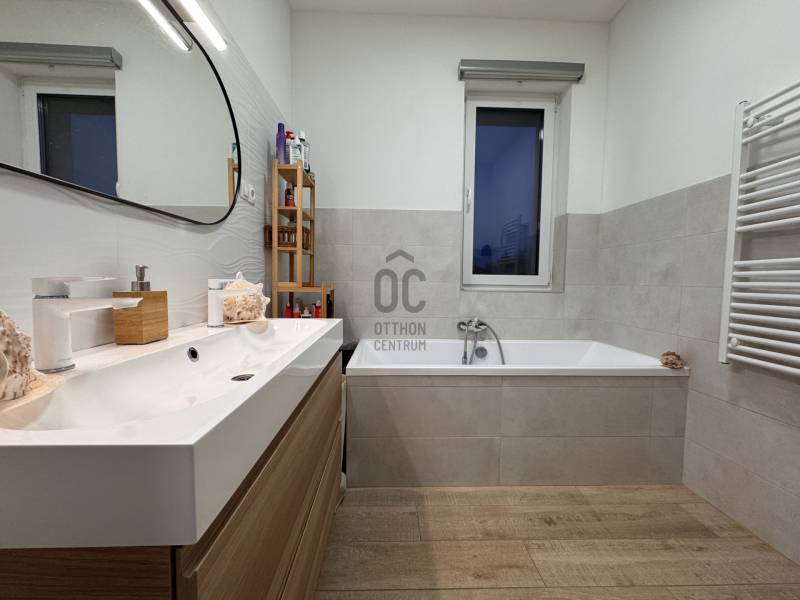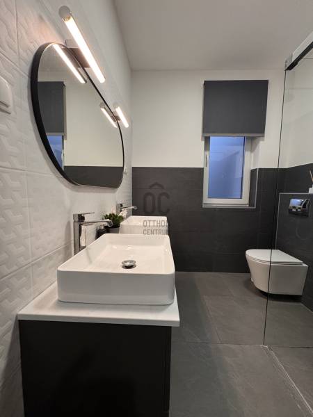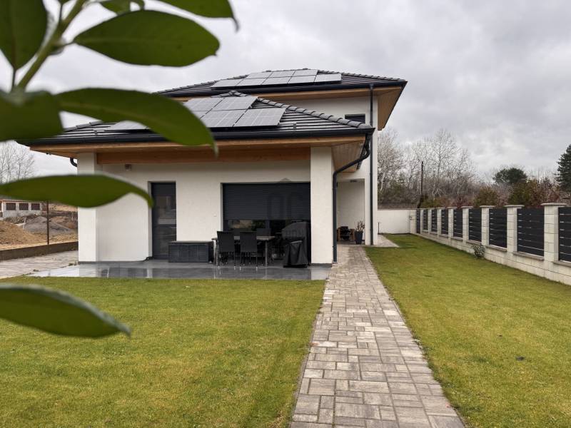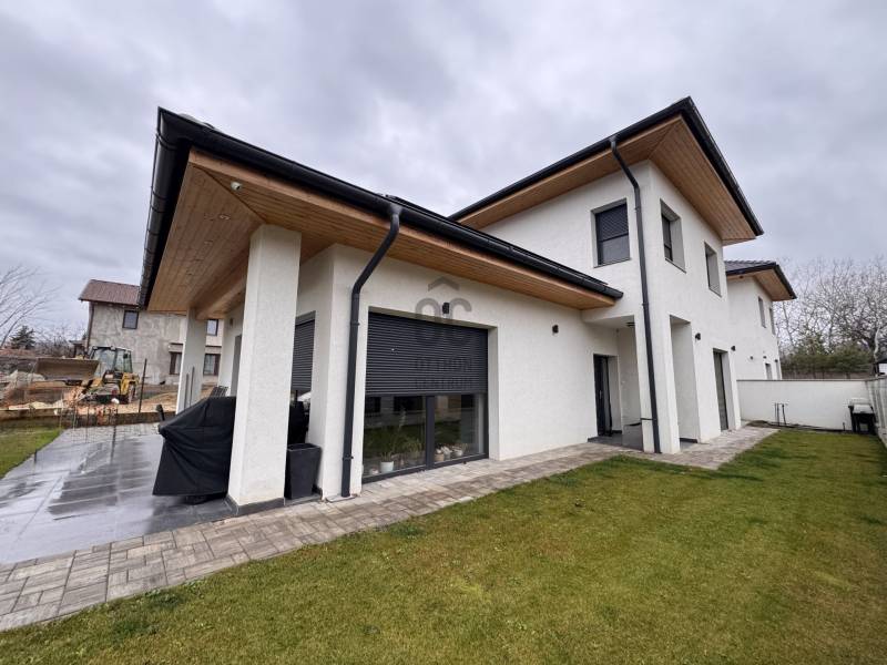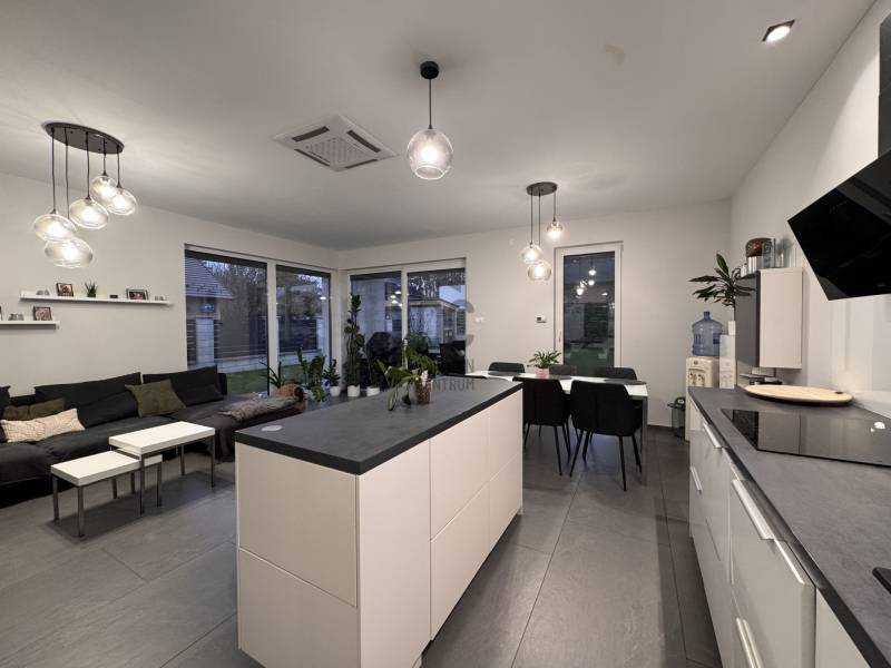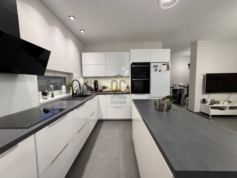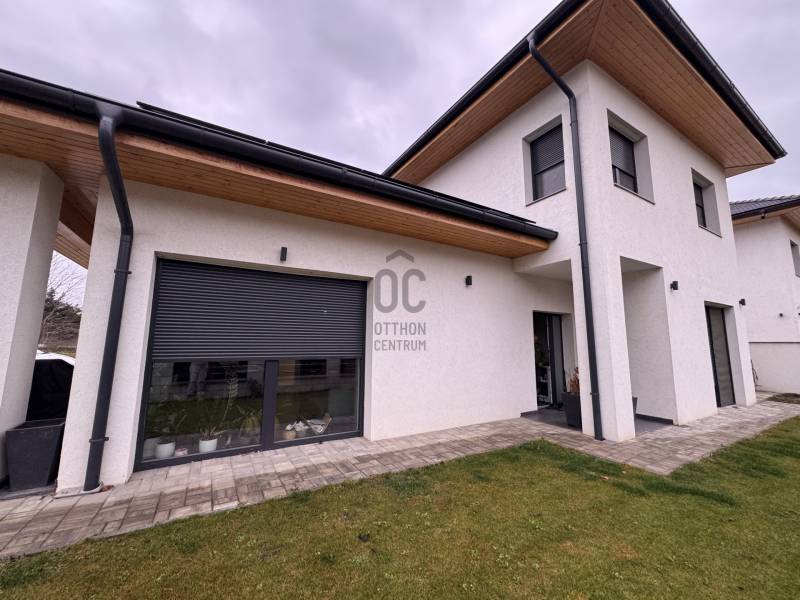 Göd az északi agglomeráció ékköve, a Dunakanyar Kapuja, egy tüneményes kertváros a zsibongó Duna partján Budapesttől egy karnyújtásnyira, - így annak közelében, de a zajától már távol. Híres jó nevű iskoláiról, virágos köztereiről, városi rendezvényeiről, gyönyörű partszakaszáról és remek infrastruktúrájáról, így méltán vált a kiköltöző Családok dobogós választásává ez elmúlt években. Unikális természeti adottságai közé tartozik a Feneketlen tó, Ilka patak, Topolyás dűlő, az Erzsébetliget valamint a páratlan Homoksziget.Itt, a város fejlődő, leginkább zöldövezeti részén GÖD-NEVELEKEN került eladósorba egy kimondottan fiatal, MAKULÁTLAN ÁLLAPOTÚ IKERHÁZ. Csendes utcában, nívós szomszédság mellett, erdőközei területen kapott helyet.A ház, bár jogilag ikerház, de gyakorlatban teljesen különálló házként működik, hiszen elszeparált terekkel rendelkezik, MINDEN KÜLÖN VAN és NINCS ÖSSZEÉRŐ FALFELÜLET a lakóterekben.3 éves az épület, ehhez mérten maximálisan korszerű, NAPELEMRENDSZERREL (10kW), HŐSZIVATTYÚS (12kW) padlófűtéssel, központi klímarendszer, korszerűen szigetelt (20cm dryvit) falakkal és födémmel, kiegészítő hőszabályozással (elektromos kazán, kandallókiépítési lehetőséggel) MINIMÁLIS FENNTARTÁSI KÖLTSÉGGEL:----------------------------------------------- ÖSSZREZSI 20e Ft/hó !!! -----------------------------------------------------------------Elrendezése abszolút átgondolt és praktikus:Földszinten: kényelmes előszoba, egy hálószoba, épített zuhannyal felszerelt fürdőszoba+WC, háztartásihelyiség+gépház, GARÁZS, amerikai konyhás nappali+kamra, nagy fedett terasz alkotják a helyiséglistát. Rengeteg az üvegfelület, így ennek és a kiváló tájolásnak köszönhetően napfényes, szellős és tágas terek születtek. A konyha magafényű frontos minimál stílusú, teljes gépesítéssel és bárpultos konyhaszigettel rendelkezik, nagy méretű olasz kerámia burkolólapok és magas minőségű beltéri ajtók valamint design lámpatestek emelik a hangulatot. A háztartási helyiség jól pakolható, rendkívül praktikus mosókonyhaként is funkcionálhat, a kamra polcrendszerrel felszerelt, a garázsban pedig valóban hatalmas hely jut az autó tárolásán felül a családi bicikliknek, SUP flottának, grillszettnek.Emeleti szinten: /AZ EMELET TELJES ÉRTÉKŰ, NINCS TETŐSÍK MIATTI TÉRVESZTESÉG!/ 2 jó méretű több ablakos hálószoba, egy jelenleg gardróbként bútorozott félszoba és tágas, kádas fürdőszoba+WC került kialakításra. Világos, barátságos tereiben ideális méretű szobákat kapunk, a lépcsőtér is kellemes, ablakos nem egy sötét lyuk az épületen belül. PADLÁSTÉRBEN- rengeteg további hely jut tárolásra, járható szigetelt födémfelület van!A telek pontosan elég méretű, közel 400m2-én díszsövények és gondosan parkosított gyep fogadja az ideérkezőt. Az elektromos kapukon át a garázson kívül zárt udvarban viacolor további 4 autó parkoltatása megoldott!Jöjjön el, tekintse meg, ha nagyobbra váltana, ha olyan Otthont keres ami korszerű, munkamentes és modern stílusvilágú, ha fontos a környezet és az erdő közelsége, ha nem köt kompromisszumot és fenntarthatóan szeretné családjának megadni azt a ház-méretet amit a kényelmes hétköznapok megkövetelnek!-alaprajz feltöltése folyamatban, Kérje üzenetben!- |