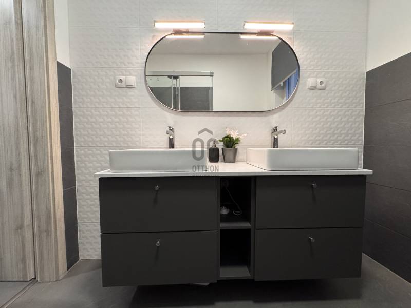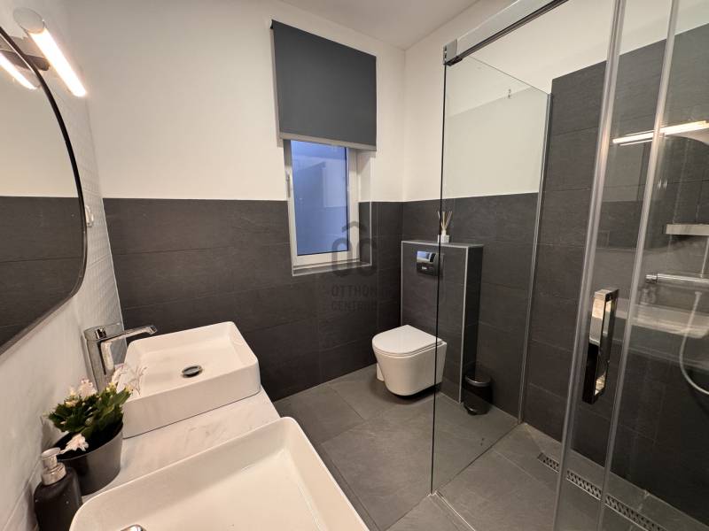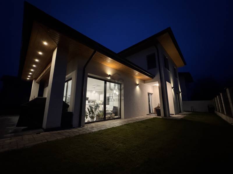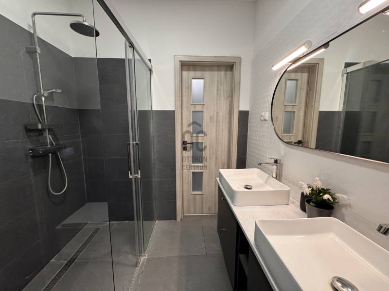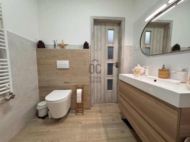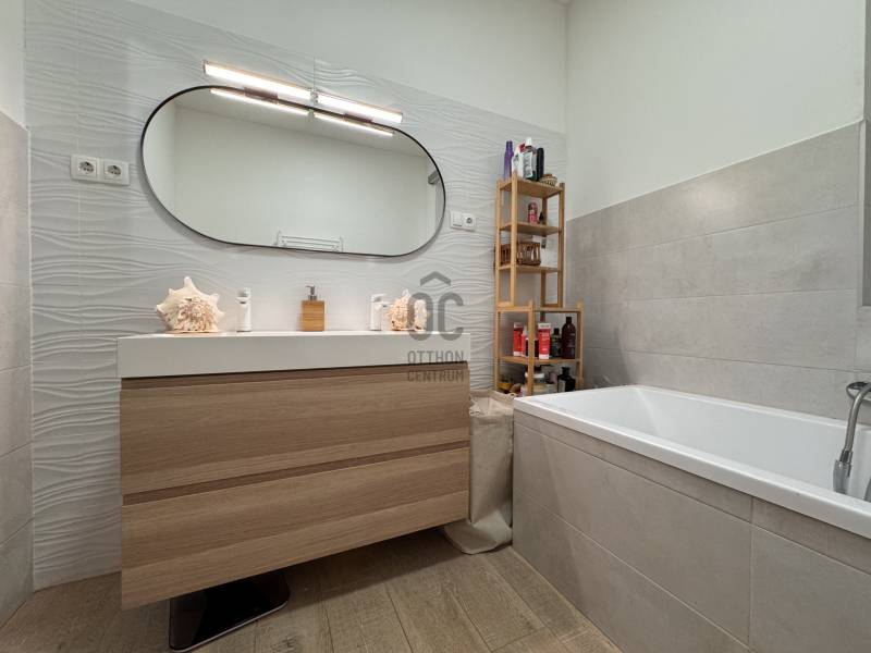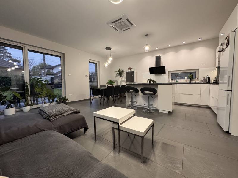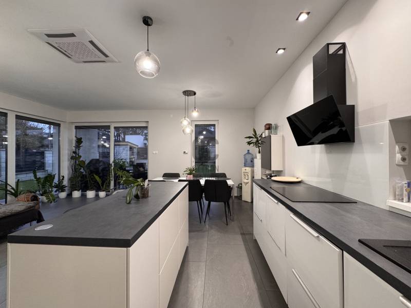 Göd az északi agglomeráció ékköve, a Dunakanyar Kapuja, egy tüneményes kertváros a zsibongó Duna partján Budapesttől egy karnyújtásnyira, - így annak közelében, de a zajától már távol. Híres jó nevű iskoláiról, virágos köztereiről, városi rendezvényeiről, gyönyörű partszakaszáról és remek infrastruktúrájáról, így méltán vált a kiköltöző Családok dobogós választásává ez elmúlt években. Unikális természeti adottságai közé tartozik a Feneketlen tó, Ilka patak, Topolyás dűlő, az Erzsébetliget valamint a páratlan Homoksziget.Itt, a város fejlődő, leginkább zöldövezeti részén GÖD-NEVELEKEN került eladósorba egy kimondottan fiatal, MAKULÁTLAN ÁLLAPOTÚ IKERHÁZ. Csendes utcában, nívós szomszédság mellett, erdőközei területen kapott helyet.A ház, bár jogilag ikerház, de gyakorlatban teljesen különálló házként működik, hiszen elszeparált terekkel rendelkezik, MINDEN KÜLÖN VAN és NINCS ÖSSZEÉRŐ FALFELÜLET a lakóterekben.3 éves az épület, ehhez mérten maximálisan korszerű, NAPELEMRENDSZERREL (10kW), HŐSZIVATTYÚS (12kW) padlófűtéssel, központi klímarendszer, korszerűen szigetelt (20cm dryvit) falakkal és födémmel, kiegészítő hőszabályozással (elektromos kazán, kandallókiépítési lehetőséggel) MINIMÁLIS FENNTARTÁSI KÖLTSÉGGEL:----------------------------------------------- ÖSSZREZSI 20e Ft/hó !!! -----------------------------------------------------------------Elrendezése abszolút átgondolt és praktikus:Földszinten: kényelmes előszoba, egy hálószoba, épített zuhannyal felszerelt fürdőszoba+WC, háztartásihelyiség+gépház, GARÁZS, amerikai konyhás nappali+kamra, nagy fedett terasz alkotják a helyiséglistát. Rengeteg az üvegfelület, így ennek és a kiváló tájolásnak köszönhetően napfényes, szellős és tágas terek születtek. A konyha magafényű frontos minimál stílusú, teljes gépesítéssel és bárpultos konyhaszigettel rendelkezik, nagy méretű olasz kerámia burkolólapok és magas minőségű beltéri ajtók valamint design lámpatestek emelik a hangulatot. A háztartási helyiség jól pakolható, rendkívül praktikus mosókonyhaként is funkcionálhat, a kamra polcrendszerrel felszerelt, a garázsban pedig valóban hatalmas hely jut az autó tárolásán felül a családi bicikliknek, SUP flottának, grillszettnek.Emeleti szinten: /AZ EMELET TELJES ÉRTÉKŰ, NINCS TETŐSÍK MIATTI TÉRVESZTESÉG!/ 2 jó méretű több ablakos hálószoba, egy jelenleg gardróbként bútorozott félszoba és tágas, kádas fürdőszoba+WC került kialakításra. Világos, barátságos tereiben ideális méretű szobákat kapunk, a lépcsőtér is kellemes, ablakos nem egy sötét lyuk az épületen belül. PADLÁSTÉRBEN- rengeteg további hely jut tárolásra, járható szigetelt födémfelület van!A telek pontosan elég méretű, közel 400m2-én díszsövények és gondosan parkosított gyep fogadja az ideérkezőt. Az elektromos kapukon át a garázson kívül zárt udvarban viacolor további 4 autó parkoltatása megoldott!Jöjjön el, tekintse meg, ha nagyobbra váltana, ha olyan Otthont keres ami korszerű, munkamentes és modern stílusvilágú, ha fontos a környezet és az erdő közelsége, ha nem köt kompromisszumot és fenntarthatóan szeretné családjának megadni azt a ház-méretet amit a kényelmes hétköznapok megkövetelnek!-alaprajz feltöltése folyamatban, Kérje üzenetben!- |