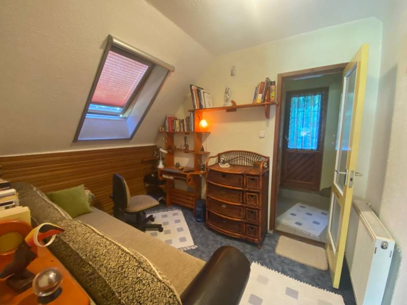 Mézeskalács házikó zöld környezetben,, 9 percre az Árpád hídtól!!Távolabb a várostól,,mégis közel!Mint \"zártkert\" - de művelés alól kivont--nem kell kifüggeszteni.- a tulajdoni lapon 4 telek egymás mellet osztatlan közös tulajdonban van,senki nem kíván élni elővásárlási jogával.Normál hitel felvehető rá !!! Otthon start nem ( 3%-os)Méltán kedvelt régióban, a fejlesztés alatt álló Malom-dűlő lakópark közelében, mégis csendes ( üdülő hangulatú ) helyen eladóvá vált különleges hangulatú ház , szép parkosított kerttel ( telek 720nm )Jelenlegi beépített hasznos tér:Földszinten: konyha-étkező-nappali funkcióval egy 25nm-es helyiség ,egy további kb. 24nm-es szoba, gardrób, fürdő ,külön wc- piszoárral,valamint a ház különlegessége: egy különleges kb. 50nm-es téglázott borospince,garázs.A ház előtt fedett teraszok kerültek kialakításra a szabadidős programok remek eltöltéséhez.Emeleten: 2 db félszoba ( kb 12-7nm ) , egy fürdő wc-vel-zuhannyal + egy hatalmas ( kb. 40nm-es) , BEÉPíTHETŐ terasz-melyen további hálószobák kialakíthatók.Kertben remek vízminőségű kút található. Grillező, kerti csap, termő gyümölcsfák, gondozott, locsolt fű, szolgálják a majdan itt élők örömét.Közelben ( 8 perc séta) - a háziréti horgásztó telepített halállománnyal , fél órás túra az \"Egri vár\' , lovaglási lehetőség...-- csodás környezet a Pilisi hegyekben.Tömegközlekedés kiépítés alatt: a Malomdűlő villapark projekt kialakítása megkezdődött-buszközlekedés és jó minőségű aszfaltozott út kerül itt kialakításra.Ezzel ingatlanja értéke jelentősen nő majd, így remek befektetés is most ez a vásárlás!5 perc autóval a Solymári Auchan-a hozzá kapcsolódó egyéb üzletekkel-szolgáltatásokkal.Solymár felől a Széll Kálmán térre , míg Üröm felől az Árpád hídhoz juthatunk el kb 15 perc alattautóval.Mai \"rezsiérzékeny \" világunkban nagy előnyt jelent az alacsony fenntartási költség -- alternatív fűtési lehetőségek kerültek kiépítésre-nem függvén a közmű-szolgáltatóktól.Ez fejleszthető, néhány napelem felhelyezésével is..Számos előnyt említhetnék még, de jöjjön el és tekintse meg, fedezz fel ezeket!Várom hívását!Irodánk Ön számára biztosított kedvezményes szolgáltatásai:- bankfüggetlen hiteltanácsadás- ha ügyfelünk lesz az ingatlan vevője, ingyen elkészíttetjük az energetikai tanúsítványt Ügyvédi szolgáltatások féláron elérhetők! |