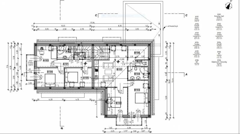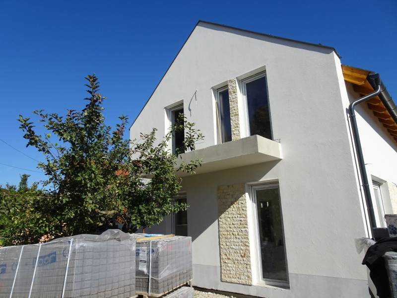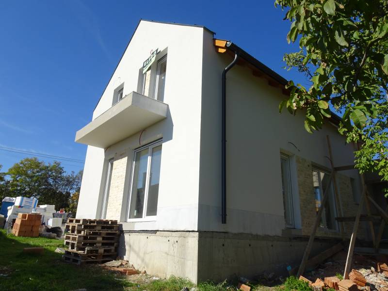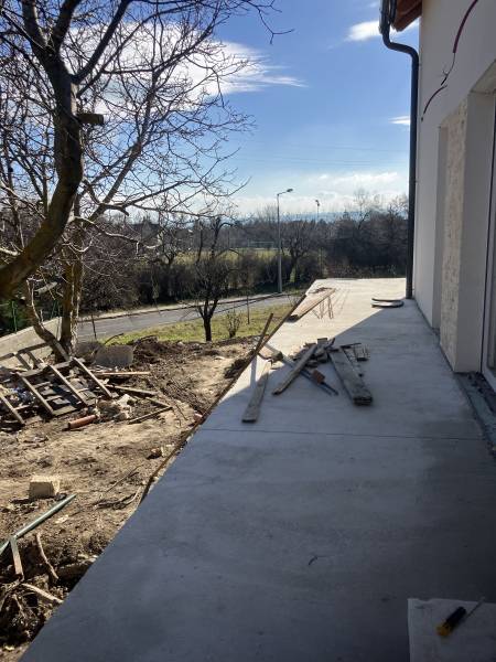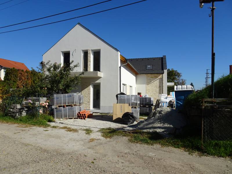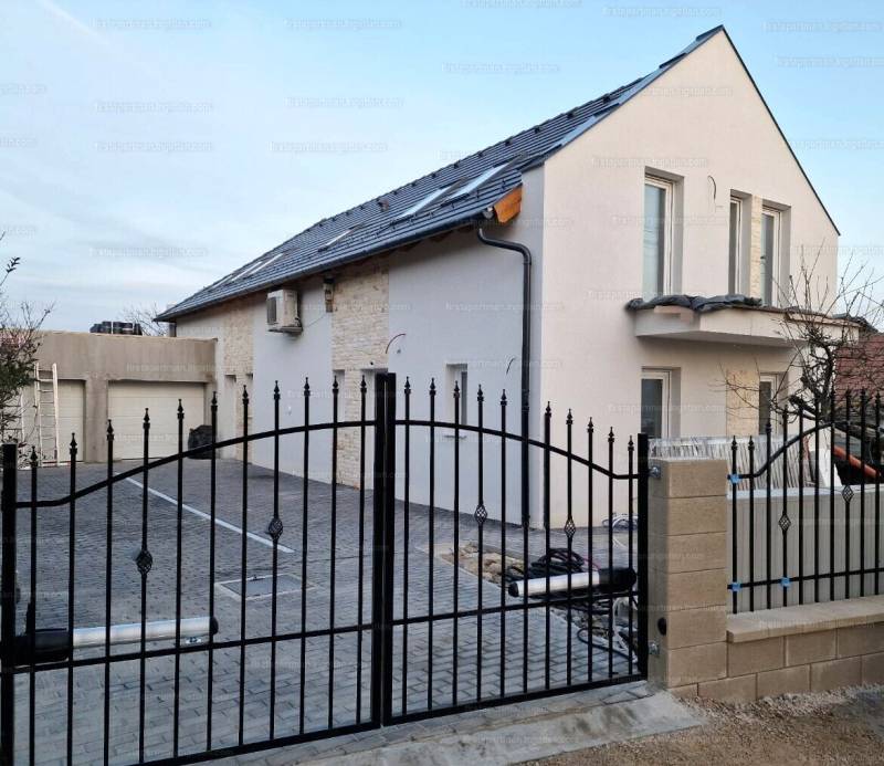CSOPAKON ÚJÉPÍTÉSŰ PANORÁMÁS IKERHÁZFÉL – GARÁZZSAL EGYÜTT – ELADÓSaját 188 m2-es kertrésszel rendelkező, a kor magas műszaki elvárásainak megfelelő ikerházfél vált eladóvá Csopak egy átmenőforgalomtól mentes kis utcájában. Az emeleti erkélyről gyönyörű balatoni panoráma nyílik. Az ikerház utcafronthoz közelebbi fele már elkelt, az eladásra kínált lakás kellő mértékben elkülönül a másik lakástól és az utcától.Elhelyezkedése miatt nyaralóként illetve állandó lakhelyként is ideális. A kivitelezést számos referenciával rendelkező, megbízható beruházó végzi.Az ár a kulcsrakész állapotot tartalmazza.A belső kétszintes ikerházfél belső kétszintes, duplakomfortos kialakítású.A földszinten 43 m2-es, dél-keleti tájolású amerikai konyhás nappali+étkező, előtér, fürdő, különálló WC (és opcionálisan egy szoba) kap helyet. A nappalihoz egy 42,4 m2-es L alakú terasz kapcsolódik. Az emeleten fürdő és külön WC, egy nappali valamint 2 hálószoba és egy erkély kerül kialakításra. A tetőtérben 58,22 m2 az 1,9 m feletti belmagasságú terület.Az emeleti rész külön bejáratúvá tehető igény szerint, ezért két generáció részére, vagy kiadásra is ideális lehet.Műszaki tartalom :- Homlokzati nyílászárók: műanyag erkélyajtók és ablakok (3 rétegű üvegezéssel,5 kamrás szerkezetben), redőnytokos kiépítésben, fehér színben- Acéltokos biztonsági bejárati ajtó- Elektromos berendezések (főzőlap, sütő, egyéb) beszerelési lehetőségéhez a bekötési és csatlakozási pontok biztosítva- Egyedi hőszivattyús fűtés kerül kialakításra: LG Therma V Levegő-Víz 9kw (Monoblokk) típusú készülék gondoskodik a ház hűtéséről, fűtéséről és meleg víz ellátásáról- A hőleadás padlófűtéssel valósul meg, a klimatizálást a földszinti helyiségekben mennyezet hűtés, az emeleten fan-coil hűtés biztosítja - A teherhordó falazat Wienerberger Porotherm Profi 30cm, 12cm grafitos hőszigeteléssel, nemes vakolattal- Az utcafronton terméskőkerítés és automata kapu került elhelyezésre- A kertben térkővel burkolt járda és autóbeálló került kialakításra - A lakáshoz tartozik egy 16 m2-es garázs, melynek az árát a vételár tartalmazza Elhelyezkedése : csopaki strand 2,1 km, vasútállomás 1,4 km, buszmegálló 650 m, általános iskola 700 m távolságra elérhető.Hívjon bizalommal a +36707412457 telefonszámon.Építész- és ingatlanközvetítő irodánk minden hiteles szakmai segítséget meg tud adni, mellyel segíteni tudjuk döntését.Kérje az ingatlan részletes tájékoztató anyagát!Kövesse Balatoniingatlanguru facebook és balatoni_ingatlanguru instagram oldalunkat.Balatoni ingatlanguru - Több mint közvetítő |