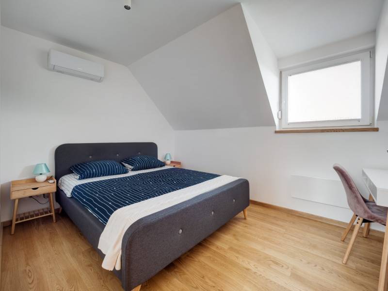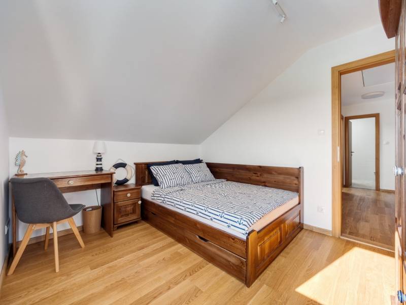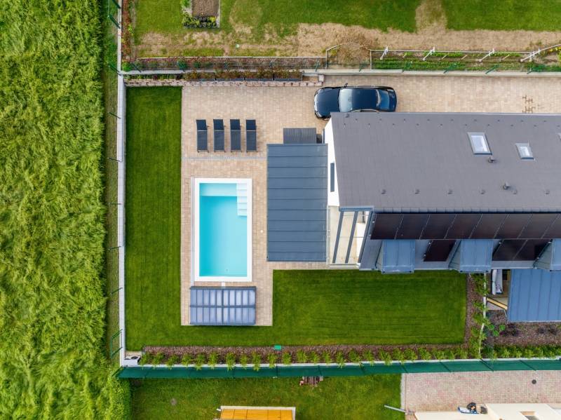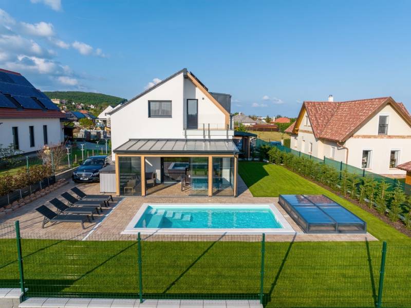 ALSÓÖRSÖN PANORÁMÁS, MINŐSÉGI ÚJSZERŰ IKERHÁZFÉL, NAPELEMMEL, MEDENCÉVEL ELADÓ Alsóörs csendes, nívós részén, újszerű családi házak környezetében kínálunk eladásra ezt a minden igényt kielégítő, 2022-ben épült ikerház hátsó, nem utcafronti részét, 472 m2 telekrésszel. Közel 0 energetikai besorolású ingatlan.A 95 nm-es nettó hasznos alapterületen 4+1 szobás, 3 fürdőszobás lakás lett kialakítva, a földszinten tágas nappali-konyha-étkező, kamra, valamint előszoba, fürdő és egy hálószoba található, valamint egy 21 m2-es télikert. Az emeleten három hálószoba és két fürdőszoba van. Az ikerház két lakása között dupla tégla falazat épült. Az ingatlan külön helyrajzi számon került bejegyzésre a földhivatalban, társasházi megosztással. A kor magas műszaki követelményeinek tökéletesen megfelelő ingatlan az alábbi műszaki és felszereltségi tartalommal került átadásra : - a teljes berendezés, gépesítés ára: 10 mFt- falazat Porotherm 30 tégla 20 cm hőszigeteléssel - a belmagasság 275 cm - a tetőn napelem telepítés - elektromos fűtés, elektromos hőszivattyús hűtő-fűtő klímák (Gree), fürdőkben elektromos padlófűtés, mindez wifiről is „okos otthon” szerint működtethető - mindkét szinten egy-egy melegvíztárolós bojler (Ariston) - műanyag nyílászárók, kívül antracit/ belül fehér színben (6 légkamrás, 3 rétegű üvegezés, Roto vasalat) - távirányítós alumíniumredőnyök - szúnyogháló minden nyílászárón - Siemens, Bosch, AEG konyhagépek - minőségi, egyedi, asztalos által készített konyhabútor, Blanco silgránit mosogatóval - üveg zuhanykabin - emelő-toló teraszajtók - lépcső alatt kamra kerül kialakításra - tölgyfa lépcsőburkolat - burkolatok : tölgy szalagparketta, kerámia a vizes helyiségekben - minőségi szaniterek, Wellis kád, Grohe csaptelepek - 21 m2-es télikert, alumínium keretes biztonsági üveggel, keret nélküli lapozható üveg tolóajtóval- elektromos, távirányítású kapu - gondozásmentes alumínium kerítés és kapuk- videós kaputelefon- kukatároló- 3x40 A ipari áram- elektromos autótöltő előkészítés - esőérzékelős öntözőrendszer külön locsolómérővel- téliesítés-mentes kerti csap- 2 db esővíz szikkasztó- térkő kialakítása a kertben - épület külső megvilágítása - Hydrovetéses pázsit, sövény - 4 féle fűtés, okos, wifis megoldással- BWT központi vízlágyító berendezés.- H tarifás villanyóra - 6x3 m- es vasbeton szerkezetű, hőszivattyúval fűtött medence napozórésszel. (gépházzal, automatizált gépészettel)A ház elhelyezkedését tekintve a nyugalom kedvelőinek is ideális. A kellemes, domboldali fekvése nyaralóként de állandó lakhatásra is alkalmassá teszi. A vasút állomás, és buszmegálló 1,2 km-re, strand, vitorlás klub 1,5 km-re érhető el.Hívjon bizalommal a +36707412457 telefonszámon!Építész- és ingatlanközvetítő irodánk minden hiteles szakmai segítséget meg tud adni, mellyel segíteni tudjuk döntését.Kérje az ingatlan részletes tájékoztató anyagát!Kövesse Balatoniingatlanguru facebook és balatoni_ingatlanguru instagram oldalunkat.Balatoni ingatlanguru – több mint közvetítő |