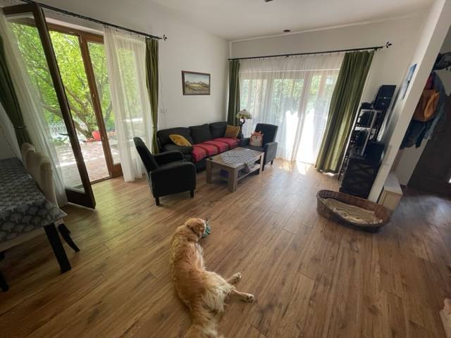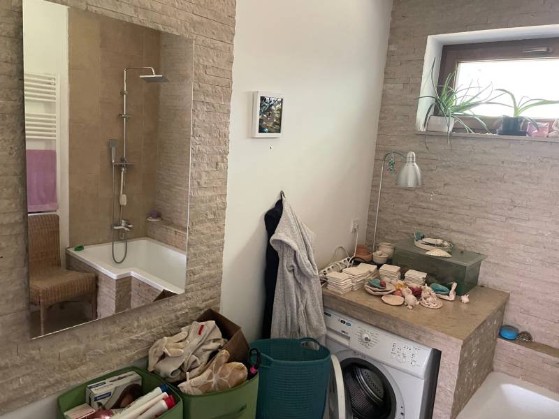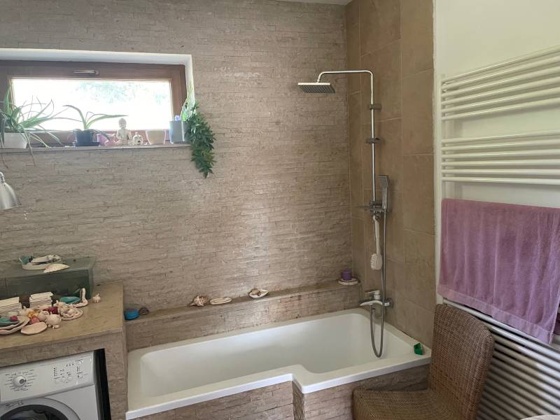 ÁBRAHÁMHEGYEN HANGULATOS CSALÁDI HÁZ ELADÓÁbrahámhegy csendes belterületén vált eladóvá ez a 2014-ben épült, kétszintes, 108 m2 hasznos alapterületű, 5 szobás, duplakomfortos családi ház, amely két külön is használható lakóegységből áll, ezért két generációnak, vagy kiadásra is tökéletes választás lehet.Az erdőszéli lokációja, a végtelen nyugalom kedvelőinek állandó lakhatásra és nyaralóingatlanként történő használatra is lehetővé teszi. Körben szép tájpanoráma nyílik.Könnyen, aszfaltúton közelíthető meg, mindössze az utolsó 30 méteres szakasz földút.Tulajdoni lapon az ingatlan belterület, „kivett lakóház, udvar” megnevezésű. A ház helyiségei: Földszint: előszoba, nappali, konyha, háló, fürdőszoba, WC, lépcsőház, 8 m2 télikert, 5 m2 tároló (kintről megközelíthető), tágas terasz Tetőtér: külön bejárattal is rendelkezik, nappali + konyha, 2 hálószoba, fürdőszoba, 2 erkélyMűszaki tartalom: az alacsony rezsiköltséget az alábbi hőszigetelésrendszer garantálja - Falazat: porotherm K tégla 30 cm + 15 cm EPS hőszigetelés, lábazatnál 15 cm XPS,- Aljzat duplán: 10 cm XPS + 10 beton + 8 cm lépésálló EPS + 7 cm beton- Tetősík: 30 cm kőzetgyapot, cserép tetőfedés- Nyílászárók: 3 rétegű üveg, fa gyártású ablakok, a télikert 2 rétegű - Fűtése: jelenleg kandallóval megoldott (a kémény: két kürtős, 18cm-es, Schiedel, szellőző kürtővel)A ház egyes részei, pl. a lépcsők és az alternatív fűtési rendszer befejezésre várnak (amely már elkészült: beépített vezetékezés tervezett infrapanel fűtéshez a lenti szobákban, beépített vezetékezés napelem telepítéshez a tetőre, és a légtechnikai csövek beépítve a tetősíkban hőcserélős szellőztető rendszerhez)A ház 1397 m2 telken áll, amelynek utcafronti szélessége 38 m, enyhén lejtős terület, kissé trapéz alakú. A kertben számos termő gyümölcsfa, veteményes és dísznövények mellett egy 8 m2-es hőszigetelt (10 cm) faházikó is elhelyezésre került. A gazdaságos öntözést egy 8 m3-es földalatti esővízgyűjtő ciszterna biztosítja. Elhelyezkedése: strand 1,9 km, buszmegálló 1 km, vasútállomás 1,7 km távolságra, a komolyabb infrastruktúra az 5 km-re fekvő Badacsonytomajon érhető el.Az ár irányár.A Balaton északi partján, a Badacsony-hegytől keletre, Révfülöp községtől 5 km-re, a 71-es út mentén található Ábrahámhegy, amely a Balaton egyik legkedveltebb fürdőhelye, mert egyrészt hegyei félkör alakban nyugatról és északról elzárják, védik a szelektől, másrészt egy völgykatlanban húzódik és így klímája melegebb a környezeténél. Erdős hegyoldalak, szép telepítésű szőlők, sűrű tölgyesek, tisztások váltják egymást. A természet, az ember és a táj harmóniája, a tó ezer arca, a csend és a nyugalom jellemzi.Építész- és ingatlanközvetítő irodánk minden hiteles szakmai segítséget meg tud adni, mellyel segíteni tudjuk döntését. Kérje az ingatlan részletes tájékoztató anyagát! Kövesse Balatoniingatlanguru facebook és balatoni_ingatlanguru instagram oldalunkat. Balatoni ingatlanguru – több mint közvetítő |