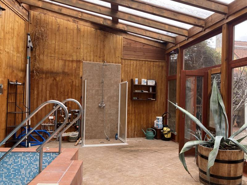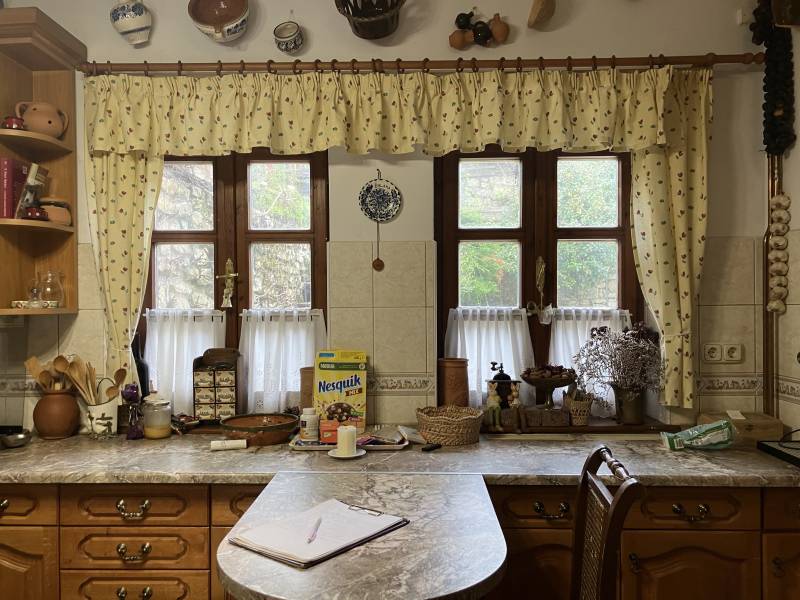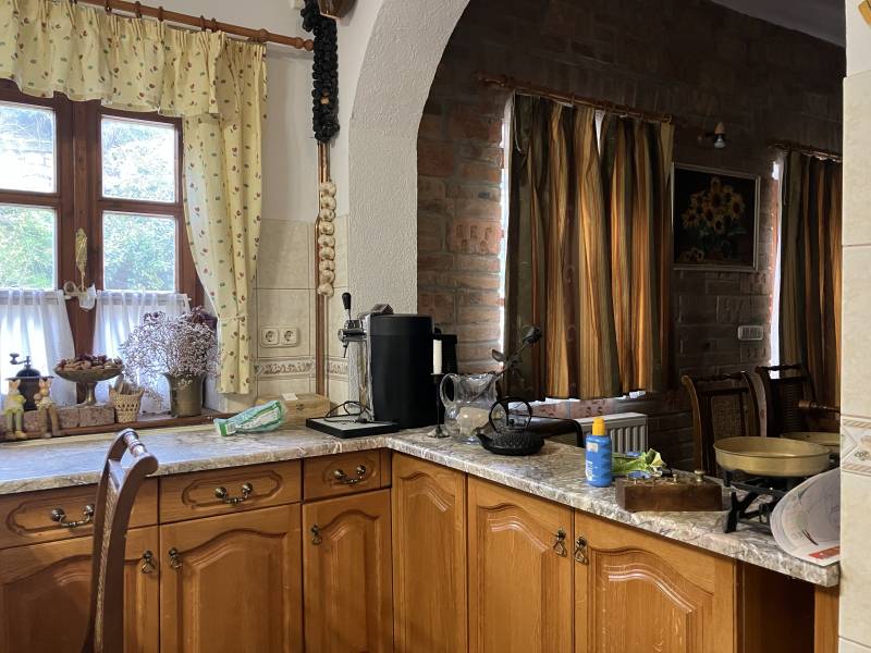 BALATONFÜREDEN EGYEDI, KÜLÖNLEGES INGATLAN (lakóház + vendégház) ELADÓ Füred Arács városrészében, egyedi hangulatú, minőségi ingatlan vált eladóvá, amelyet a környezetétől teljesen elszeparált kialakítása is vonzóvá tehet, valamint az a tény, hogy az ingatlan a tulajdonosai számára biztos bevételi forrást is jelenthet, de két generáció kényelmes együttélésére is alkalmas. A telek 732 m2, amelyen két épület (bruttó 220 m2 alapterülettel) került elhelyezésre. A lakóház mellett egy vendégház, egy fedett wellnes részleg medencével, egy 8 m2-es borospince és egy 15 m2-es hangulatos fedett, kültéri kiülő-étkező rész -ahol egy kemence is rendelkezésre áll – az ingatlan részét képezik.A nyolcvanas évek végén, téglából épült házak homlokzatán hőszigetelés nincs, a tető cseréppel fedett. A kert minden részlete aprólékos gonddal lett megtervezve, a dísznövények, szőlő, gyümölcsfák mellet autóbeálló és egy tároló faház is elhelyezésre került.A kétszintes lakóház földszinti alapterülete 85 m2, itt nappali, konyha, kamra és egy WC., a tetőtérben pedig négy hálószoba, fürdőszoba és külön WC. található. A vendégházban szoba, egy fürdőszoba, külön WC., gépészeti helyiség, a tetőtérben pedig további két hálószoba került kialakításra. Utóbbi épület teteje napkollektorral szerelt, amely az üvegmozaikos medence vizét melegíti. Fűtése: gázkazánnal történik, a hőleadás radiátorokkal biztosított. A nappaliban kandalló is rendelkezésre áll.Az ingatlan tulajdoni lapon: belterület, kivett lakóház, udvar, gazdasági épületElhelyezkedés: Esterházy strand, Tagore sétány 2 km, posta, Spar, buszmegálló 50 m, arácsi vasútállomás 1,1 km távolságra érhető el.Balatonarács Füred településrésze, a füredi városközpont (Vörös-templom) és Csopak között félúton fekszik, a Tamás-hegy, illetve a Péter-hegy lábánál, szép természeti környezetben. Arács történelmi faluközpontja a két hegy közti Koloska-völgy szájánál, a Balaton-felvidéken Aszófőtől Almádiig húzódó ún. római út mentén található. Arácson rendkívül pezsgő közösségi élet zajlik, melynek központja az Arácsi Népház. A környéken nagy számban találunk nádfedeles építményeket, tehát az autentikus hangulat garantált. Építész- és ingatlanközvetítő irodánk minden hiteles szakmai segítséget meg tud adni, mellyel segíteni tudjuk döntését. Kérje az ingatlan részletes tájékoztató anyagát! Kövesse Balatoniingatlanguru facebook és balatoni_ingatlanguru instagram oldalunkat. Balatoni ingatlanguru – több mint közvetítő |