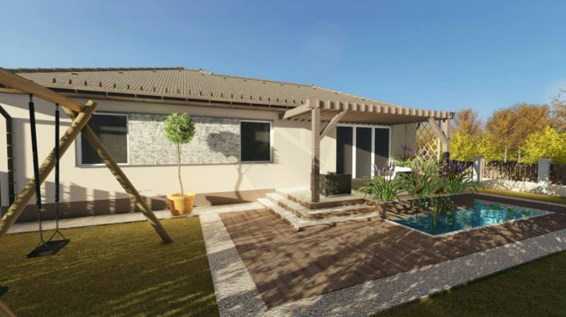 Győr közvetlen szomszédságában Győrújbaráton, újonnan épülő, igényes kialakítású, tégla építésű családi ház leköthető.A nappali + négy szobával(vagy akár több szobával) rendelkező ingatlan alapterülete nettó 110 m2, mely igény szerint módosítható.A praktikusan tervezett házban a szobákon kívül tágas és napfényes amerikai konyhás nappali, gardrób, kamra, szélfogó, közlekedő, fürdőszoba+wc, háztartási helyiség és egy külön mellékhelyiség is kialakításra kerül.Az élhető méretű telek összesen 940 m2-es, mely 30%-ban beépíthető.A feltüntetett vételár az emelt szintű fűtés kész árat és a telek árát tartalmazza, de igény esetén kulcsra kész befejezésre is van lehetőség!Továbbá az ár tartalmazza a komplett tervezői díjat(gépészet, metszetek, statika, energetika, engedélyek), plusz egy inverteres(hűtő-fűtő) klímát!A jelenlegi árajánlatban az otthon melegéről gáz-cirkó kazán gondoskodik, padlófűtéses hőleadással, de a fűtésrendszer is az építtető igényei alapján módosítható!A részletes műszaki leírást és az Építőipari cég weboldalát kérésére e-mailben elküldöm.Más az elképzelése? Válassza ki Ön a saját elképzeléseinek megfelelő alaprajzot!Amennyiben teljesen egyedi tervezést szeretne, az is lehetséges!A képek látványtervek.Jól átgondolt tervezés, megfelelő szakmai tudás és háttér garantálja a MINŐSÉGI OTTHON megvalósítását!További kérdés esetén állok rendelkezésére!Amennyiben megbízható építtetőt szeretne, referenciamunkákkal, minőségi anyagokkal és kivitelezéssel, hívjon bizalommal akár hétvégén is!Teljes körű ügyintézéssel:- Ügyvéd- Biztosítás- Hiteltanácsadás- Generálkivitelezés- Ingatlanértékesítés- Teljeskörű ingatlanfelújítás- CSOK, babaváró, áfa visszaigénylés - állunk rendelkezésére! |