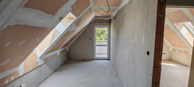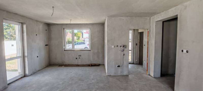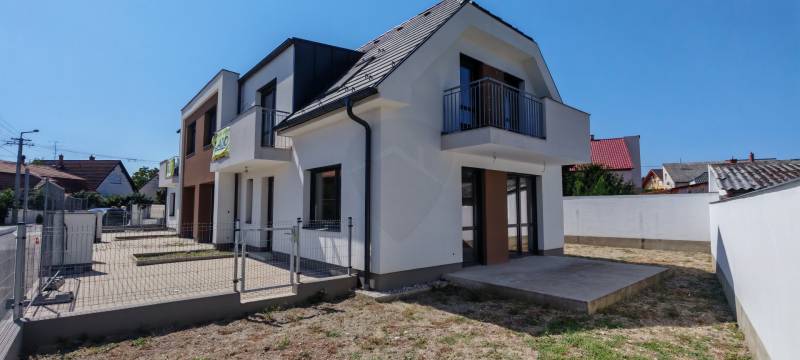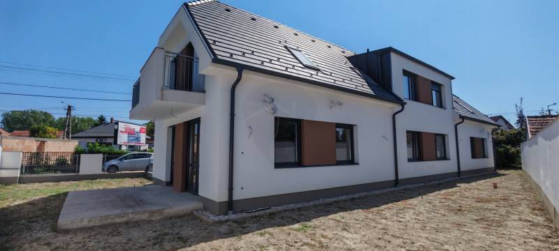 Modern elegancia Győr-Kisbácsán – Új építésű ikerház prémium kivitelben.Nettó alapterület: 147 m2 (113 m2 lakótér + 21 m2 gépkocsi tároló + 25 m2 terasz, erkélyek) + 300 m2 telek + 3 db gépkocsi parkoló.A lakóépület jelenlegi készültségi szintje emelt szintű fűtéskész állapotú, továbbá az ingatlan vételára tartalmazza a 300 m2-es telekrészt, a felépítményt, a kerítést, az épített kukatárolót, 3 db gépkocsi parkolót, szegélyezett tereprendezést, térburkolatokat és járdákat, az önálló közüzemi mérőórákat, valamint a lenti leírásban olvasható műszaki tartalmat.Az ingatlanok kulcsrakész befejezését is vállaljuk a leendő tulajdonos elképzelései és megbízása szerint, rövid határidejű teljesítéssel.A lakóépület ismertetése:A földszinten található: előtér, fürdőszoba (mosdó, zuhanyzó, wc), nappali-étkező-konyha, közlekedő, lépcsőtér és tároló került kialakításra.A nappalihoz kapcsolódik a terasz és a házat körülölelő zárt udvar.Az emeleten található: 4 hálószoba, fürdőszoba (dupla mosdó, zuhanyzó, fürdőkád), külön mellékhelyiség, közlekedő és 2 db erkély került kialakításra.Földszinti helyiséglista:- Előtér 3,42 m2- Fürdőszoba 3,60 m2- Nappali-étkező 25,76 m2- Konyha 6,84 m2- Közlekedő 2,90 m2- Lépcsőtér-tároló 6,30 m2- Garázs 21,30 m2- Terasz 14,10 m2Emelet:- Közlekedő 6,40 m2- Fürdőszoba 8,01 m2- Wc 1,65 m2- Szoba I. 9,30 m2- Szoba II. 10,00 m2- Szoba III. 13,32 m2- Szoba IV. 15,66 m2- Erkély I. 4,30 m2- Erkély II. 7,05 m2Műszaki tartalom, energetikai besorolás, fűtési rendszer, felhasznált építőanyagok, szerkezetek az emelt szintű fűtéskész állapotra vonatkozóan:- kulcsrakész befejezés (leendő tulajdonos elképzelései és megbízása szerint, rövid határidejű teljesítéssel)- energetikai besorolás: A besorolás- inverteres hűtő-fűtő klíma alapszerelés (5 db – 4 db hálószoba + nappali)- lakóegységenként különálló közüzemi mérőórák (1-1 db villanyóra, 1-1 db gázóra, 1-1 db vízóra a használati vízhez + 1-1 db vízóra a kerti locsolóhoz)- lakóegységenként kiépített elektromos hálózat (230V – 32A)- lakóegységenként Vaillant típusú kondenzációs gázkazán, szintenként külön szabályozható termosztátokkal (földszinti + emelet)- helyiségenként külön körökön működő és szabályozható padlófűtés- lefűzött villanyszerelés és kapcsolószekrény- alapozás: vasalt beton sávalap (C25/30-XC2-24-F3)- vasalt aljzat: helyszíni monolit vasbeton szerkezet (C20/25-XC1-24-F3)- födém: helyszíni monolit vasbeton szerkezet (C25/30-XC1-16-F3)- pillérek: helyszíni monolit vasbeton szerkezet (C25/30-XC1-16-F3)- lépcsőszerkezet: helyszíni monolit vasbeton szerkezet (C20/25-XC1-16-F3)- lábazati falak: Leier ZS-30 zsaluelem, vasalva, kibetonozva (C20/25-XC1-24-F3)- főfalak (külső és belső harántfalak): Porotherm 30 N+F tégla- főfalak (lakóegységek között - belső hanggátlás): Leiertherm 30 AKU MD- válaszfalak: Leiertherm 10 N+F, Ytong PVE- lábazati hőszigetelés: 12,0 cm – Ravatherm XPS (0,034 W/mK)- homlokzati hőszigetelés: 15,0 cm – Austrotherm Grafit Reflex (0,031 W/mK)- földszinti padló hőszigetelés: 10,0 cm – Austrotherm AT-N 100 (0,037 W/mK)- emeletközi padló hőszigetelés: 4,0 cm – Austrotherm AT-L2 úsztató réteg (0,044 W/mK)- tető- és padlástéri hőszigetelés: 25,0 cm – Isover Domo Plus Twin 100/50 (0,038 W/mK)- tető- és padlástéri térelhatárolás: Knauf 12,5 mm tűzgátló és impregnált építőlemezek- műanyag típusú homlokzati nyílászárók, tok- és szárnyszerkezetek (80 mm), több ponton záródó bejárati ajtó és ablakok, 3 rétegű hőszigetelt üvegezéssel (44 mm), szín: kívül – antracit, belül – fehér- beépített vakolólapos alumínium redőnyszerkezet, szín: antracit- Velux tetőtéri ablak, 3 rétegű hőszigetelt üvegezéssel, szín: kívül – antracit, belül – fehér- Hörmann RenoMatic hőszigetelt szekcionált garázskapu, motoros meghajtással (hálózatról és távirányítóval egyaránt nyitható-csukható), szín: kívül – antracit, belül – horganyzott- Schöck Isokorb hőhídmegszakító betételem az erkélyek teljes hosszában- Bramac Tectura Protector betoncserép, szín: antracit- színes alumínium korcolt lemezfedés, szín: antracit- Lindab Rain-Line ereszcsatorna és lefolyó, szín: antracit- Baumit rendszerrel készített vékony- és lábazati homlokzati vakolat- Baumit rendszerel készített belső vakolat (simított belső vakolat)- dilatált esztrich aljzatbeton a földszinten és emeleten egyaránt (burkolat nélkül)- tüzihorganyzott acélszerkezetű korlátok- épített kerítés (beton sávalap + Leier ZS-20 zsaluelem, vasalva, kibetonozva + 3D horganyzott „Sendsimir” kerítéstábla)- épített kukatároló és villamosfogadó az utcafronton (beton sávalap + Leier ZS-15 zsaluelem, vasalva, kibetonozva)- udvari járdák és 3-3 db gépkocsi beálló térburkoltak (Leier beton térburkolat)Az épület megvalósítása a legkorszerűbb építőanyagok és szerkezetek felhasználásával, magas minőségben és állandó műszaki felügyelet mellett történt.A környék csendes és biztonságos, ideális hely akár családok számára is, ugyanakkor a közlekedés is kitűnő: a közeli buszmegállók és az autóút könnyű hozzáférést biztosítanak a város többi részéhez, így gyorsan elérheted Győr belvárosát is.A környék ellátottsága kiváló, hiszen boltok, iskolák és egészségügyi intézmények mind könnyen megközelíthetők.Ez az ingatlan nem csupán egy új otthon, hanem egy életstílus is, amely a kényelem és a modern technológia tökéletes ötvözete.Ha szeretnél többet megtudni erről a különleges lehetőségről, vagy kérdéseid lennének, ne habozz keresni!Bizalommal állok rendel