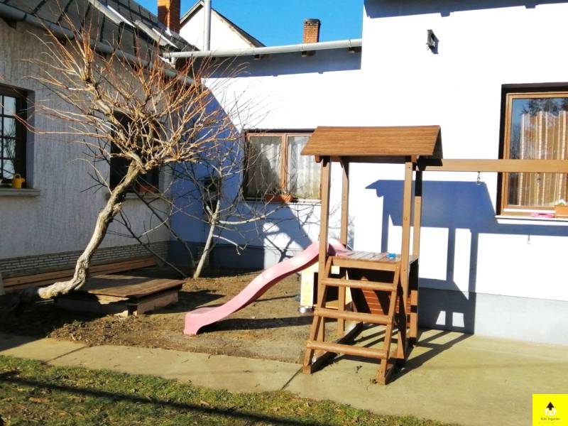Szombathelytől 8 km-re Nemesbődön kitűnő állapotú ingatlan együttes eladó. Az 1148 m2-es telken két különálló épület található. Az utcafronti családi ház 145 m2-es, amelynek a földszintjén található egy tágas nappali, egy konyha étkezővel, egy hálószoba, egy fürdőszoba WC-vel, egy közlekedő és egy kamra, valamint kapcsolódik hozzá egy fedett terasz. A tetőtérben szintén található egy nappali, 3 kényelmes hálószoba, egy fürdőszoba, külön wc és egy erkély.Az utcafronti házhoz kapcsolódik a másik 60 m2-es épület. A házban egy 28 m2-es szoba, egy konyha, egy étkező, egy fürdőszoba, egy wc található. Ez a ház tovább bővíthető a tetőtér beépítésével.Mindkét épület fűtése gáz és vegyestüzelésű kazánnal megoldott, és mindkét ingatlan külön mérőórákkal felszerelt. Jelenleg a két ingatlan között az átjárás lehetséges, de teljesen el is választható, valamint a bejárás telken belül teljesen elszeparált.Az udvara körbe kerített és gondozott. Itt kapott helyet egy kétállásos garázs, egy aknás garázs és egy tárolóhelyiség, melyben ipari áram is van.A településen kiváló a közbiztonság, jó a tömegközlekedés, könnyen elérhető városok (Szombathely, Sárvár, Bükfürdő) közelében helyezkedik el és az osztrák határ mindössze 25 km-re található.Az ingatlan frekventált elhelyezkedésének és kiváló az adottságainak köszönhetően kiválóan alkalmas két generáció összeköltözésére, vállalkozás vagy egyéb üzleti tevékenység végzésére. Remek befektetési lehetőség.A település a falusi CSOK programban része, így annak igénylésére van lehetőség, valamint az ingatlanra a CSOK+ hitelprogramban a garantált 3%-os támogatott hitel is igénybe vehető és a kettő akár igény szint kombinálható. A 4%-os vagyonszerzési illetéket nem kell megfizetni. |