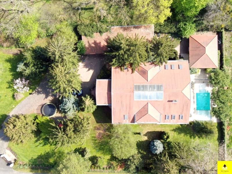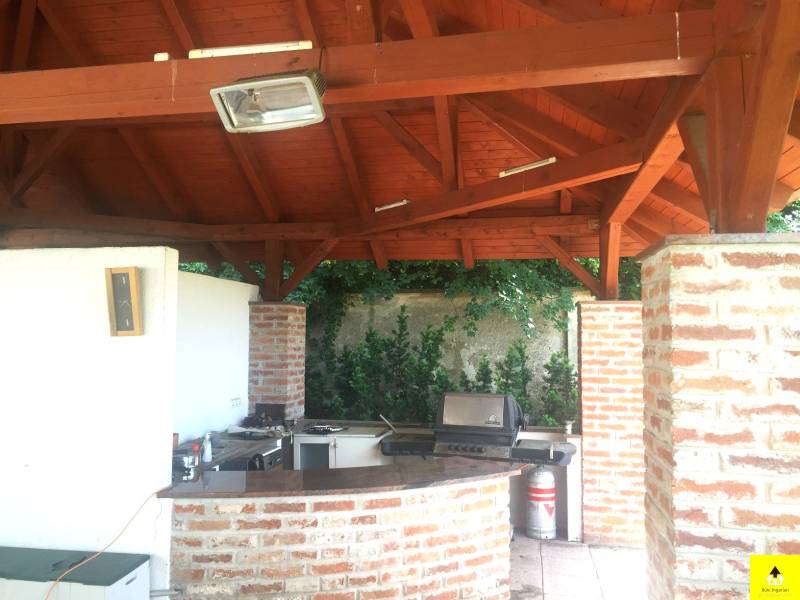 Nagyvonalú, reprezentatív otthon az osztrák határ közelében. Gondozott park által körülvéve, szomszédmentes övezetben áll ez a különleges családi otthon, ahol minden adott, hogy akár nagyobb társasággal is jól érezze magát. Egyedi adottságai és magas komfortszintje miatt kiváló otthona lehet.A kertben méretes, fedett medence, igényesen kialakított nyári konyha, fedett étkező rész, számos tároló, dupla garázs biztosítja, hogy rendezett környezetben pihenhessen. Az épület osztrák alpesi stílusban épült az 1900-as évek elején. Akkoriban a cukorgyár tiszti szállásaként használták. Az épületrőlA ház 340 m2-es földszintje egy hatalmas egybenyitott tér, melyben található egy nappali, egy étkező, egy konyha, melyből eljuthatunk a kinti medencéhez vezető szauna teremhez. Valamint ezen a szinten található még 2 hálószoba és egy tágas fürdőszoba.A földszint díszeként szolgáló impozáns lépcsőn felmenve a szintén 340 m2-es emeletre érkezünk, ahol közösségi térek fogadnak. Innen nyílnak a további helyiségek. Négy hálószoba, egy fürdőszoba, valamint egy tágas fedett terasz.A lakószobák mérete 30 és 35 m2 közöttiek és mindegyik klimatizált. A közösségi terek szintén klimatizáltak és a felülvilágító ablakok teszik világossá.Modernizálás Az ingatlan 1914-ben épült és 2003-ban teljeskörű felújításon esett át. Modernizálása a mai kor igényeinek megfelelően, de az eredeti stílushoz igazodva és hangulatának megőrzésére törekedve történt.A jelenlegi állapot kialakítására, amikor is a korábban egy szintes épület új födémmel, tetőtér beépítéssel két szintes lett. Az emelet a korábbi tetőtérben új födém kialakításával nyerte el mai állapotát. Ekkor került beépítésre az épület meghatározó építészeti eleme, a középen elhelyezett kovácsoltvas elemekkel díszített lépcső, valamint a megnyitott tetőszerkezet eredeti fém támasztó elemei. Mindemellett az épület gépészete és a szigetelése is a 21. századnak megfelelően újult meg.A világítás, az árnyékolók és a 2021 felújított fűtésrendszer kezelését okos otthon rendszer segíti. Az épület kamerarendszerrel, riasztóval és programozható kapcsolókkal (okosház - továbbfejleszthető BUS rendszer) felszerelt.A környezetrőlA birtokra igényes kovácsolt kapukon juthatunk be, melyhez privát úton lehet behajtani. A telek két külön bejárattal rendelkezik, az egyikben automata kapu működik.A 3790 m2-es terület körbekerített, parkosított és ősfák teszik árnyékossá. A 2000 m2-es zöld terület gondozásához 11 körös automata öntözőrendszer került kiépítésre, mely a vizet a helyi kútból veszi. Nagy érték a gondosan ápolt park, mely teljes védettséget nyújt, az amúgy is eldugott helyen lévő kúriának.A telken található egy 110 m2-es melléképület, egy 35 m2-es dupla garázs, egy 36 m2-es kerti épület és egy kültéri medence.A főépület egyik sarka alatt 25 m2-es borospince található, mely kiválóan alkalmas bor tárolásra, de egy kis elvonulós borozgatásra is ideális. Ezen a részen kapott helyet egy szauna, szolárium és zuhanyzó helyiség is, valamint innen irányítható a kültéri medence gépészete.Alapterület:• 340 m2 x 2 (földszint + emelet)Szobák száma:• Fsz: 2 • Emelet: 4Fürdőszobák, WC-k:• Fsz: fürdőszoba, WC-vel, bidével gőzkabinnal + különálló WC• Emelet: fürdőszoba, WC-vel, bidével• Kert: WCFűtése: • Gázzal + Inverteres klíma (hőcserélős)• Vaillant EcoTec kazán (idei) + medence kör.• Padlófűtés külön körön alul-felül + radiátorokMedence:• 8.48 X 4.5 méter• 58 köbméter• WaterAir rendszerrelOkosház, biztonságtechnika:• riasztó• programozható kapcsolók (okosház - továbbfejleszthető BUS rendszer)• kamera rendszer• 11 körös öntözőrendszer fúrt kúttalGarázs:• 36 m2 (2 autó)Fedett terasz:• 56 m2• infra fűtés• bárpult• kültéri konyha kialakításMelléképület: • 110 m2, 4 különválasztott, külön bejárattal rendelkező helyiségből áll |