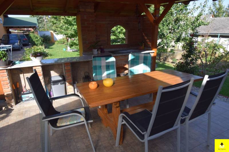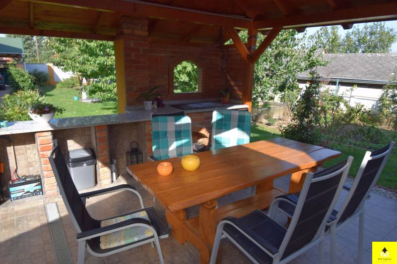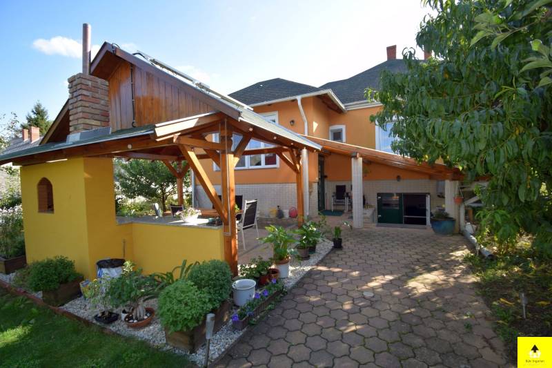 Csepregen a térség legdinamikusabban fejlődő kisvárosában kitűnő állapotú családi ház eladó.Az ingatlan modern napelem rendszerrel felszerelt, homlokzata szigeteléssel ellátott és a nyílászárói szintén hőszigeteltek. A napelemrendszer a ház teljes energiaszükségletét kielégíti, valamint a korszerű hőszigetelési egységeknek köszönhetően a fenntartási költség minimális.A telken további hálózattól független szigetüzemű napelemek kerültek kiépítésre akkumulátorokkal, ezért áramszünet nincs. Az épület fűtésére több megoldás is rendelkezésre áll: elektromos fűtőpanelek, vegyestüzelésű kazán, radiátoros hőleadással és a nappaliban egy egyedi tervezésű cserépkályha is rendelkezésre áll.A ház 50 m2-es szuterén részén, egy 35 m2-es nyárikonyha található, ami külön bejárattal rendelkezik. Továbbá ezen a szinten található a kazánház és egy tüzelő tároló.A 100 m2-es lakótérben egy tágas nappali, egy konyha-étkező, 2 hálószoba, egy fürdőszoba, egy előszoba és egy közlekedő található.Az 920 m2-es telken egy fedett kocsibeálló és egy 30 m2-es különálló házikó is található. Ebben a házikóban egy amerikai-konyhás nappali, egy hálószoba egy fürdőszoba került kialakításra. A házikó teljes tetőterében pedig egy óriási hálószoba található, beépített szekrényekkel. A házikó fűtése elektromos és itt is található egy szép cserépkályha, ami az egész házat befűti.A kert gyümölcsfákkal és dísznövényekkel beültetett. Itt található egy hangulatos, fedett kerti kiülő, épített grillezővel és előkészítő pulttal.Az ingatlan körbekerített és két utcáról is megközelíthető.Az ingatlan ára euróban fizetendő.Az ingatlan ára: 240.000 Euro |