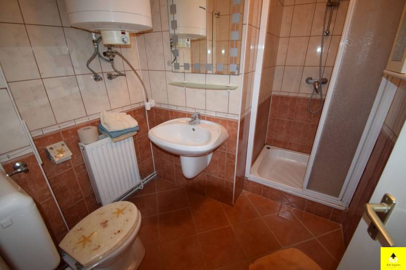 Keszthelyen a Balaton-parttól mindössze 5 percre sétára helyezkedik el az ingatlan. Az ikerház 4 szinten 200 m2 alapterületű.A szuterén és a földszint, valamint a felső két szint külön-külön helyrajzi számokon szerepelnek.Minden szinten egy szoba, egy konyha és egy fürdőszoba található. A szuterén részhez kapcsolódik egy tágas terasz és a többi szinthez erkélyek, kilátással a Balatonra. A szintek helységeinek az elosztása tágas és kényelmes, terei világosak. Az alsó két szint fűtését gázkonvektorok, míg a felső két szint fűtését gázcirkó biztosítja. Az épület nyílászárói hőszigeteltek.Az ingatlanhoz 440 m2-es telek tartozik, így a parkolás a telken belül megoldott.A befektetésben gondolkodóknak remek lehetőség, mivel a térségben óriási igény van az ingatlan bérlésre.Kitűnő választás azoknak, akik állandó lakhatásra keresnek ingatlant, de saját részre nyaralónak is kiválóan alkalmas. |