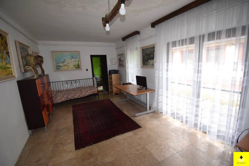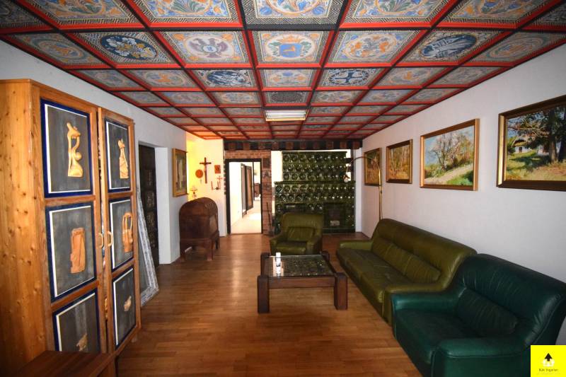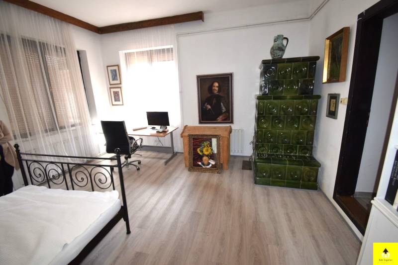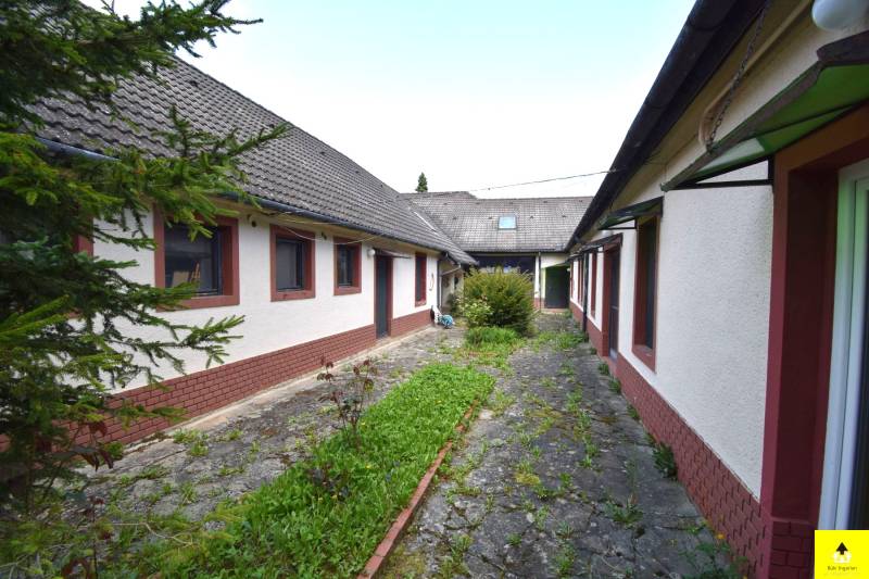 Eladó egy egyedülálló hangulatú családi ház Cák bájos településén, 250 m²-es alapterülettel, beépített tetőtérrel és különleges művészi részletekkel.A ház kiváló szerkezeti állapotban van, tetőszerkezete Bramac cseréppel fedett, ami időtálló védelmet biztosít. A tetőtér beépített, kivéve a műterem fölötti részt, ahol nyitott, látványos fedélszék emeli ki a belső tér esztétikumát és tágas érzetét. Az épület egy része alatt pince található, amely kiváló lehetőséget nyújt tárolásra vagy akár borospince kialakítására is.Az ingatlan Cákon található, a Kőszegi-hegység oldalában, gyönyörű természeti környezetben. A csendes, nyugodt falu tiszta levegője és békés hangulata ideális választás azok számára, akik nyugalomra vágynak, ugyanakkor fontos számukra Kőszeg és Szombathely közelsége.A ház két különálló, de harmonikusan kapcsolódó egységből áll, amelyek akár külön is használhatók:• A bal oldali lakótér egy tágas dolgozószobát, két hálószobát, egy konyhát, étkezőt, fürdőszobát és közlekedőt foglal magában.• A jobb oldali szárnyban egy 58 m²-es műterem, egy 57 m²-es nappali, egy hálószoba és egy fürdőszoba található. A műterem különösen ideális művészeknek vagy kreatív tevékenységhez. Az épület egyik igazi különlegessége a festett kazettás mennyezet, amely egyedi, művészi hangulatot áraszt.A két épületrészt egy hatalmas, zárt kapualj köti össze, amely nemcsak karakteres térkapcsolatot teremt, hanem több autó kényelmes és biztonságos parkolását is lehetővé teszi. A kapualj fölötti tetőtér szintén beépített, így további hasznos élettérként szolgál.A ház egy zárt, intim udvart ölel körbe, amely biztosítja a teljes nyugalmat és privát szférát. Két jó állapotú fatároló is rendelkezésre áll, amelyek praktikus megoldást nyújtanak a tárolásra. |