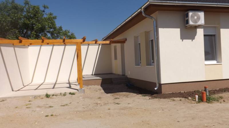 Új Építésű Ikerház HÁTSÓ LAKÁSA Eladó Lajosmizse csendes utcájábanKiváló lehetőség várja Önt Lajosmizsén!Eladó egy új építésű ikerház, mely egy modern és kényelmes otthont kínál a családjának. Legyen ennek az ingatlannak az első tulajdonosa! Főbb Jellemzők:Lakóterület: Az ikerház 111 négyzetméteres lakóterülettel rendelkezik, ami tökéletes otthont biztosít a mindennapi élethez.A két házat egy pergola köti össze, mely egy autó számára kényelmes parkolást biztosít. Ebből könnyen lehet zárt garázst varázsolni.Kert: A kb. 600 négyzetméteres kert ideális helyszínt nyújt a kikapcsolódásra és a szabadidős tevékenységekre.Nappali+4 szobás elrendezés: A tágas nappali és négy hálószoba lehetővé teszi, hogy minden családtag kényelmesen elférjen és otthonosan érezze magát. A szobák burkolata laminált parketta, a többi helyiség egységesen kerámia.Az ingatlan tégla falazatú, szigetelt, műanyag nyílászárós, padlófűtéses.A nappaliban, és minden hálóban hűtő-fűtő klíma is fel van szerelve.A H-tarifa helye is megvan, be lett kábelezve, megvan az óra helye is, csak meg kell igényelni. Az ingatlan környezete nyugodt és barátságos, kiváló választás lehet családoknak és befektetőknek egyaránt.Ne hagyja ki ezt a fantasztikus lehetőséget! Ez az új építésű ikerház ideális választás lehet azoknak, akik egy modern és kényelmes otthont keresnek egy kellemes, csendes környezetben.Ha további információra van szüksége vagy szeretné megtekinteni az ingatlant, kérjük, lépjen kapcsolatba velem ! A vételár tartalmazza az utcai kerítést, az elektromos kaput, a kocsibeálló, és járda térkövezését, és még a postaládát is.Minden ablak redőnnyel ellátott lesz, helyiségenkét egy ablak szúnyoghálóval felszerelt. |