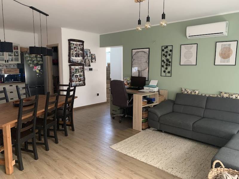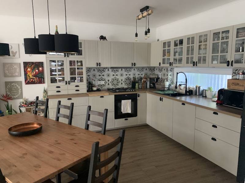 Eladásra kínálunk egy 2021-ben épült, újszerű állapotban lévő, igényes, otthonos családi fészket, Dabas egyik legkedveltebb részén. A városban pár perces sétára könnyen elérhetőek óvodák, iskolák, egészségügyi intézmények és különböző élelmiszerboltok (Tesco, Lidl, Penny, Aldi).Főbb jellemzők:119 m²-es lakótér: 4 hálószoba, amerikai konyhás nappali, beépített és gépesített konyhával, galéria, kamra.Fürdőszobák: 2 fürdőszoba, lent zuhanyzóval, emeleten fürdőkáddal és zuhanyzóval, 3 wcEnergiaosztály: A++.Fűtés: Háromféle (gázkazán, hőcserélős indirekt tároló, 5 hűtő-fűtő klíma).Napelemek: 10 db (4 kW), + 8 kW-os inverterrel, így még bővíthető isKültéri extrák:Két terasz (16,43 m² és 4,4 m²) a pihenéshez.Parkosított kert grillező résszel.15 m²-es mobil műhely tárolóval (az ár tartalmazza).Műszaki adatok:60 cm beton sávalap, 30 cm vastag LEIER teherhordó falak.20 cm hőszigetelés, hőszigetelt, háromrétegű üvegezésű nyílászárók redőnnyel és szúnyoghálóval. |