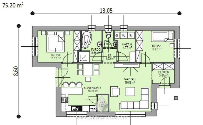 Eladó új-építésű ház BallószögAz ár kulcsrakész állapotban történő átadással értendő és a telek árát is tartalmazza!Eladásra kínálunk egy napelemmel felszerelt 75 m2-es családi ház projektet Ballószög új-építésű részén 541 m2-es közművesített telken. Mire elég a házra felszerelt napelem? A teljes ház egész évben történő felfűtéséhez 21-22°C-on tartva. A további felszabadult energiát a rendszer visszatölti az áramhálózatba, melynek okán további 40-60%-os áramszámla csökkenés, vagy akár teljes energiamentesség eredményezhető.Az elkészülési idő garantált 10 hónap!A családi ház nettó alapterülete 75 m2, amely tartalmaz:– 3 szobát (amerikai konyha-nappali-étkező + 2 hálószoba);– 1 fürdőszobát;– 1 WC-t;– kamrát;– háztartási helyiséget;– és egy előszobát.Műszaki tartalom:– Teherhordó falazat: Wienerberger Profi 30 K klíma tégla– Homlokzati hőszigetelés: 15 cm homlokzati hőszigetelés– Tetőhéjazat: Bramac vagy Terrán tetőcserép– Külső nyílászárók: 3 réteg üvegezésű 6 légkamrás Marshall Gealan külső nyílászárók– Válaszfal: Isover Akusto hangszigetelt válaszfalak– Gépészet:(a) Napelem** + gáz fűtés Ariston CLAS ONE 24 kW vagy Bosch Condens 3000 24 kW kondenzációs gázkazán (padlófűtéssel)(b) Napelem** + infra fűtés (padlófűtéssel)– Hidegburkolat választható: 8.500 Ft / m2 (bruttó)– Melegburkolat választható: 6.500 Ft / m2 (bruttó)– Szaniterek választható: (kád, zuhanykabin, csaptelep stb.) 600.000Ft-ig*Az ár kulcsrakész állapotban történő átadással értendő, konyhabútor és lámpatestek nélkül!**A napelem mennyisége az épület hasznos területének függvénye!Használja ki Ön is a Babaváró hitel nyújtotta lehetőségeket! Keressen ingyenes tanácsadásért hogy megtudjuk pontosan milyen lehetőségei vannak az otthon teremtésre!Ha a neten nem találja álmai otthonát, ne aggódjon, mi megtaláljuk Önnek! Amennyiben finanszírozásra is szüksége van a vásárláshoz, vagy ÁLLAMI TÁMOGATÁST is szeretne kapni, esetleg CSOK-ot vagy BABAVÁRÓ-t igényelne, ne aggódjon, BANKCENTRUMUNK 30 bank ajánlatából kiválasztja Önnek a LEGJOBB megoldást! Ami megoldható azt mi megoldjuk!Hívjon bizalommal!Horváth JózsefprojektmenedzserKMUJ809/16 |