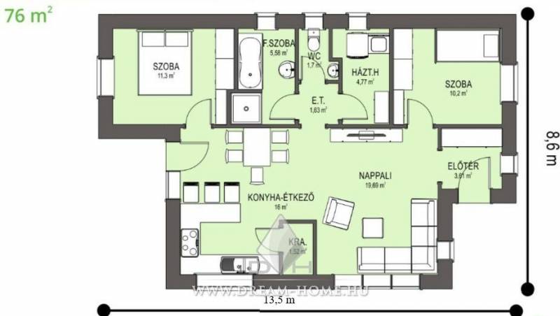 Ballószögi családi ház idei átadással eladóAz ár kulcsrakész állapotban történő átadással értendő és a telek árát is tartalmazza!Eladásra kínálunk egy napelemmel felszerelt 76 m2-es családi ház projektet Ballószög új-építésű részén 537 m2-es közművesített telken. Mire elég a házra felszerelt napelem? A teljes ház egész év-ben történő felfűtéséhez 21-22°C-on tartva. A további felszabadult energiát a rendszer visszatölti az áramhálózatba, melynek okán további 40-60%-os áramszámla csökkenés, vagy akár teljes energiamentesség eredményezhető.Az elkészülési idő garantált 10 hónap!A családi ház nettó alapterülete 76 m2, amely tartalmaz:– 3 szobát (amerikai konyha-nappali-étkező + 2 hálószoba);– 1 fürdőszobát;– 1 WC-t;– kamrát;– háztartási helyiséget;– és egy előszobát.Műszaki tartalom:– Teherhordó falazat: Wienerberger Profi 30 K klíma tégla– Homlokzati hőszigetelés: 15 cm homlokzati hőszigetelés– Tetőhéjazat: Bramac vagy Terrán tetőcserép– Külső nyílászárók: 3 réteg üvegezésű 6 légkamrás Marshall Gealan külső nyílászárók– Válaszfal: Isover Akusto hangszigetelt válaszfalak– Gépészet:(a) Napelem** + gáz fűtés Ariston CLAS ONE 24 kW vagy Bosch Condens 3000 24 kW kondenzációs gázkazán (padlófűtéssel)(b) Napelem** + infra fűtés (padlófűtéssel)– Hidegburkolat választható: 8.500 Ft / m2 (bruttó)– Melegburkolat választható: 6.500 Ft / m2 (bruttó)– Szaniterek választható: (kád, zuhanykabin, csaptelep stb.) 600.000Ft-ig*Az ár kulcsrakész állapotban történő átadással értendő, konyhabútor és lámpatestek nélkül!**A napelem mennyisége az épület hasznos területének függvénye!Használja ki Ön is a Babaváró hitel nyújtotta lehetőségeket! Keressen ingyenes tanácsadásért hogy megtudjuk pontosan milyen lehetőségei vannak az otthon teremtésre!Ha a neten nem találja álmai otthonát, ne aggódjon, mi megtaláljuk Önnek! Amennyiben finanszírozásra is szüksége van a vásárláshoz, vagy ÁLLAMI TÁMOGATÁST is szeretne kapni, esetleg CSOK-ot vagy BABAVÁRÓ-t igényelne, ne aggódjon, BANKCENTRUMUNK 30 bank ajánlatából kiválasztja Önnek a LEGJOBB megoldást! Ami megoldható azt mi megoldjuk!Hívjon bizalommal!Horváth JózsefprojektmenedzserKMUJ811/676 |