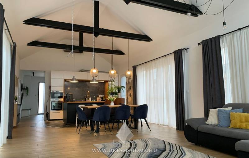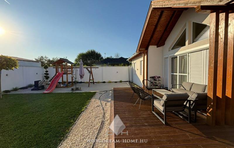 Eladó egy különleges otthon, amely nem csupán egy ház, hanem egy életstílus, ahol a modern technológia és a fenntarthatóság találkozik a kényelemmel. Ez a 2019-ben használatba vett ingatlan olyan megoldásokat kínál, amelyek nemcsak a jelen, hanem a jövő igényeinek is tökéletesen megfelelnek. Ha Ön egy olyan otthonra vágyik, ahol egyszerre érezheti a kényelemet és az energiatakarékosság nyújtotta előnyöket, akkor ez a ház minden elképzelését felülmúlja.Képzelje el, hogy reggelente egy, parkosított kertre ébred, ahol minden növény gondosan ápolt, az öntözőrendszer gyönyörű és automatikusan biztosítja a megfelelő vízellátást. A terasz alatt egy fúrt kút rejtőzik, amely szinte észrevéve látja el a kertet mindig, így a növények frissen zöldellnek. Az előkertben 4-8 autó kényelmesen elfér a térkövezett parkolóhelyeken, így nem csak Önnek, de vendégeinek is elegendő helyet biztosít.Ahogy belép a házba, egy tágas, világos nappali-konyha-étkező tér fogadja, amely az emelt belmagasság és a látszó fa tartószerkezet miatt különleges, egyedi atmoszférát áraszt. A napfény szinte árad a nagy üvegfelületeken keresztül, melegséget hozva a belső terekbe, mindig be a modern kialakítás és a természetes elemek harmonikus együttes teremt otthonos légkört.A ház minden részletében ott van a fenntarthatóság és az energiatakarékosság gondolata. A mennyezetbe épített 40 cm vastag kőzetgyapot, a 15 cm-es homlokzati és a 12 cm-es aljzatszigetelés gondoskodik arról, hogy a hőszigetelés mindig optimális legyen. A padlófűtés egész házban – sőt, a garázsban is – egyenletes hőérzetet biztosít, csak az alacsony havi fűtési költséget, mindössze 14.000 forint.Az ingatlan legnagyobb előnye a megújuló energiaforrásokban rejlik. A 15 kW-os hibrid inverteres napelemrendszer nemcsak a ház teljes energiaigényét fedezi, de az elektromos autók számára is kiépített töltőhálózat áll rendelkezésre. Így Ön akár teljesen zöld módon közlekedhet, anélkül, hogy aggódnia kellene az energiaellátás miatt, hiszen a házban 3x32A teljesítmény áll rendelkezésre.Az ingatlan minden részlete a kényelem és a biztonság szolgálatában áll. Az elektromos, alumínium redőnyök nemcsak a nyári meleg ellen védenek, hanem fokozzák a hőszigetelést is, és biztosítják a privát szférát. A hálószobában inverteres klímák gondoskodnak a kívánt hőmérsékletről, a légszűrők pedig megszűrik a port és a pollent, hogy Ön mindig tiszta, friss levegőben pihenhessen.Ez az otthon tökéletes választás mindazok számára, akik olyan házat keresnek, amely egyszerre modern, energiatakarékos és fenntartható. Egy hely, ahol minden apró részlet átgondolt, ahol a technológia és a természet tökéletes összhangban van egymással. Ha Ön a jövő otthonát keresi, hosszú távon is élvezheti a kényelmet és a nyugalmat, akkor ez az ingatlan mindazt megadja, amire csak vágyik.Ismerje meg személyesen is ezt az energiatakarékos álomotthont – vegye fel velem a kapcsolatot!Harmath-Hegedűs Anikó+36 20 351 8852KMUA1180 |
