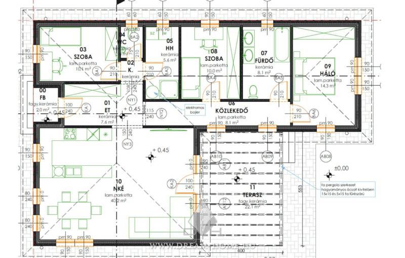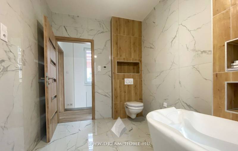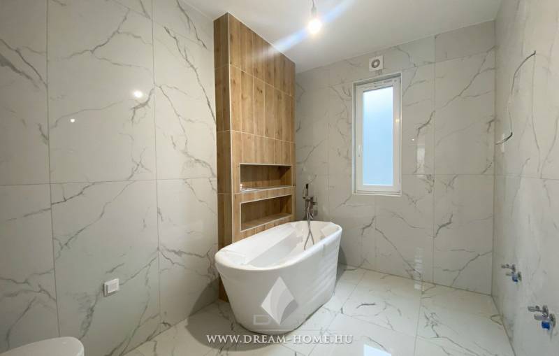 Eladásra kínálok egy új építésű, 107,8nm hasznos alapterületű családi házat Kecskemét - Kiskertváros térségben.Ha olyan ingatlant keres, ami ÚJ, KÉSZ HÁZ, és NEM KELL KÖLTENI:-kerítésre,-elektromos kapura,-térkövezett udvarra (130nm térkő),-burkolt teraszra (20nm),-riasztórendszerre,-magas rezsiszámlákra,-3 autó számára biztosított fedett beállóra,és a MINŐSÉG és FENNTARTHATÓSÁG jegyében épült, akkor Ön megtalálta a keresett ingatlant.Azonnal költözhető!-3 szoba, plusz hatalmas, amerikai stílusú nappali-konyha-étkező (40,2nm)-Helyiségenkénti inverteres, hűtő-fűtő klíma-Helyiségenként padlóérzékelős, wifi-s termosztáttal szabályozható elektromos padlófűtés-10kW telepített napelem, szaldós elszámolássalA ház 2024. augusztusában kapta meg a szakhatóságtól a használatba vételi engedélyét.Csendes, nyugodt környezetben valósult meg, közel a városhoz, de valóban kertvárosias övezetben.A belső színek kiválasztásánál a szempont a jellemzően jó hangulatot árasztó, de nem tolakodó enteriör megalkotása volt a szempont, a ház belső jellegéhez szinte bármilyen, saját egyéniségünket kifejező bútorzat tökéletesen összehangolható.Alaprajza jó átgondolt, két gyermekszoba, és egy nagyobb, elszeparált szülői háló alkotja a rajz vízszintes gerincét; a kialakított közlekedőre a teraszról bejutő fény adja a természetes megvilágítást.A közlekedőn a beépített mennyezeti és fali dekor LED-világítás, illetve éjszakai kisérő fények a padlószinten fokozzák a komfortérzetünket.Különálló WC, a háztartási helységben egy épített zuhanyzó, és fürdőszoba WC-vel segítik a mindennapok praktikumát.A hatalmas nappali-konyha-étkező a család apraja-nagyjának a találkozópontja, de szinte bármekkora baráti összejövetelnek is helyet tud adni.Az elektromos padlófűtés, és a tekintélyes mértékű 10kW-os napelemrendszer szaldós elszámolással kombinálva garantálja a közel nullához konvergáló havi rezsiköltséget, melyhez a közel 30 cm-es, teljesen hőszigetelő anyagból kivitelezett falazat is nagymértékben hozzájárul.A rezsiköltség szinte csak a vízhasználat költsége.A telek mérete 719nm, kiválóan alkalmas a saját elképzelésünk szerinti kültéralakításhoz, medence, sütögető, stb-stb létrehozásához.3 fázisú villanylekötés; mely kiválóan alkalmas elektromos autó töltésére is.Optikai kábeles internetelérés!Ha elnyerték a tetszését a fentebb olvasottak, keressen bizalommal egy előre egyeztetett megtekintési időponttal kapcsolatban!Lévay Márton, +,Dream-Home Ingatlan és Új Ház Építő Centrum, 6000 Kecskemét, Kisfaludy u. 5. I.em. 109.ELKM010416 |