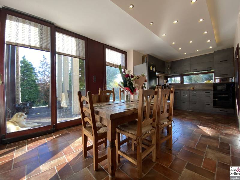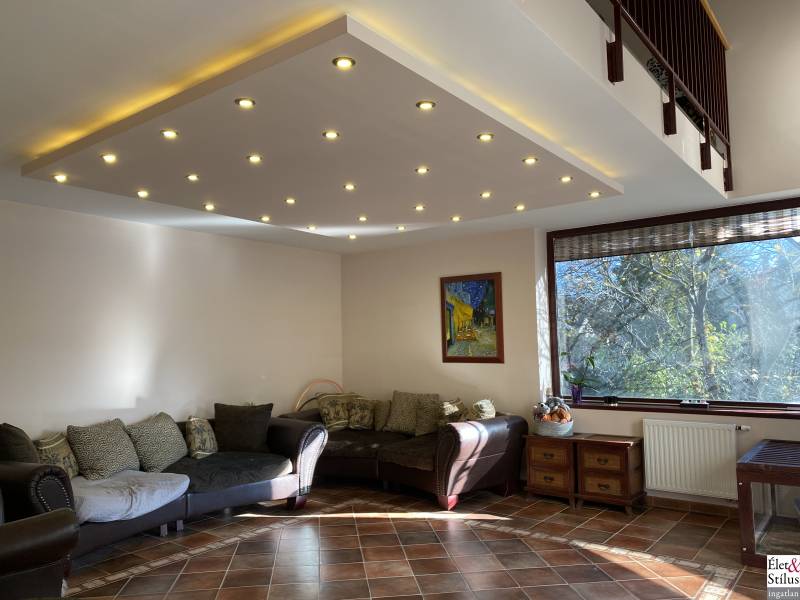 Mediterrán légkör, Üröm Rózsadombján!Üröm legkedveltebb részén, a Táborföldi lakóparkban, egy több mint 300 nöles telken, eladó egy 2005-ben épült, 2022-ben felújított, 160 nm-es, kétszíntes, 5+1 szobás, családi ház, 16 nm-es garázzsal, beállóval, 29 nm-es terasszal, kis fáskamrás faházzal és rengeteg extrával.Terméskővel borított, mediterrán hangulatot idéző házunk, természetesen, teljesen körbejárható.Óriási, zöldterületünk, gazdag növényzettel, hatalmas fenyőkkel tarkított.Házunkba, tiffany üveggel díszitett bejárati ajtónkon keresztül léphetünk.Előszobánkból, jobbra vendégszobánkba és az alsó szinten található, zuhanyzóval, toalettel felszerelt, dupla bejáratú fürdőszobánkba, balra háztartási helyiségünkbe, gardróbunkba és kazánhelyiségünkbe juthatunk, illetve 16 nm-es garázsunk is, az említett helyiségek, másik oldalán található.Tovább haladva, több mint 60 nm-es, konyha-étkező-nappali együttesünk fogad minket.Új konyhánk, étkezőnk és óriási nappalink fényárban úszik a nagy, üvegfelületeknek, minőségi, fa nyílászáróinknak köszönhetően, ahonnan akár étkezőnkből, akár nappalinkból, tikfával borított teraszunkra is kiléphetünk.Az igényesen kialakított, átgondolt tereket, a funkcionalítás, a modern vonalvezetés hatja át.Belső lépcsőnkön keresztül, üvegtéglák mentén érkezünk felső szintünkre, mondhatni privát szféránkba.Közlekedőnkből, három különbejáratú hálószobába, melyből felnőtt hálónk, saját gardrobbal került kialakításra, káddal, zuhanyzóval felszerelt fürdőszobánkba, külön helyiségben található bidével is ellátott mellékhelyiségünkbe és dolgozószobánkba léphetünk.Exták terén, szó szerint a bőség zavarával küzdünk. Új, gépesített konyhánkban- amelyból külön kamrahelyiségünk is nyílik - beépített sütő, beépített mikró, 12 személyes mosogatógép, indukciós főzőlap, inox hűtő található. Háztartási helyiségünkben mosógép és szárítógép, szobáinkban rejtett és design világítás, ablakainkon elektromos redőnyök, tetőnkön napelemrenszer, vadonatúj kondenzációs kazán, A+ energetikai besorolás, minőségi beltéri ajtók, minden szobában légkondícionáló emeli a ház értékét, növeli az ottlakok komfortérzetét.Ritka nagy, szabályos, öntözőrendszerrel felszerelt kertünk, rengeteg lehetőséget rejt magában, legyen az, akár sportolás, sütés-főzés vagy éppen pihenés.A kertes házas környék lakói igényesek, a házak mívesek, a környezet csillagos ötös. Nem véletlenül nevezik a Táborföldi lakóparkot, Üröm Rózsadombjának.Tömegközlekedés szempontjából is el vagyunk kényeztetve, hiszen a 840-es és másik, közel féltucat busszal, többek között, akár a Göncz Árpád Városközpontba, akár az Eurocenter és környékére, átszállás nélkül eljuthatunk.Irányár: 225 millió forintSzaka József +36 30 691 0908Élet&Stílus IngatlanirodaTovábbi ingatlanokat a honlapunkon talál: eletstilusingatlan huENERGETIKAI TANÚSÍTVÁNY (zöldkártya ingatlanhoz)2012. január 1.-től a használt lakások adásvételénél is kötelező! Hívjon! Elkészítjük Önnek!ÜGYVÉD-0,7%Megbízható ügyvédre van szüksége? Irodánk ügyvédje a vételár 0,7 %-ért elkészíti az adásvételi szerződését. Ha kínálatunkból vásárol, akkor még ennél kedvezőbb is lehet ez a díj.LAKÁSBIZTOSÍTÁSIngatlant vásárolt? Vagy a régi biztosítását lecserélné? A Magyarországon tevékenykedő összes biztosító ajánlatai közül kiválasztjuk Önnek az árban és a szolgáltatás minőségében a leginkább megfelelőt. Mindezt teljesen ingyen.HITELCégünk hiteltanácsadója - a velünk leszerződött - Magyarországon található összes bank ajánlata közül megtalálja Önnek személyre szabottan a legjobbat!LAKBERENDEZÉSNincs ötlete, hogy mit lehetne kihozni a lakásából, hogyan lehetne újjá varázsolni? Mi segítünk Önnek!LAKÁSFELÚJÍTÁSMegbízható szakemberre lenne szüksége a lakásfelújításhoz? Nálunk megtalálja! |