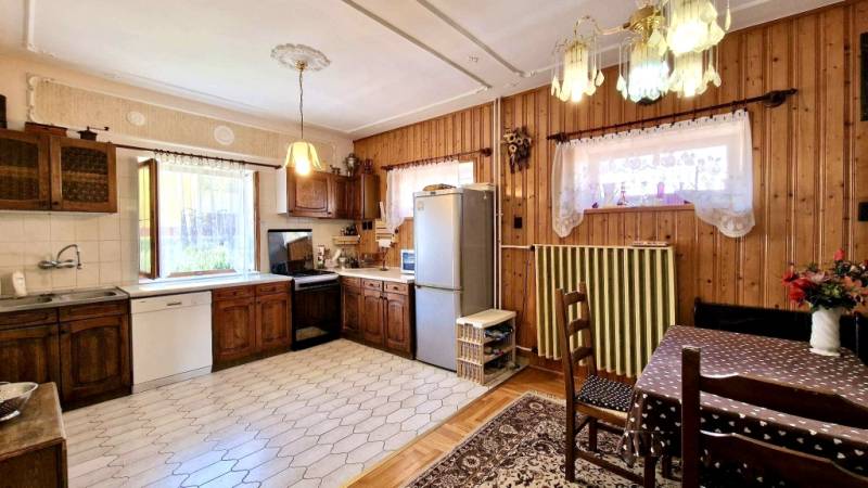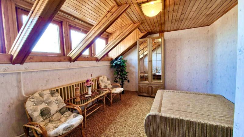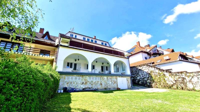 Tekintse meg és tegyen rá ajánlatot!Eladóvá vált Hévízen, a belvároshoz közel egy 390 m2 alapterületű 2023-ban szigetelt, 9 szobás nagyon jó állapotú családi ház PANORÁMÁS KILÁTÁSSAL és teljes bútorzattal, berendezéssel.Az 1995-ben épült, nagyon jó elosztású, tégla falazatú házban összesen 4 szint található beton födémmel elválasztva, amelyeket egy márványlépcsős lépcsőház köt össze az épületen belül. - Az alagsorban található 5 autó befogadására alkalmas fedett garázs, illetve a cirkó - gázkazán, amely a ház fűtésért felelős. - A földszinten található 3 szoba, 3 zuhanyzós fürdőszoba, konyha, egy kis fedett terasz, egy hatalmas panorámás fedett terasz, pince lejárati helyiség és közlekedő folyosó. - Az első emeleten - központi szint - található 2 hálószoba, egy nagy gépesített konyha - étkező, egy nagy fürdőkádas fürdőszoba, közlekedő folyosó és nagy nappali a hozzá tartozó hatalmas, fedett, panorámás terasszal. - A tetőtérben 4 hálószoba, 2 zuhanyzós fürdőszoba, 1 konyha és közlekedő folyosó található.A ház jelenleg 10 cm szigeteléssel rendelkezik, a nyílászárók részben fából, részben műanyagból készültek, az ablakok dupla üvegezéssel rendelkeznek.A meleg vizet 2 db villanybojler szolgáltatja.A tető szigetelt, BRAMAC tetőcserép fedéssel rendelkezik.A szobákban gyönyörű fa parketta burkolat, a többi helyiségben világos színű járólap került padló burkolására.Az épület minden közművel el van látva.Akiknek ajánlom: - nagycsaládosoknak - 2-3 generáció összeköltözésére - vállalkozás kialakítására - panzió nyitására - nyaralónak - befektetőknekvagy ezeknek a lehetőségeknek a kombinálására is.Az épület rengeteg lehetőséget rejt magában hihetetlen jó kialakításának és rendkívüli elhelyezkedésének köszönhetően.Az ingatlan per- és tehermentes, tulajdonlapja tiszta, azonnal birtokba vehető.A világhírű gyógyfürdőjéről híres, turisztikailag rendkívüli adottságokkal rendelkező Hévíz városa Zala vármegyében található, a Balatontól 8 km távolságra. Kehidakustány, Tapolca, Zalakaros, Sümeg, Tihany és a megyeszékhely Zalaegerszeg maximum fél óra autó út közelségben található.Amennyiben az Ingatlan felkeltette érdeklődését és szeretné megtekinteni, kérem keressen bizalommal.Irodánk ingyenes hiteltanácsadással és hitelügyintézéssel, kedvező díjszabású ügyvéddel és energetikai tanúsítvány elkészítésével várja Ügyfeleit. |