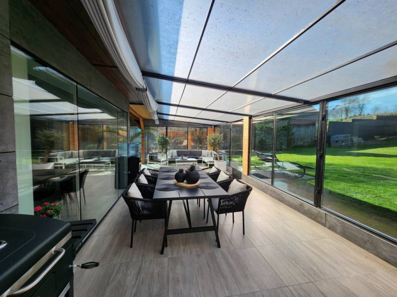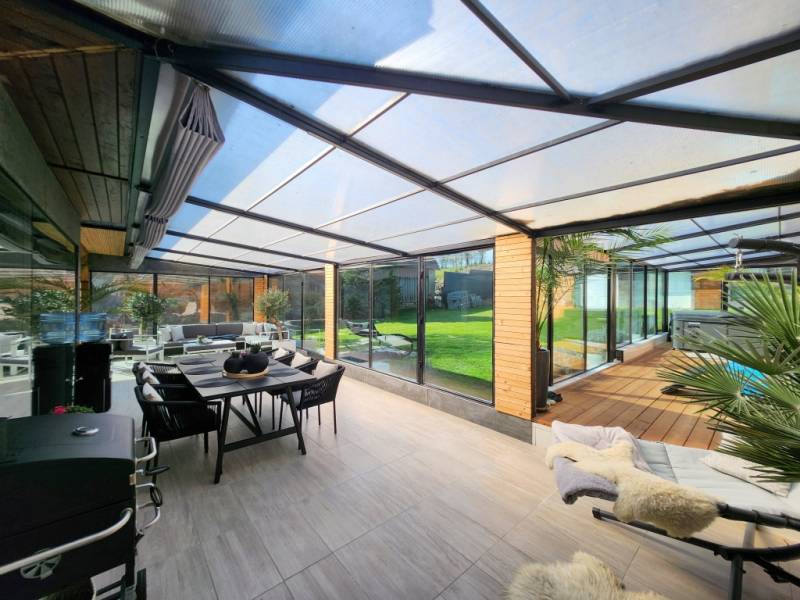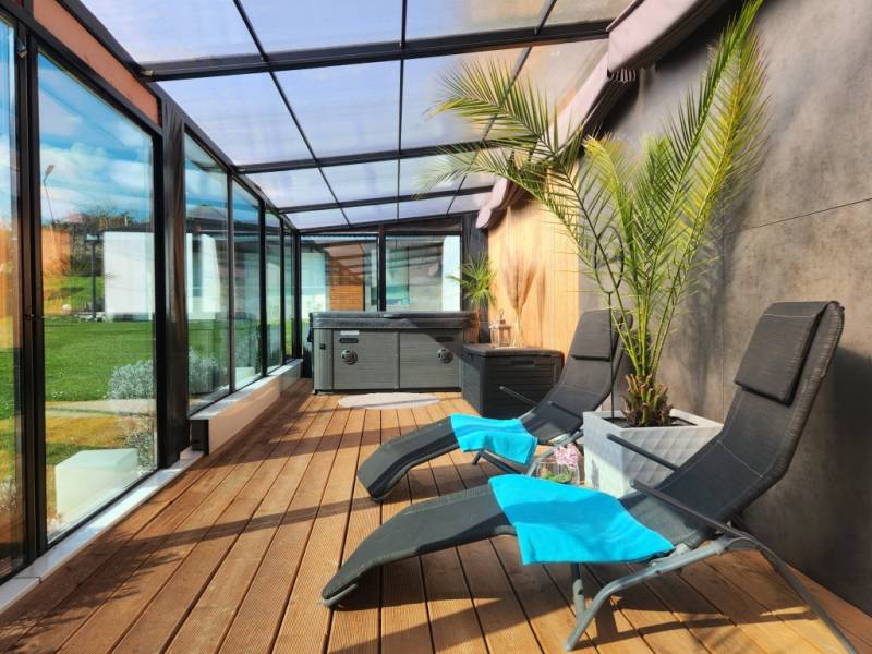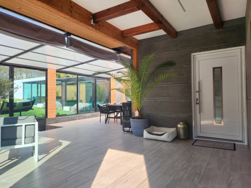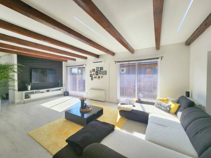 Letisztult ízlésvilágú, modern megjelenésű CSODAhely Zalaegerszegtől mindössze 13 km - re!Bak csendes zsákutcájában vált eladóvá KOMPLETT BÚTORZATTAL! ez az újszerű állapotú, minden igényt kielégítő, csodálatos milliőben található 120 m2 - es családi ház, egy 80 m2 - es páratlan hangulatú terasz ölelésében!Az otthon teljesen modern, ugyanakkor letisztult elemeket tükröz egyedi megoldásokkal, innovatív eszközökkel felszerelve, mely az itt élők biztonságát és maximális kényelmét szolgálja!Az ingatlan 120 m2 nagyságú, nappali - konyha - étkező együttes és kettő háló kialakítású, 80 m2 terasszal, dupla garázzsal, melynek folytatása a panorámás 3539 m2 nagyságú birtok felső része.A családi ház központi része egy színeiben is minimalizmust hangsúlyozó, magas fényű fehér konyha felsőkategóriás eszközökkel, konyhaszigettel, valamint az ehhez szervesen kapcsolódó gyönyörű, 31 m2-es nappali, melyben szintén visszaköszön a letisztult, modern designnak megfelelő bútorzat. Az itt élők kényelméért felel a fürdőkáddal és zuhanyzóval felszerelt fürdő, a kettő háló, elszeparált toalett, mosókonyha, spejz, valamint egy második \" cukrászkonyha\", mely szintén magas kvalitású, míg garanciális gépekkel és eszközökkel felszerelt. Csendes, árnyékolókkal ellátott 80 m2-es terasza pihenésre, családi összejövetelekre, kikapcsolódásra \" született\". Óriás üvegfelületei, kertre néző kilátása és a nyugalom, amely árad belőle, páratlan érzést képes nyújtani!A 2000 - es években gerendából épített Otthon újraalkotásánál a modern megjelenés, az évtizedeken át tartó problémamentesség és a kényelem jelentették a legfontosabb szempontokat.A maradéktalan komfortérzetért felel minden, ami távirányíttással vezérelhető - a kapu, a minden helyiségben megtalálható esztétikus LED világítás, az alumínium redőnyök, a kamerarendszer, a gáz - cirkó fűtés és a garázskapuk.A családi ház egyediségét sugallják az óriás üvegfelületek is, melyek a modern külsőn kívül a napfényes tereket is garantálják. A teraszon 6 helyen került toló rendszer beépítésre, a lakótérben a nyitható nyílászárók szúnyoghálóval is felszereltek. A fehér szín és letisztult arculat mellett karakteressé teszi a helyiségeket a szépen kezelt látszó gerenda, mely a homlokzaton és a teraszon használt fa borításokkal összhangban egy nyugodt, meleg érzést biztosít.Az épület egyedi megoldásai mellett a teljes, újszerű állapotú bútorzatra is felhívnám a figyelmet, mely az \"alap darabokon\" túl, a jakuzzit, grillt, kerti bútort, dekorelemeket, szőnyegeket is magába foglalja - így megtartva az összhangot, melyet a színek, az anyagok és azok harmóniája alkot.Belső esztétikáján és berendezésén kívül az épület tulajdonságai is kifogástalanok. A gerendákat csiszolták, egy Tirolból hozatott szerrel gondozták, majd 30 cm vastag szigeteléssel látták el. Aljzata, födéme szintén szigetelt, teteje cseréppel fedett. Falai fával és antracit panelekkel burkoltak, utóbbi teljes mértékben gondozásmentes.A birtok cca. 3000 m2 - e teljesen körbekerített, melyet a dupla garázsig térkő és élénk zöld gyep borít, felső része a környező erdőkre panorámàs. Ide egy 8 x 4 - es medence lett tervezve, melynek elkészítése elkezdődött, de befejezve már nem lesz, cserébe azonban az ehhez szükséges anyagok egésze az új tulajdonos birtokába kerül.Igazából mindegy, hogy óriás ablakaiba, látszó gerendáiba, \" jakuzzi sarkába\" vagy mérhetetlen nyugalmába szeret bele, mindenképp a legjobb választás lesz, hiszen letisztult színhasználatával, prémium burkolataival, praktikus vonásaival és klasszikus elemeivel egy modern megjelenésű, minden igényt kielégítő otthonnak lesz büszke tulajdonosa!Irányára: 146.990.000 Ft |