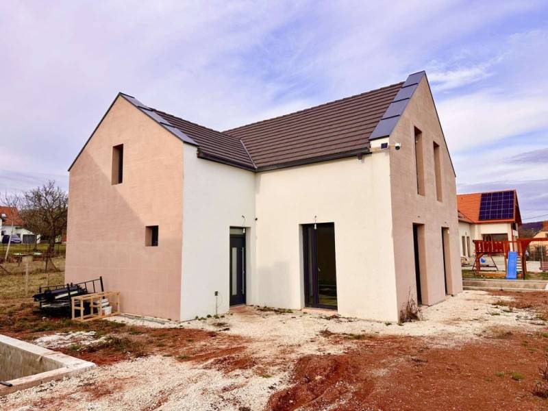 Település: FelsőörsA Balatontól csak négy, Veszprémtől hét kilométerre található Felsőörs, épített és temészeti kincsekben egyaránt gazdag települése. Szerencsés fekvése miatt a településre a bevándorlás jellemző, lakossága folyamatosan nő, az elmúlt évtizedben sok kisgyerekes család talált itt új otthonra.A Balaton felé lejtő lankák és észak-déli lefutású völgyek már az ókortól ideális termőhelyet biztosítottak itt a szőlőtermesztéshez, a borkultúra meghonosodásához.A épület:Földszintsz.: 107 nm, 4 szoba,10 + 4 nm terasz.Emelet: 87 nm, 3 szoba.A ház jellemzői: -0-as PTH falazat 15 cm-es grafitos hőszigeteléssel, minőségi vékonyvakolat, homlokzatburkolat - hő- és hangszigetelt minőségi nyílászárók- melegvíz ellátás hőszivattyús bojlerről- pollenszűrős levegő-levegő höszivattyús fűtési rendszer- telefonról vezérelhető, termosztáttal ellátott padlófűtés- telefonról vezérelhető, okos villany- és kamerarendszer- elekromokos redőnyök és kapu- prémium bejárati biztonsági ajtók- kültéri, hőszivattyúval működtethető, 3 x 8 méteres medence- kültéri esztétikus szaletli- hangulatos, tágas terasz- udvari, esztétikus viacolor burkolatú kocsibeálló- kiváló energetikai besorolás (alacsony rezsiköltség)- napelem kerül az épületre (villamosenergia számla pénzvisszatérítés)- kedvezményesen felvehető hitel (CSOK, zöldhitel)- választhatóak még: melegburkolatok 13.000 Ft/nm árban, beltéri ajtók 140.000 Ft/db árban, szaniterek, homlokzati színezésA további kedvezményelért, keressen minket bizalommal, örömmel állunk a szolgálatára!Szívélyes üdvözlettel,Tőkés Levente |