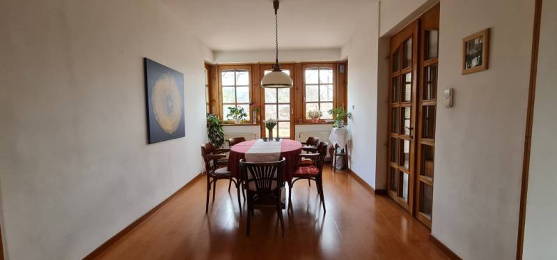 EGYEDI TERVEZÉSŰ CSALÁDI HÁZ IRÁNYÁRON !Sződliget csendes zöldövezeti, kertvárosi részén, exkluzív kivitelben egy 875 m2-es telken fekvő 170 m2-es családi ház eladó!A ház legfontosabb jellemzői:-1997- ben legjobb minőségű anyagokból, a tulajdonos egyedi tervei alapján épült - beton alapon 38-as phorotherm téglafalazat, betongerendás födémmel, Heraklith szigetelés, padlás és tető alatti felület 15 cm-es kőzetgyapottal szigetelt, OSB-vel burkolt- Az ingatlan fűtését a Viessman kondenzációs gázkazán a melegvizet részben a kazán, részben egy napkollektor biztosítja- A nappaliban hangulatos kandalló is található- A ház összes helyisége világos, K-i és D-i fekvésű - A nyílászárók minőségi fából készültek /alumínium redőny -szúnyoghálós/- A földszinten 1 szoba, nappali, étkező, konyha, spájz, fürdőszoba és WC, míg az emeleten 4 szoba, nappali, fürdőszoba és loggia található - Az emelet légkondicionált.- A belsőterek kényelmét számos beépített szekrény biztosítja- A ház alatt, lépcsőházból elérhető, 24 nm-es pince található- 2 db fedett terasz tartozik az ingatlanhoz.- A kertben kemencesütő-grillező található, a kerti locsolását betongyűrűs kút szolgáljaKözlekedés: 5 perc kényelmes sétával vonat , busz, autópálya, iskola, óvoda, közért, közintézmények percek alatt elérhető!Az ingatlan tehermentes, előzetes egyeztetés után bármikor megtekinthető.Igény esetén teljes körű, DÍJMENTES hitelügyintézéssel állunk ügyfeleink rendelkezésére.CUSTOM DESIGNED DETACHED HOUSE AT GUIDE PRICE !In Sződliget , in a quiet garden-urban area with greenery , an exclusive design 170 m2 detached house on a plot of 875 m2 for sale at a guide price !The main features of the house are:-1997- built with top quality materials according to the owner\'s individual plans -The house was built on a concrete base, 38 phorotherm brickwork, concrete slab with concrete beams, Heraklith insulation, attic and roof insulated with 15 cm rock wool, covered with OSB.-The heating of the property is provided by a Viessman condensing gas boiler, the hot water is provided partly by the boiler and partly by a solar collector.-The living room also has a cosy fireplace.-All rooms of the house are bright, facing E and S.-The ground floor has 1 room, living room, dining room, kitchen, pantry, bathroom and toilet, while the first floor has 4 rooms, living room, bathroom and loggia.- The interiors are furnished with several built-in wardrobes.- There is a 24 sqm cellar under the house , accessible from the staircase.- 2 covered terraces belong to the property.In the garden there is a barbecue and a concrete ring well for watering the garden.Transportation: 5 minutes comfortable walk to the train, bus, highway, school, kindergarten, grocery store, public amenities within minutes!The property is unencumbered, after prior consultation available for viewing at any time.If required, we are at the disposal of our customers with full, FREE credit management. F.L |