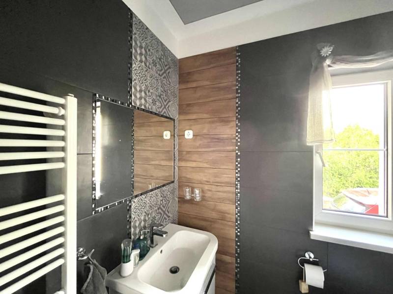 Zöld oázis - a nyugalom szigete három szinten, Szombathely belvárosában.Szombathely belvárosának egyik legcsendesebb, forgalomtól mentes részén, a Bartók Béla körúton kínálunk megvételre egy igazán különleges ingatlant, ahol a városi kényelem és a kertvárosi idill tökéletes összhangban van jelen.Az 1996-ban épült, bruttó 200 m²-es családi ház egy 720 m²-es, gondosan ápolt telken helyezkedik el, ahol a zöld növényzet, a fák és a hangulatos kerti sütögető intimebbé, barátságosabbá teszik a mindennapokat. A kert igazi oázis: ideális pihenésre, családi összejövetelekre vagy akár nyári estéken egy pohár bor melletti kikapcsolódásra.Az ingatlan főbb jellemzői:- Három szint, praktikus elrendezés- Tágas nappali közvetlen kertkapcsolattal- Nagyméretű, világos konyha udvari kilátással- Étkező teraszkapcsolattal- Négy hálószoba, melyek közül az egyik erkélyes- Külön gardrób- Két fürdőszoba: egy káddal, egy tusolóval- Fogadótér mindhárom szinten – így akár többgenerációs családnak is ideális- A pinceszinten hobbiszoba, mosókonyha, kamra, kazánház- Garázs és gépkocsibeálló is biztosítja a kényelmes parkolástFűtés:A földszinten padlófűtés, melyet gáz-cirkó kazán és kandalló biztosít, míg az emeleti helyiségekben radiátorok gondoskodnak a kellemes hőmérsékletről.Elhelyezkedése egyedülálló:Bár a város szívében található, mégis rendkívül csendes. Néhány perc alatt elérhető a Csónakázó-tó, iskolák, óvodák, piac, színház és számos szolgáltatás – mindez úgy, hogy az utca zaja már nem ér el a telekre.Az ingatlan bútorozatlanul kerül értékesítésre, így új tulajdonosa saját stílusára formálhatja.Amennyiben egy értékálló, nyugodt környezetben elhelyezkedő, jól átgondolt elosztású otthont keres, hívjon bizalommal. |