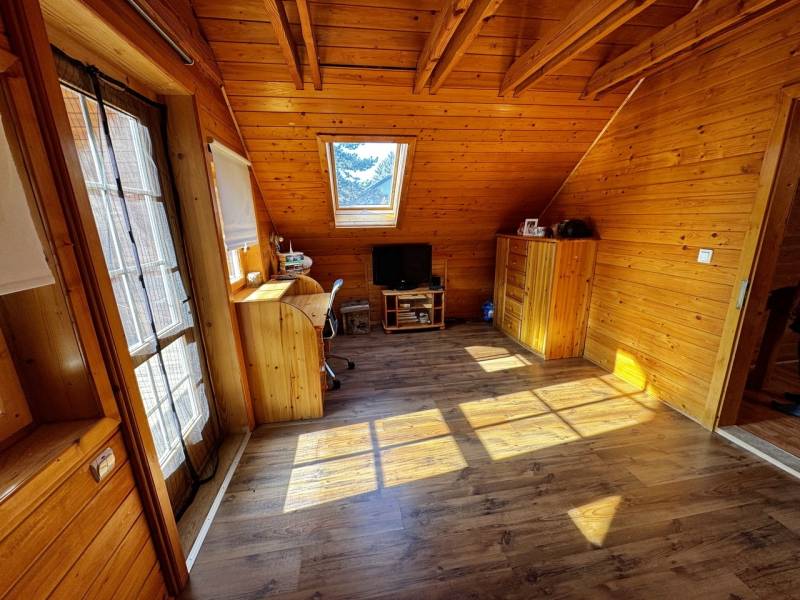 JÓ ÁLLAPOTÚ CSALÁDI HÁZ DUPLA TELKEN ELADÓ NAGYKOVÁCSIBAN!116 nm, nappali+5 háló+2 gardrób, duplakomfort, 329.9 MFtNagykovácsi csendes, zöldövezeti utcájában, közvetlenül az erdő szomszédságában kínálunk eladásra egy kiváló állapotban lévő, könnyűszerkezetes, rönkház jellegű családi házat. A ház nyaralóhangulatot áraszt, mégis teljes értékű otthonként szolgálhat.PARAMÉTEREK:- Lakótér: 116 nm- Garázs: 85 nm (akár 6 autó részére)- Helyiségek: nappali + 5 hálószoba + 2 gardrób- Fűtés: kandalló + gázcirkó- Tetőtér (kb. 60 nm)FÖLDSZINT:- Amerikai konyhás nappali, kandallóval, 2 hálószoba- Tágas fürdő (káddal és zuhanyzóval), külön WC- Gardrób és kamra- Kijárat a nagy teraszra és a gondozott kertbeTETŐTÉR:- 2 hálószoba, fürdőszoba- Tároló szoba és körbefutó tárolórész a tető alattA kert szépen karbantartott, örökzöldekkel, kerti tóval, grillező-pihenő résszel. A telken található egy szerkezetkész téglaépület is, amely többféle célra alakítható (külön lakás, műhely, garázs, edzőterem, játszószoba stb.).Az utca végében kezdődő erdő biztosítja a friss levegőt, csendet és nyugalmat, amit ez az ingatlan kínál – akár állandó otthonnak, akár nyaralónak tökéletes választás. |