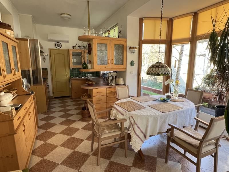CSAK AZ IRODÁNK KÍNÁLATÁBAN EGY SZUPER AJÁNLAT!XXII. kerületben, Budafok-felsőváros exkluzív részén, nagyon csendes, szép kertvárosi utcában, eladásra kínálok egy nagyon hangulatos 3 szintes családi házat, gyönyörűen parkosított 747 m², önálló helyrajzi számmal rendelkező telken.Az ingatlan építési időszaka: 1999-2002, átgondolt tervezéssel és minőségi anyagok felhasználásával került kivitelezésre, nagyon gondos első tulajdonosoktól kínáljuk megvételre.A ház kívül-belül jó állapotú, folyamatosan karbantartott.Hasznos nettó lakóterülete ( földszint 92,7 m² + tetőtér 88,4 m² ) összesen: 181,1 m².Pinceszint (félszuterén) alapterülete: + 110,6 m²Teljes alapterület a három szinten: 291,7 m² + beépített télikert.A jelenlegi belső kialakítása és elrendezése alapján a következőket fontos kiemelni:-a földszinten a nappaliból leválasztásra került egy dolgozószoba, amely az előtérből külön ajtón keresztül megközelíthető, igény szerint az eredeti állapot könnyen visszaalakítható, így a nappali alapterülete megnövelhető-a pinceszinten a garázs mögött található egy tároló, de a válaszfal kivétele révén a garázs alapterülete szintén nagyobbítható-a tetőtérben a válaszfalak gipszkarton falazatúak, így a fenti a terek könnyen változtathatóak, pl. a képeken látható fenti galérián plusz szoba is kialakítható.Méretek, tájolás, elrendezés az alaprajzokon látható.Belmagasság: alagsor 2,5 méter; földszint 3 méter; tetőtér 3,7 méter; padlás ( deszkázott/járható-pakolható ) gerincmagasság 1,5 méter.MŰSZAKI LEÍRÁS ( részlet ):-Teherhordó falak: 30 cm Porotherm, vasbeton pillérekkel -Födémek: monolit vasbeton-2 db Schiedel rendszerű kémény (SIH 20; SIH 20L)-Külső nyílászárók: fa, 2 rétegű thermo üvegezéssel -Napelem rendszer: 16 db Risen Energy 405W; 6,48 kWp teljesítménnyel, Solplanet ASW-6000T inverter-Fűtés és melegvíz: télen Radson gázkazán ( fűtés+melegvíz ), nyáron átkapcsolható Aquastic AQ Flat F80 villanybojlerre-Hőleadás: mind a három szinten külön szabályozható termosztáttal, radiátorokkal és a hideg padlóburkolatos helyiségekben padlófűtéssel, illetve a földszinten cserépkályha, valamint összesen 3 db inverteres hűtő/fűtő klímával. -Áram: 3 x 16 AmperÉves energiaköltség ( 2024-ben földgáz + elektromos áram ): 308.568.-Ft ( 25.714.-Ft/hó ) + tűzifa tetszőleges mennyiségben.EGYÉB FELSZERELÉS ÉS INFORMÁCIÓK: távirányítható motoros kapu és garázskapu, napelemmel fedett kerti kocsibeálló, többfunkciós kemence, csapadék gyűjtő csőhálózat + 13 m3-es ciszternával, amely befogadja az épületre jutó teljes csapadékmennyiséget, automata öntözőrendszer ( ciszternáról és hálózatról egyaránt működtethető ), locsoló vízmérő a kerti csapokhoz és az öntözéshez, kapu mellett szerelőakna, kerti fatároló 12 m², alagsorban ipari teljesítményű elszívó rendszer + sűrített levegőhöz használható csőrendszer, alagsorban és földszinten is élesíthető riasztórendszer illetve megfigyelő kamerarendszer, optikai kábeles csatlakozás a telek előtti oszlophoz.A déli terasz alatt igény szerint kialakítható további 10,8 m²-es tároló, vagy kocsibeálló, ami jelenleg Ytong fallal lezárt.NÖVÉNYZET: termő gyümölcsfák ( dió, alma, kajszi, szilva, pergolára futtatott szőlő ), 3 db fenyőfa, 2 db nyírfa, örökzöld sövények.KÖZLEKEDÉS: autóbusz gyalogosan 5 percre ( 58; 158; 141; 250 ), 6-os és 7-es főút autóval 5-6 perc, M0-ás autóút 8 perc.INFRASTRUKTÚRA: ABC 4 percre gyalog, orvosi rendelő és gyógyszertár 6 percre gyalog, Aldi-Campona 4-5 perc autóval, iskola-óvoda, játszótér szintén pár perces távolságra.Az ingatlan per és tehermentes, birtokbaadás az adásvétel napjától számított maximum 90 nap.Az ingatlan részletes ismertetése és bemutatása, előre egyeztetett időpontban lehetséges, amelyet nagyon rugalmasan kezelünk, akár HÉTVÉGÉN is.További kérdéseivel kapcsolatban várom a jelentkezését.Amennyiben Önnek a vásárláshoz szüksége lenne hitelre, babaváró kölcsönre, lakástakarékra, stb., kezdeményezheti a kapcsolatfelvételt bankfüggetlen hitelügyintézőinkkel, teljesen DÍJMENTESEN.Közel 25 év szakmai tapasztalattal rendelkezem, eladó vagy kiadó ingatlana értékesítése vagy bérbeadása esetén, készséggel állok az Ön rendelkezésére is, keressen bizalommal. |