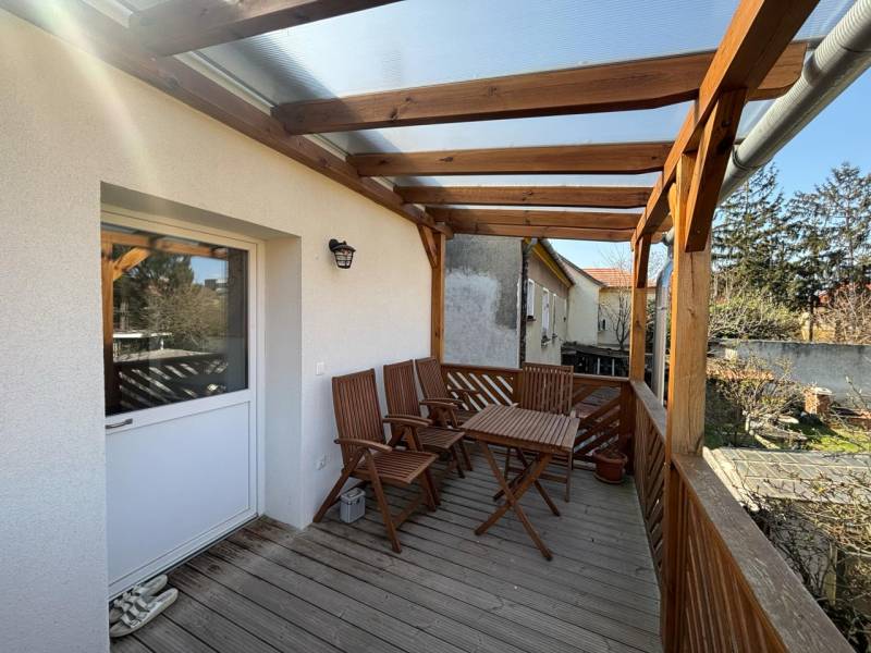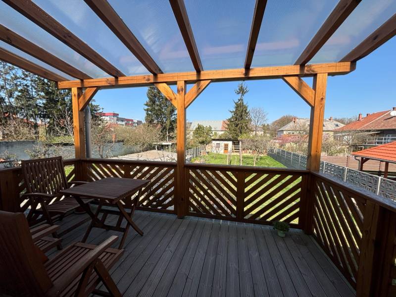 Szombathelyen a belváros közelében, csendes, forgalomtól mentes utcában családi ház eladó.2018-ban az ingatlan felújításra került. A teljes gépészet (víz, szennyvíz, villany és fűtésrendszer) beltéri és kültéri nyílászárók, burkolatok és szaniterek cseréje megtörtént.Az alsó szinten konyha, kamra, 2 szoba és fürdőszoba került kialakításra.A külön bejáratú emeleti részen előszoba, konyha+étkező, nappali, hálószoba, fürdőszoba és háztartási helyiség található.A meleget kondenzációs kazán biztosítja radiátoros hőleadással, de alternatív megoldást kínál a patkóval felszerelt cserépkályha, mely a teljes ház fűtését is biztosítja.Három rétegű hőszigetelt ablakok, redőnnyel és szúnyoghálóval felszereltek.Remek energetikai paraméterekkel rendelkezik a ház, a külső homlokzati és födém szigetelésnek köszönhetően.A 10 m2-es udvarra néző fedett terasz segít a feltöltődésben.Az udvaron tárolók, gyümölcsfák és kút található.Amennyiben egy igényesen felújított, két generációs családi házat keres, kérem hívjon és nézzük meg együtt.Kizárólag a GDN ingatlanhálózat kínálatában. |
