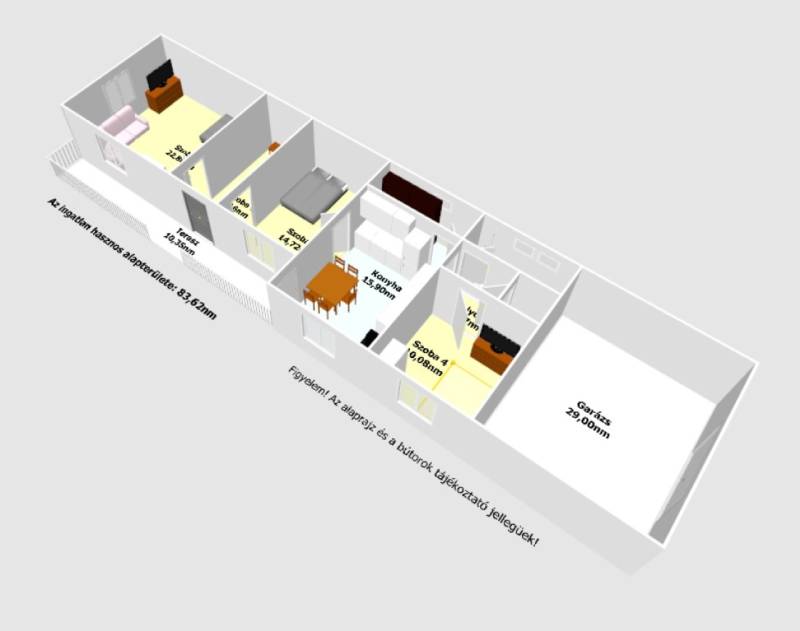 Eladó Tiszaújváros I. kerületében a központban a Dózsa György utcán egy azonnal beköltözhető 4 szobás kertes családi ház garázzsal.Ára: 33.499.000 Ft.Nézze meg videónkat is: http://youtu.be/34GGVQ97QswAz ingatlan alap méretei:- a telek mérete: 686nm,- a ház alapterülete: 161nm.Az épület hasznos alapterülete 83,62nm melyben található:- 4 szoba,- fürdőszoba,- konyha + nappali- spájz,- előszoba- fedett terasz.A családi ház első része az 1960-as években épült, beton alappal és 60-as vályog falazattal, a hátsó része pedig 2000-ben épült beton alappal és 30-as tégla falazattal. A tetőszerkezete nyeregtető, cserépfedéssel ellátva. Az első rész 2000-ben kívülről felújításra került és az egész épület egységes új nemes vakolatot kapott.A fűtésről gáz konvektorok gondoskodnak, biztosítva a házban a kellemes hőmérsékletet. Az épületbe villany, víz, gáz, és csatorna be van kötve, a meleg vizet gázbojler biztosítja. A házban négy szoba található, mely ideális választás lehet nagyobb családok számára. Az épülethez egy 10 négyzetméteres terasz is kapcsolódik, amely kiváló helyszín a kikapcsolódásra. Természetesen a terasz szükség esetén átalakítható előszobává is, melynek eredményekén a három első szoba és a konyha is ezen keresztül közvetlenül érhető el. Az épület széles sarki telken helyezkedik el, mind a két utcáról be lehet menni. Az ingatlanon található még egy 29nm-es garázs melyhez a Rákóczi utca felől autó beálló út vezet, valamint a garázzsal szemben egy tárolóként szolgáló felújítandó különálló épület is helyt kapott. Az udvar szépen gondozott, mely fákkal, bokrokkal és sövényekkel díszített füves környezetet biztosít a pihenni vágyó lakók számára. Az ingatlannal szemben lévő parkban egy nagy játszótér is található a gyerekek örömére.Az ingatlan ideális választás lehet mindazok számára, akik befektetésként gondolkodnak, hiszen a környéken óriási kereslet van kiadható albérletek tekintetében! Természetesen azok számára is ideális lehet, akik a környező nagy gyárak egyikében dolgoznak. Fontos!Az ingatlan per és tehermentes, azonnal beköltözhető! FIGYELEM!Az ingatlan Tiszaújváros I. kerületének az úgynevezett Tiszaszederkény részén, a központhoz közeli utcában helyezkedik el. Pár percre található a nagy ipari park melyben a legnagyobb cég a Jabil, valamint a közelben sok másik nagy cégek is jó munka lehetőséget biztosít. Továbbá az ingatlantól 10 percre elérhetők boltok, iskolák, óvodák, orvosi rendelők, gyógyszertárak, bankok, TESCO, LIDL, COOP, az önkormányzati hivatal, Tiszaújvárosi Gyógy- és Strandfürdő, számtalan üzlethelyiség és vendégházak is.Tiszaújváros (1970. április 22-ig Tiszaszederkény, 1991. február 1-ig Leninváros) ipari város Észak-Magyarországon, Borsod-Abaúj-Zemplén vármegyében, mely a Tiszaújvárosi járás központja. Miskolctól 35 kilométerre, a Sajó tiszai torkolatánál fekvő település; közvetlenül a Nyékládházától Debrecenig húzódó 35-ös főút mellett fekszik, Mezőcsáttal a 351-es főút és 3313-as út, Oszlárral a 3310-es út, Nemesbikkel pedig a 3312-es út köti össze.Ha felkeltette érdeklődését, hívja irodánkat bizalommal!Ha hitelre van szüksége éljen ingyenes, személyre szabott hitel ügyintézési szolgáltatásunkkal is. |