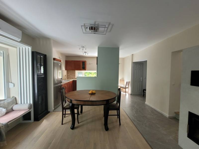 Szentendrén, kiváló lokációban, a Bükkös-patak parton eladó a fotókon látható, 2025-ös építésű, két szintes, nappali plusz 5 szobás családi ház. A nívós építész által tervezett házat alacsony fenntartási költségek, magas minőség és nyugodt, otthonos, igazi Cosy hangulat jellemzi.A fűtésről energiahatékony padlófűtéssel kombinált Remeha hőszivattyú, a hűtésről pedig fan coil rendszer gondoskodik. Az energia hatékonyságot ezek mellett napelem rendszer segíti és a nappaliban modern kivitelezésű hangulatos cserépkályha is található külső levegő áramoltatással. A ház energetikai minősítése: A++ Mindenhol természetes anyagokkal, fa padlóval, tölgyfa konyhabútorral és mészkő burkolattal találkozunk.Környék is nagyon hangulatos, a patak partján mókusok mellett sétálva, bicikli úton biciklizve indulhat a nap, miközben a közeli híres pékségbe térhetünk be friss reggeliért. A továbbiakban pedig a közeli 5*-os uszodában egy wellness élmény koronázhatja meg a napot.Az iskolák, óvodák, gimnáziumok is ideális közelségben vannak.Ha felkeltette érdeklődését és szeretné személyesen is látni, várom hívását a hét bármely napján és szívesen megmutatom Önnek.Amennyiben nem rendelkezik a teljes vételárral, bankfüggetlen hitelcentrumunk minden elérhető bank és hitelintézet ajánlatát versenyezteti az Ön kedvéért, ráadásul díjmentesen. Önnek nincs más dolga, mint elbeszélgetni munkatársunkkal, aki a hallott információk alapján versenyre hívja a bankokat, hogy Ön hosszú távon is a legjobb konstrukciót kaphassa. A legjobb ajánlatokból végül Ön választhatja ki a nyertest. Munkatársaink sokéves szakmai tapasztalattal várják Önt, előre egyeztetve akár a normál munkaidő után is. |