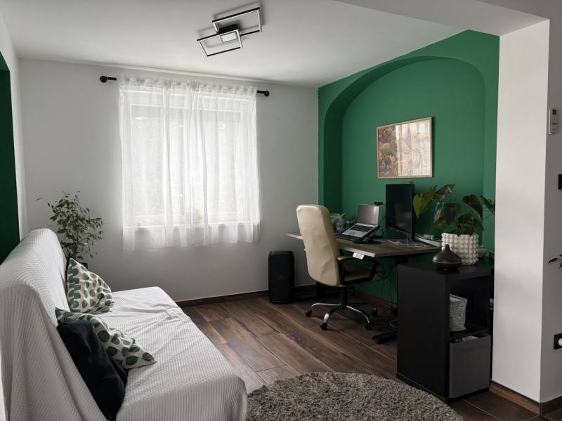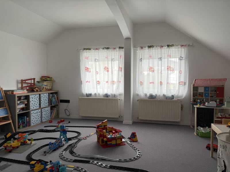 Eladásra kínálok Budapest agglomerációjában, Mogyoródon egy 2 GENERÁCIÓS CSALÁDI HÁZAT!5 szobás, 3 SZINTES (pince, földszint, tetőtér).A ház tégla szerkezetű, szigetelt, cserép tetővel borított.Felosztása : Szuterén szint, 100 nmFöldszinten szintén 100 nm.Beépített tetőtér 60 nm. (kerekített értékek)A földszint és a tetőtér jelenleg lakórészként funkcionálnak, 5 szobával, 2 fürdőszobával, tárolóval, előterekkel, és közleledőkkel. A szuterén szinten is található vizesblokk, konyha, egy nagy méretű, 2 kocsi beállására elegendő garázs, fürdőszoba, szoba, és külön bejárattal rendelkezik, igy az ingatlan hivatalosan is 2 generációs, csökkentett rezsivel bír. A szuterénszint felújításra szorul, azonban akár egy üzlethelyiség kialakítására is alkalmas adottságait tekintve.A földszinten a nappaliból egy nagy méretű teraszra tudunk kimenni.A tetőtérhez kb 15 nm nagyságú lapos erkély tartozik.A tetőtér külön alkalmas lehet önálló lakás kialakítására.Extra felszereltség : elektromos aluminium redőnyök, szúnyoghálók, biztonsági kamera. Éjszakai beltéri világítás. Az udvarban még egy kb 40 nm nagyságú, önálló épület van, amely felújítandó, könnyűszerkezetes, és van benne egy hangulatos kemence, igy akár a nyári esték kellemes része is lehet ez a tér. A ház színezése még hiányzik egy oldalon. A színezés befejezését a tulajdonos vállalja.Az épület felújítására az elmúlt években került sor, amely magába foglalta a teljes villanyvezeték hálózatot, a vízvezetéket, és az esztétikai részét is. Minőségi alapanyagokat használtak fel! Elhelyezkedését tekintve kiváló. Előkerttel rendelkezik. Közlekedés kiváló! Hév 8 perc séta! Buszmegálló 4 percre. Tehermentes tulajdon!Hívjon bizalommal! |