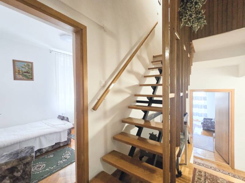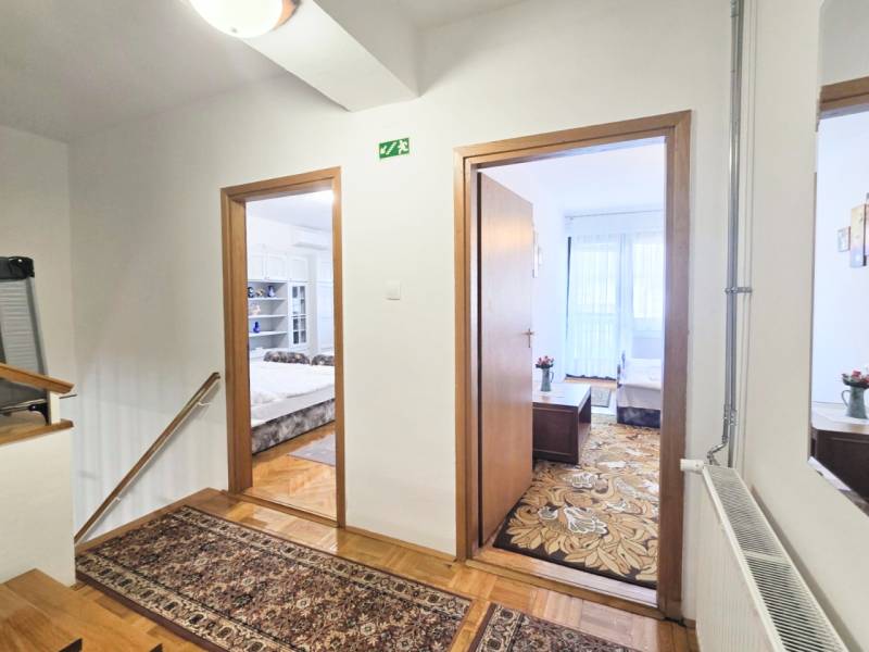 ‼️ ÁRCSÖKKENÉS! ‼️Új ár: 63.900.000.- FtIgényesen karbantartott, folyamatosan felújított ikerház eladó Lenti kertvárosi részén!Lenti közkedvelt, csendes kertvárosi övezetében eladásra kínálunk egy 170 m²-es, modernizált ikerházat, amelyhez egy 485 m²-es, gondozott, teljesen bekerített kert tartozik. Az udvar ideális helyszíne lehet pihenésnek, családi és baráti programoknak egyaránt.Az ingatlan praktikus, jól átgondolt elosztású:A földszinten kapott helyet a világos nappali, egy tágas konyha, valamint az egyik fürdőszoba. A garázsból közvetlen bejárat nyílik a tárolóba és a lakótérbe, ami különösen kényelmes megoldás a mindennapokban.Az emeleten 5 szoba, egy második fürdőszoba, valamint egy erkély található, amely tovább növeli a komfortérzetet. A tetőtérben lehetőség van egy harmadik fürdőszoba kialakítására is.Az otthonra jellemzőek a tágas terek, amelyek a nappaliban, a szobákban és a kiszolgáló helyiségekben egyaránt érezhetők.A fűtést kombi gázkazán biztosítja lapradiátoros hőleadással, ugyanakkor lehetőség adott alternatív fűtési megoldások (kandalló, cserépkályha) kialakítására is a nappaliban. A kellemes hőérzetről nyáron klímaberendezés gondoskodik.Az ingatlan 5 cm-es homlokzati szigeteléssel rendelkezik, a tető cserépfedésű.A kikapcsolódást egy 10 m²-es erkély, valamint egy 18 m²-es fedett terasz szolgálja, amely ideális helyszíne lehet a nyári estéknek. A ház egy része alatt egy 18 m²-es, hűvös pince található.A környék nyugodt és élhető, ugyanakkor a városközpont könnyen és gyorsan elérhető, így az ingatlan kiváló választás lehet mindazok számára, akik a természet közelségét és a jó megközelíthetőséget egyszerre keresik.A ház jelenleg vendégházként üzemel, így befektetési célra is kiváló lehetőség. Érdeklődni a részletekről és megtekintési időpontért keressen bizalommal – ne maradjon le erről a kivételes ajánlatról! Irányár: 63.900.000 Ft |