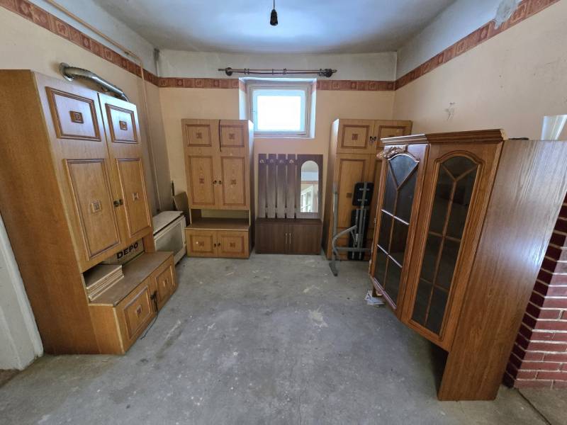 Eladásra kínálok Bács-Kiskun Vármegyében, Mélykút egyik nyugodt, forgalomtól mentes utcájában található, mintegy 80 m² hasznos alapterületű, vegyes falazatú családi házat, 815 m²-es telken, 13 000 000 Ft irányáron.A jelenlegi elrendezés praktikus, jól átalakítható:-két külön nyíló szoba (egy nagyobb és egy kisebb),-nappali,-konyha-étkező,-fürdőszoba külön WC-vel,-valamint közlekedő alkotja a lakóteret.A ház folytatásában, a kijáraton át megközelíthető egy több mint 15 m²-es helyiség, amely jelenleg tárolóként szerepel, azonban mérete és megközelíthetősége révén kiváló alap egy további szoba vagy háztartási helyiség kialakítására, illetve itt található a padlásfeljáró is.A további melléképületek között helyet kapott egy tágas, 33 m²-es fedett tároló, valamint egy 28 m²-es garázs szerelőaknával, amely az autósok számára különösen értékes adottság.Az ingatlan víz- és villanyhálózattal ellátott, a gázcsonk a telken belül található, a fűtés jelenleg kandallóval megoldható. A nyeregtetős, cserépfedésű szerkezet stabil, így kiváló alapot biztosít egy ízlés szerinti felújításhoz és akár korszerűsítéshez is.A 815 m²-es telek első udvarra és hátsó kertre tagolódik, amely kertészkedésre, pihenőkert kialakítására vagy akár állattartásra is alkalmas.A környék infrastruktúrája kiváló: iskola, óvoda, boltok és mindennapi ügyintézéshez szükséges szolgáltatások könnyen elérhetők, így az ingatlan családok számára is ideális választás lehet.Ha felkeltette érdeklődését, szívesen adok bővebb tájékoztatást vagy megszervezem a megtekintést!A vásárlás teljes körű ügyintézését vállalom, az adásvételtől kezdve egészen a hitelügyintézésig, amennyiben finanszírozásra van szüksé |
