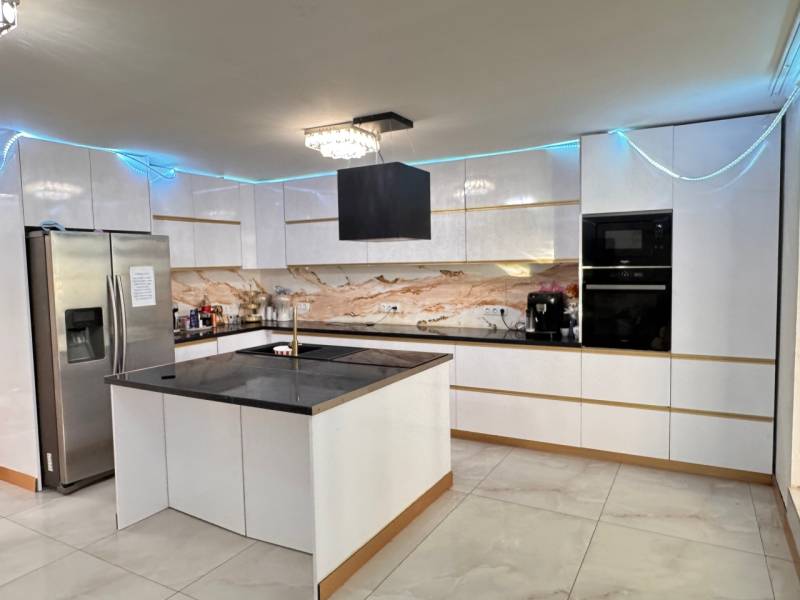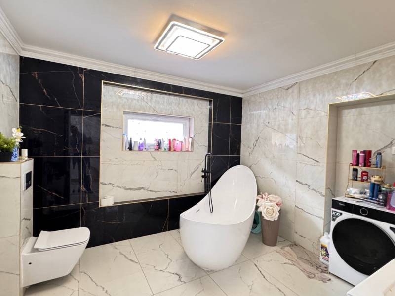 CSAK AZ IRODÁNK KÍNÁLATÁBAN! XXII. kerületben, Budafokon kínálunk eladásra egy FELÚJÍTÁS ALATT ÁLLÓ, nagy nappali + 4 szobás, 2 fürdőszobás, étkező-konyhás 214 m²-es lakóterű magasföldszinti CSALÁDI HÁZAT, melynek az alsó szintje plusz 110 m2, amely egy 647 m²-es telken helyezkedik el.A házba belépve egy tágas nappaliba érkezünk, innen tovább haladva található egy étkezős - konyha, beépített modern konyhabútorral. Széles folyosóról nyílnak a gyerek szobák, a nagy kádas fürdőszoba, és két nagy méretű hálószoba saját gardrób helyiségekkel. Az egyik hálószobához tartozik még egy zuhanyozós fürdőszoba WC-vel és egy gardrob szoba.A másik hálószobához is tartozik külön gardrob szoba.A ház alatti alsó szint 110 m2, ahol beépített konyha, kamra, kis szoba, zuhanyzós fürdőszoba WC-vel is kialakításra került, plusz egyéb tárolásra alkalmas terület is maradt.LÁSD AZ ALSÓ SZINT ALAPRAJZÁT !A ház ideális nagycsaládosoknak, de két generációnak is kényelmes tereket biztosít, a 214 m²-es lakótér, és az alsó szint helyiségei. LÁSD A LAKÓTÉR /magasföldszint/ HELYISÉGEINEK ELRENDEZÉSÉT AZ ALAPRAJZON !MŰSZAKI JELLEMZŐK: - Az épület az 1960-1970-es években épült vegyes falazattal. - 2024-2025-ben teljes körű felújításon esett át.- ennek részeként megtörtént a tetőcsere, vasbeton födém került kialakításra- a teljes gépészet és fűtésrendszer megújult - a nyílászárók cseréje is megtörtént, háromrétegű, hő- és hangszigetelő műanyag ablakok, új bejárati ajtó került beépítésre - a ház külső falaira 15 cm-es dryvit hőszigetelés került - a fűtés hőszivattyúval történik, minden helyiségben padlófűtéssel.PARKOLÁS: A kertben több autó számára térkövezett felszíni beálló biztosított.EXTRÁK: A házban 5 db hűtő-fűtő klíma található.KÖRNYEZET: Az ingatlan csendes, kertvárosias környezetben található, kiváló tömegközlekedéssel és közeli bevásárlási lehetőségekkel (ALDI, Campona, Tesco). A közelben óvoda, két tannyelvű iskola és gimnázium is működik.. Autóbusszal 15–20 perc alatt elérhető a 4-es metró kelenföldi végállomása. Budapest belvárosa pedig sétatávolságban lévő buszjáratokkal fél óra alatt megközelíthető.Az ingatlan ELŐRE EGYEZTETETT IDŐPONTBAN tekinthető meg – akár hétvégén is.KÉSZPÉNZES ÉRDEKLŐDŐK JELENTKEZÉSÉT VÁROM !FORDULJON HOZZÁM BIZALOMMAL, VÁROM HÍVÁSÁT, ÉRDEKLŐDÉSÉT!(G.I.) |