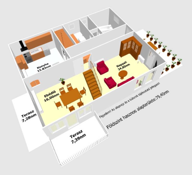 Eladó Újfehértó Széchenyi István utcán egy exkluzív megjelenésű, tágas 3 szintes kertes családi ház.Ára: 89.650.000 Ft.Nézze meg videónkat is: http://youtu.be/bThenW4EEsQAz ingatlan alap méretei:- a telek mérete: 1328nm,- a ház alapterülete: 102nm.Az épület összes hasznos alapterülete 334nm:- a földszint hasznos alapterülete: 79,40nm,- az emelet hasznos alapterülete: 77,04nm,- a pince hasznos alapterülete: 122,04nm,- a teraszok hasznos alapterülete: 32,46nm,- az erkélyek hasznos alapterülete: 23,06nm.Az épület lakóterének összes hasznos alapterülete 156,44nm melyben található:- 3 szoba,- konyha,- spájz,- 2 nappali,- étkező,- gardrób,- 2 fürdőszoba,- WC,- 2 folyosó,- lépcsőház.A családi ház kiváló állapotú, exkluzív megjelenésű, mely 1995-ben korszerű építészeti megoldásokat alkalmazva épült. A főfalazata 30-as szilikátból készült, mely 10 cm-es hőszigetelést kapott, a válasz falai pedig téglából készültek. A födém szerkezete a szintek között beton födém, a pince szint a teljes épület alatt helyezkedik el. A tetőszerkezete nyeregtető, mely Bramac beton cseréppel van fedve. Az épületben áram, víz, gáz és csatorna be van kötve. Az épület radiátoros központi fűtéssel van ellátva, mely a pince szinten elhelyezett gáz kazánról vagy vegyes tüzelésű kazánról működik.A konyha világos, elegáns kivitelű, praktikusan elrendezett, teljesen gépesített, az étkezővel átadó pulttal is össze van kötve. Az étkezőrész és a nappali tágas, a rajta található tolóajtón keresztül a nagy teraszra is ki lehet ülni.Az épület előtti parkosított udvar tele van virágokkal és díszfákkal. Az épület mögött pedig részben díszfákkal és virágokkal van díszítve, valamint nagy füvesített terület helyezkedik el. Az ingatlan minden oldalról körbe van kerítve, az utcáról pedig kovácsoltvas elemekkel díszített kerítés található.Az ingatlan ideális választás lehet azok számára, akik jó állapotú, tágas belső terekkel rendelkező nagy családi otthont keresnek nyugodt környezetben, mely akár vállalkozás számára vagy 2 generáció együtt élésére is ideális megoldás lehet.FONTOS!Az ingatlan per és tehermentes, rövid időn belül beköltözhető, minden fajta hitelre alkalmas!FIGYELEM!Az ingatlan pince része kisebb vállalkozás számára is jól kihasználható.Az ingatlan Újfehértó központjától 10 percre található, így könnyen elérhetők az iskolák, óvodák, orvosi rendelők, fogászat, gyógyszertár, bank, templom, az önkormányzati hivatal, a Városi uszoda és számtalan üzlethelyiség is. A közelben található a SPAR, a PENNY és a LIDL bevásárló központok is. Továbbá az ingatlan a 4-es főút közelében helyezkedik el, így autóval Nyíregyháza 10, Debrecen pedig 25 percen belül érhető el.Újfehértó város jelenleg az ötödik legnépesebb város Szabolcs-Szatmár-Bereg vármegyében. Nyíregyházától körülbelül 16 kilométerrel délre, Debrecentől 35 kilométerrel északra, a Nyírség Hajdúság felé eső peremén fekszik. Két legfontosabb közúti megközelítési útvonala a 4-es főút, illetve az M3-as autópálya, ezeknek köszönhetően az ország távolabbi részei felől is könnyen megközelíthető.A hazai vasútvonalak közül a várost a Budapest–Debrecen–Nyíregyháza–Záhony-vasútvonal érinti, melynek egy megállási pontja van itt. A környező kisebb települések közül Hajdúdoroggal, Hajdúböszörménnyel, Nagykállóval, Nyíregyháza Butyka nevű különálló városrészével, Érpatakkal és Kálmánházával mellékutak kötik össze.Ha felkeltette érdeklődését, hívja irodánkat bizalommal!Ha hitelre van szüksége éljen ingyenes, személyre szabott hitel ügyintézési szolgáltatásunkkal is. |