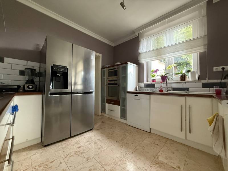 Tér együttéléshez, nyugalomhoz – többgenerációs családi ház a Bokros utcábanSzentendre egyik nyugodt, biztonságos részén található ez a háromszintes, közel 320 m²-es családi ház, amelyet kifejezetten többgenerációs használatra alakítottak ki. Három, külön bejáratú, teraszos lakóegység kapott benne helyet, így a közelség és az önállóság egyszerre tud jelen lenni a mindennapokban.A ház 2005-ben épült, masszív 38-as téglafalazattal, korszerű szigeteléssel. A fűtést kondenzációs kazán biztosítja, padlófűtéssel és klímaberendezésekkel kiegészítve, így a komfort egész évben kiegyensúlyozott. A belső terek világosak, jól tagoltak, a hangulat nyugodt és élhető.Az alsó szint praktikus kiegészítő funkciókat kínál: háromállásos garázs, borospince, konditerem és több tárolóhelyiség áll rendelkezésre. A gondozott kert és a teraszok Szentendrére és a környező zöldövezetre nyíló panorámája természetes része a mindennapoknak.A ház kamerával és sorompóval védett magánúton közelíthető meg, ami valódi nyugalmat és biztonságot ad a környezetnek.Ez az ingatlan nem egy élethelyzetre készült, hanem hosszú távra. Olyan családok számára, akik együtt szeretnének maradni, de mindenkinek fontos a saját tér is.Szentendrén ritkán adódik ilyen adottságú lehetőség – érdemes személyesen is megtapasztalni. |