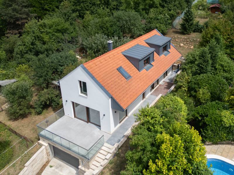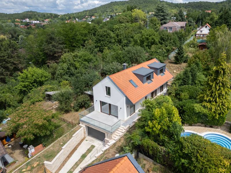 Budán, Pesthidegkút-Ófalu egyik legszebb, legnyugodtabb részén, templom tér, Klebelsberg Kultúrkúria és a Széphalom bevásárlóközpont közelében, panorámás, 95%-os készültségű , újépítésű családi ház eladó. Az ingatlan osztatlan közös tulajdonú telken helyezkedik el, jogi használati megosztással.Főbb adatok:- Telekrész használat: 742 m² (kizárólagos használat)- Szobák száma: 4+1 (nappali + 3 háló + hobbiszoba + többcélú helyiségek)- Energiahatékonyság: AA++ – közel nulla energiaigényÁllapot: 95%-os készültség – burkolatok, szaniterek, konyha, kert befejezése az új tulajdonos igényei szerint alakítható, viszont a vételár részét képezi.Felszereltség, extrák:- Hőszivattyús hűtés-fűtés, fan-coil rendszerrel- Hővisszanyerős szellőztetés (Wolf300)- 3 rétegű üvegezésű nyílászárók, motoros alumínium redőnyök- Központi porszívó, riasztó- és napelem előkészítés- Elektromos Hörmann garázskapu, távirányítás- 2 állásos garázs + felszíni parkoló saját használatú telken- 5 m³ esővízgyűjtő, automata öntözés előkészítés- Igényes kerítés, világítás, járda és kerti burkolatokElrendezés:- Pince: Garázs, hobbiszoba, zuhanyzó-WC, háztartási helyiség- Földszint: Nappali, étkező-konyha, hálószoba, zuhanyzó-WC, gardrób, 2 irányba tájolt terasz- Tetőtér: 2 hálószoba, fürdőszoba, többcélú előtérElhelyezkedés, infrastruktúra:- Kiváló tömegközlekedés: buszmegálló 500 méteren belül- Óvoda, iskola, bolt, pékség néhány perces sétára- Francia Iskola 650 méterre, 9 perc gyalog- Csendes zsákutca, barátságos szomszédság, zöld környezetRugalmas befejezési lehetőség, alacsony fenntartási költségek, kiváló minőség – új építésű otthon álomszép környezetben!Hívjon bizalommal a megtekintésért és további részletekért |