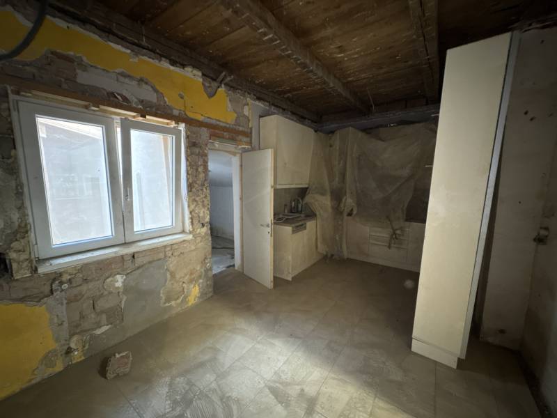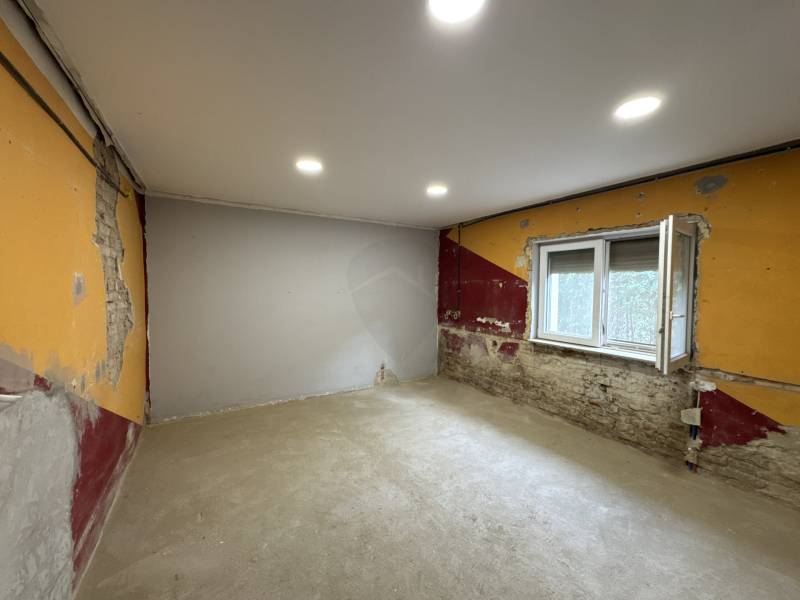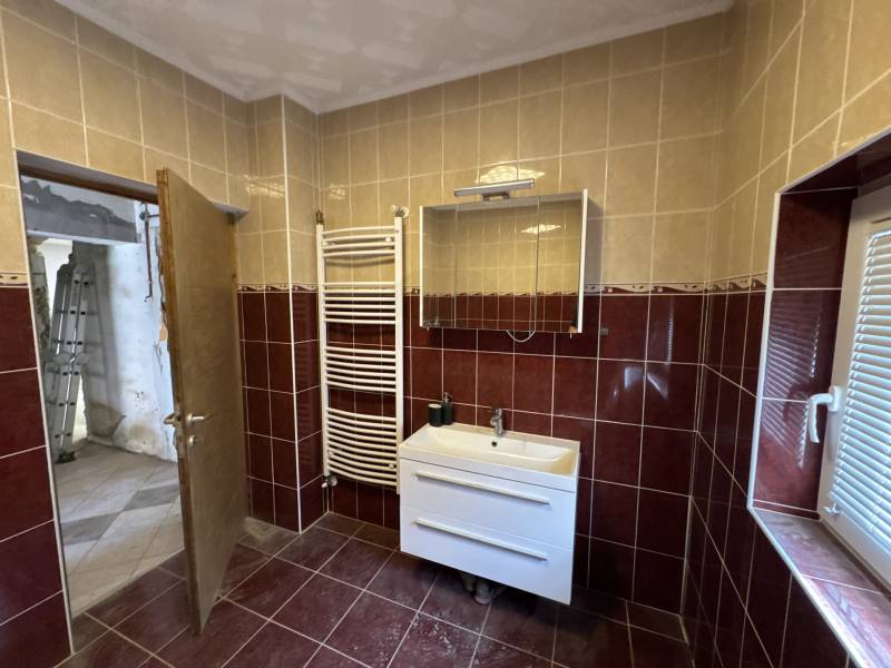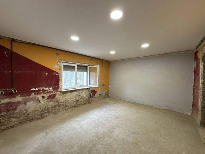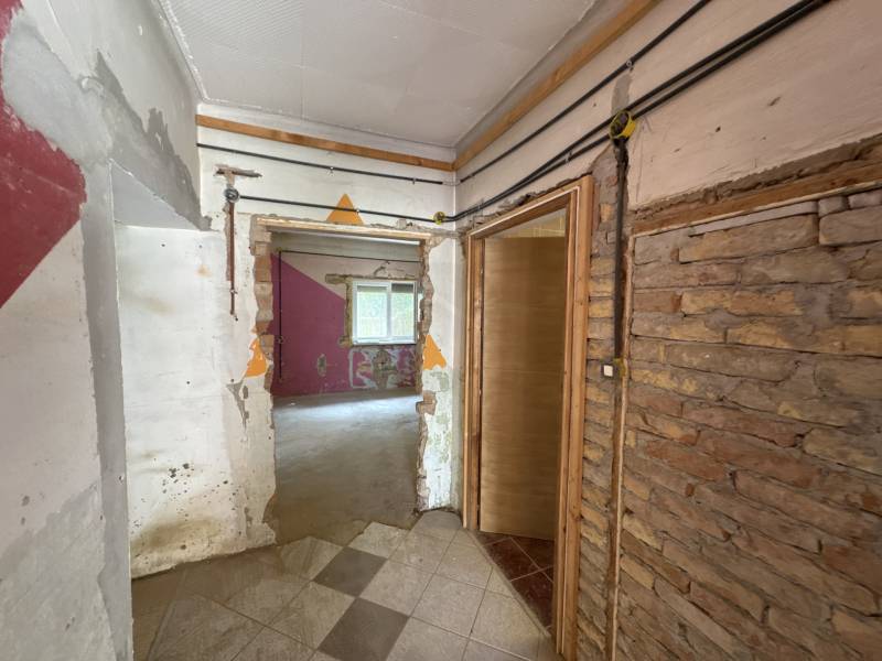 Eladó felújítandó családi ház Erdőkertesen, jó elosztás, garázs, napelem!Alapterület: 76,37 m² + 34 m² fedett teraszTelek: 675 nmSzobák száma: 2 szoba + konyha + fürdő + tárolóÁllapot: Teljesen felújítandóFűtés: egyedi (korábbi radiátorok részben megvannak)Parkolás: 2 állásos garázs elektromos kapuvalExtrák: napelemrendszer, beépített terasz, tágas kertLeírás:Erdőkertes csendes, zöldövezeti részén eladásra kínálunk egy 76,37 m²-es, kisméretű téglából épült családi házat, mely teljes belső felújítást igényel.Az ingatlan 2 szobából, konyhából, fürdőszobából, egy kis tárolóból, valamint egy fedett 34 m²-es teraszból áll. A mellékelt fotók jól mutatják az ingatlan jelenlegi állapotát, ami a kreatív vevők számára átalakítási szabadságot biztosít.A házhoz tartozik egy tágas, kétállásos garázs, mely elektromos kapuval rendelkezik. A garázs falai dekoratív bontott téglával burkoltak, a tetőszerkezet újabb, és a tér világos, rendezhető.A konyha és a szobák jelenleg bontott állapotban vannak – részben vakolatlan falak, új mennyezeti világítás, részben új nyílászárók és burkolat nélküli padló jellemzi őket. A konyhában néhány beépített elem már megtalálható.A hátsó kert gondozásra vár, de kiváló adottságokkal rendelkezik: zöld, napos, több gyümölcsfával és bokorral, valamint egy kis veteményes vagy játszótér is könnyedén kialakítható.További jellemzők:TéglaépítésűNapelemrendszerElektromos garázskapuRészben új nyílászárókFedett teraszCsendes, kertvárosi környezetFelújítóknak, befektetőknek ideálisKiknek ajánljuk?Felújításban gondolkodóknak, akik saját ízlés szerint alakítanák ki otthonukatBefektetőknek, akik értéknövelésben és kiadásban is gondolkodnakCsaládosoknak, akik szeretnének kertes házba költözni elérhető áron |