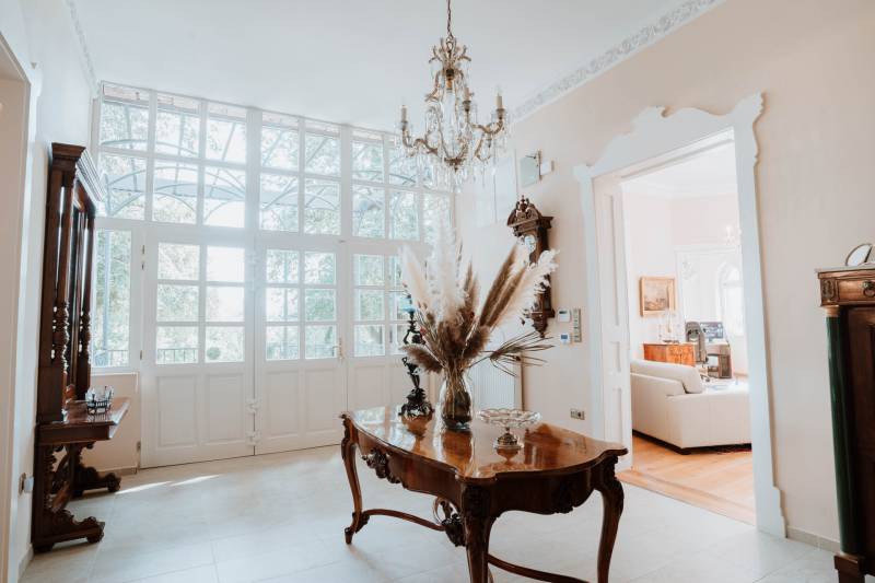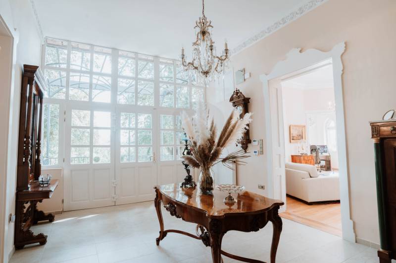 Örömmel kínáljuk megvételre ezt a páratlan szépségű, felújított kúriát Kis Jobbágyiban, a hegy lábánál, egy csodálatos erdei környezetben. Az ingatlan a település ófalvától távol, csendes és nyugodt helyen helyezkedik el, közvetlen szomszédság nélkül. A kúria mögött az erdő kezdődik, így minden egyes napot a természet friss illata és hangja kísérhet.A kúria 1914-ben épült, masszív tégla és terméskő falazattal. Az ingatlan alsó szintje 2023-ban teljeskörű felújításon esett át, a belső teret modernizálták, és az épület falai szigetelést kaptak.A ház két szintre oszlik, és mindkét emelet külön bejárattal rendelkezik. Az alsó szinten tágas hall, napfényes nappali, étkező, hálószoba gardróbbal, közlekedő folyosó, fürdőszoba és külön toalett található. A konyhát kamra is kiegészíti. Az alsó szint részben klimatizált, és a nappaliban egy eredeti cserépkályha ad melegséget. A fűtésről és melegvízről egy modern Ariston gázcirkó gondoskodik, amely az egész házban biztosítja a kellemes hőmérsékletet.A felső szintre egy elegáns kovácsoltvas lépcső vezet. Itt három szoba, két fürdőszoba (egy kádas és egy zuhanyzós) és egy konyha található. Az emeleten a légkondicionálás garantálja a kellemes klímát a melegebb hónapokban.A kúria alatt 20 m²-es, száraz pince található, amely egy kovácsoltvas ajtón keresztül közelíthető meg.A birtok kincse egy fűthető, 3x7 m-es medence, teljes gépészettel, ellenáramoltatóval, tartalék szivattyúval és gyerekbiztos automata fedéssel. Ezen kívül a kert egy különleges, 100 m²-es erdélyi fészerrel is rendelkezik, amely kiváló tárolóhelyiséget biztosít.Az ingatlant biztonságos riasztórendszer és kamerás megfigyelő rendszer védi, az ablakok ragasztott biztonsági és hőszigetelt üvegezéssel készültek.A kertet teljes öntözőrendszer öleli körbe, és különleges angolkerti hangulattal rendelkezik. Az alsó és középső rész parkosított, míg a felső területen termő gyümölcsfák és egy frissen telepített konyhakert található. A kert ápolásához szükséges összes eszközt (köztük Husqvarna fűnyíró traktort, sövényvágókat, permetezőgépeket stb.) tartalmazza az ajánlat.A telek teljes területe két éve körbekerítve, biztonságos, gondozott kerítéssel, amely két bejárattal rendelkezik: az egyik az épülethez vezető lépcsőnél, a másik pedig a hegy felől elektromos kapuval biztosítja a bejutást. A parkolásra kényelmesen 4-6 autó számára elegendő hely áll rendelkezésre.A kúria igény szerint teljes berendezéssel is megvásárolható, külön megállapodás alapján.A környék gazdag vadállományban, így ideális választás vadászkúriaként, de a terület befektetési céllal, vagy rendezvények lebonyolítására is kiválóan alkalmas.Ez az egyedülálló kúria a természet közvetlen közelében egy olyan életstílust kínál, amelyet a mindennapok rohanásából való visszavonulás, a csend és a nyugalom tesz tökéletessé.Az alábbi linken mint esküvői helyszín tekinthető meg: http://www.youtube.com/watch?v=1LnprVXeC6o |